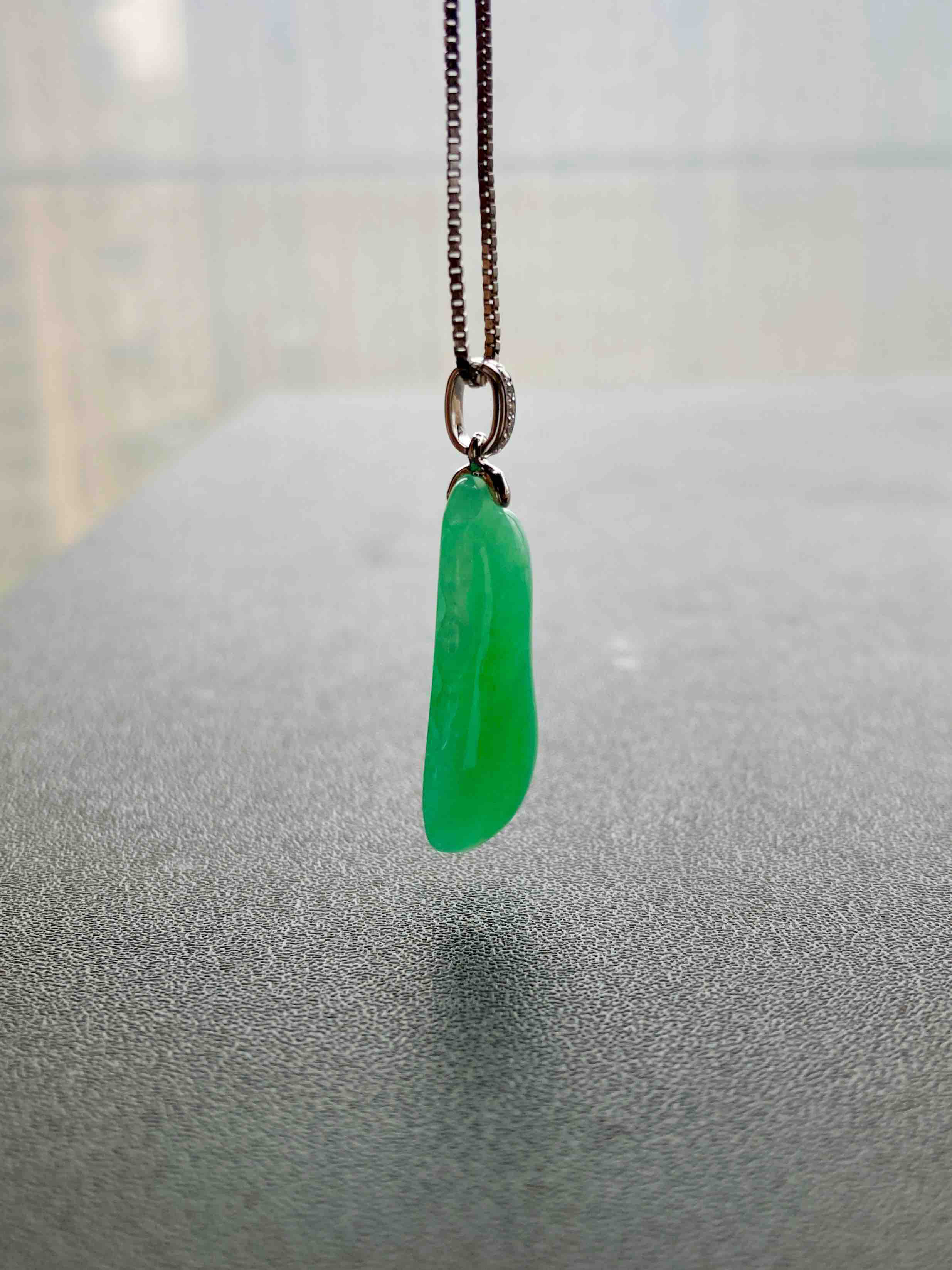 冰种飘阳绿翡翠福豆吊坠18k白金钻石镶嵌