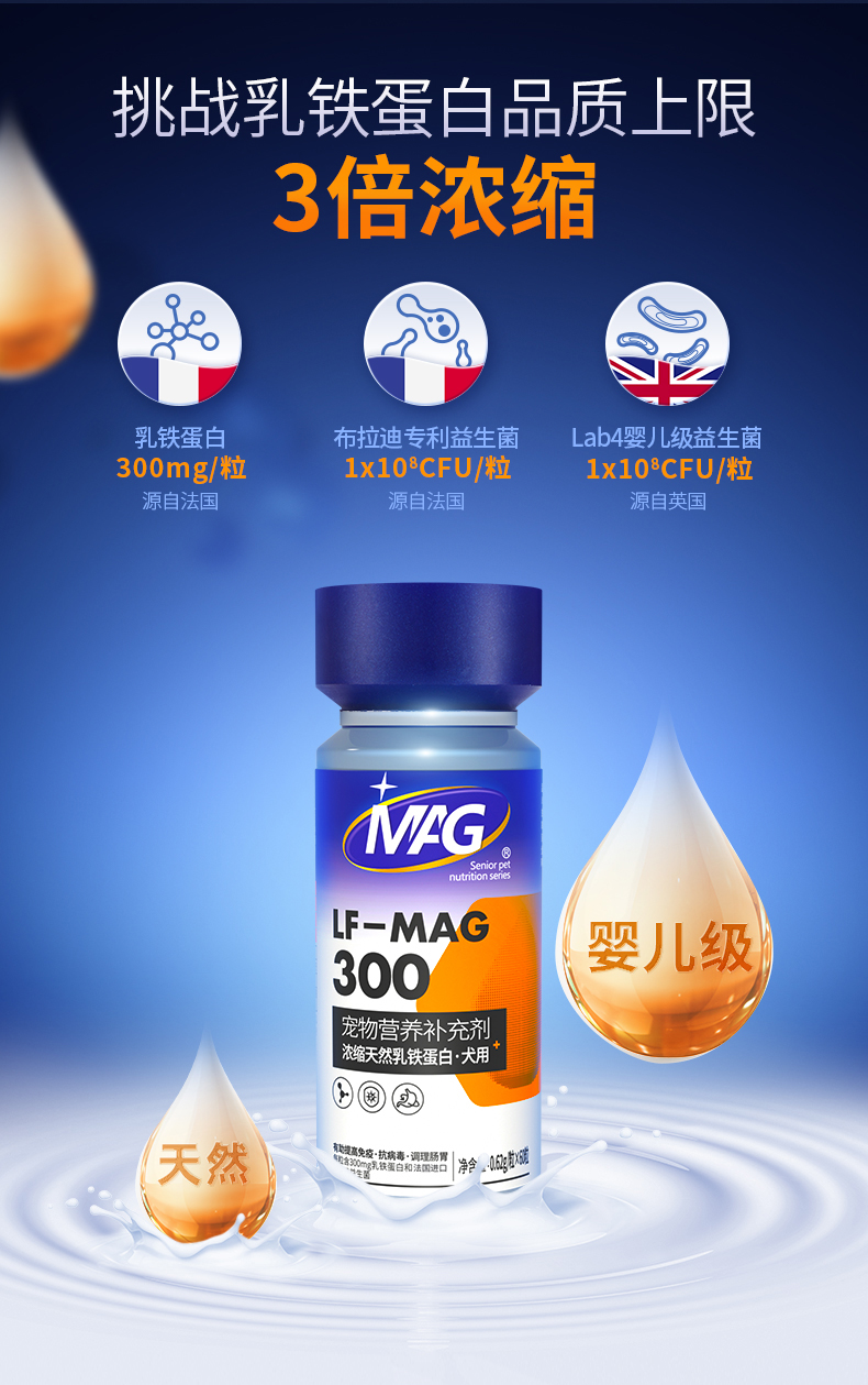 (2瓶装更优惠)MAG U+系列【MAG浓缩天然乳铁蛋白】幼猫幼犬乳铁蛋白胶囊抗病毒调理肠胃