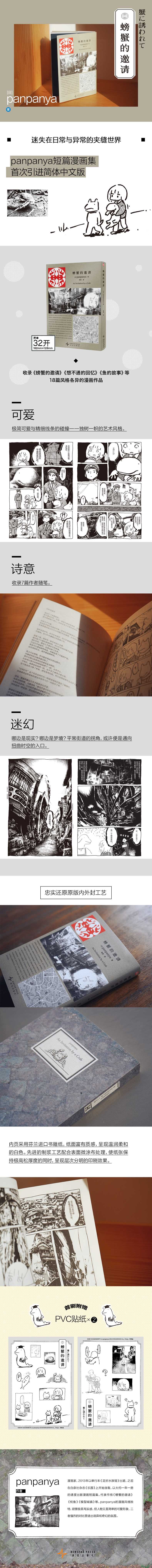 短篇漫画集。收录《螃蟹的邀请》《想不通的回忆》《鱼的故事》等18篇漫画作品及作者的随笔。每个故事都以女孩;我为主角,由日常开始,巧妙地融合现实与非现实之间的模糊地带,引导读者逐步进入一个充满异样氛围的世界。