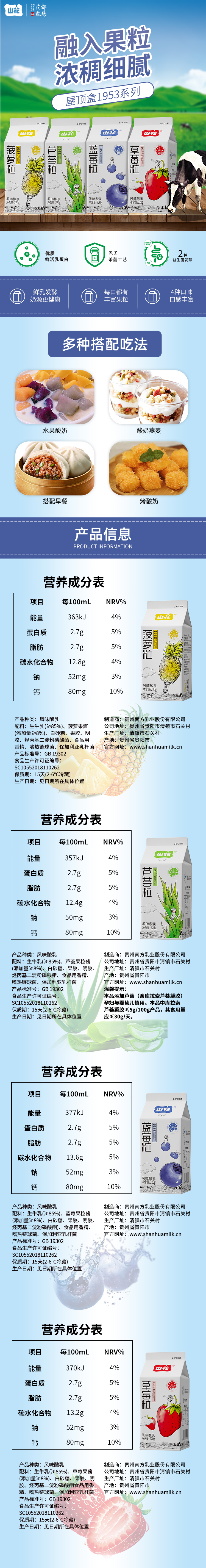 贵州特产山花屋顶盒果粒酸奶220g/盒2-6℃冷藏边喝边嚼口感浓郁贵州老字号顺丰包邮