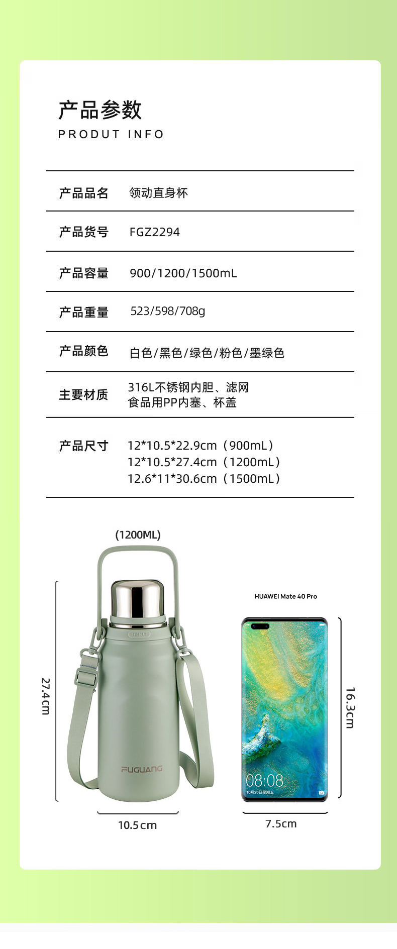 富光保温杯大容量水杯杯子316L不锈钢男女户外运动保温水壶小金刚