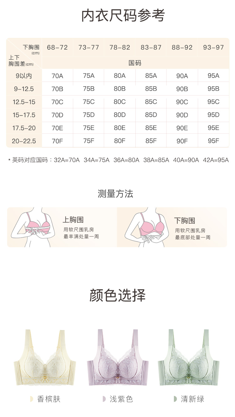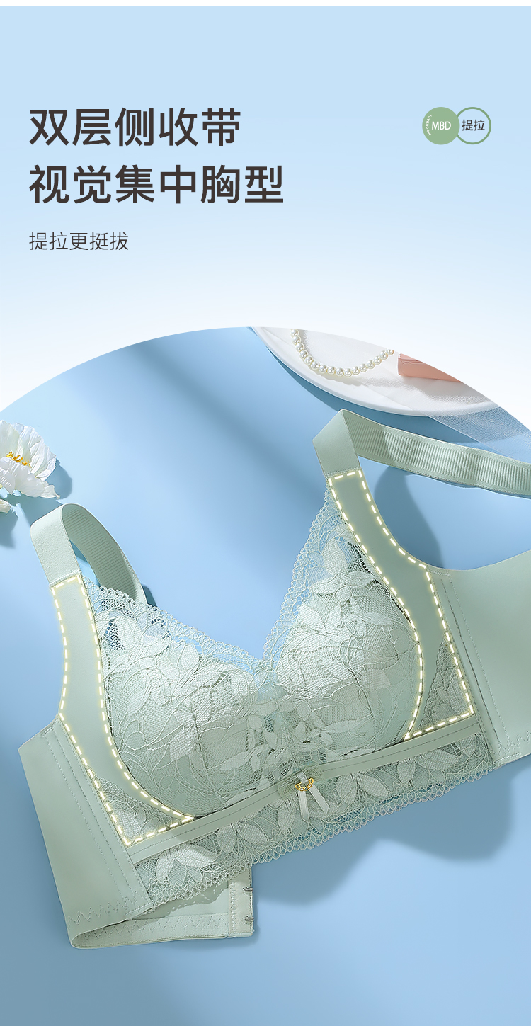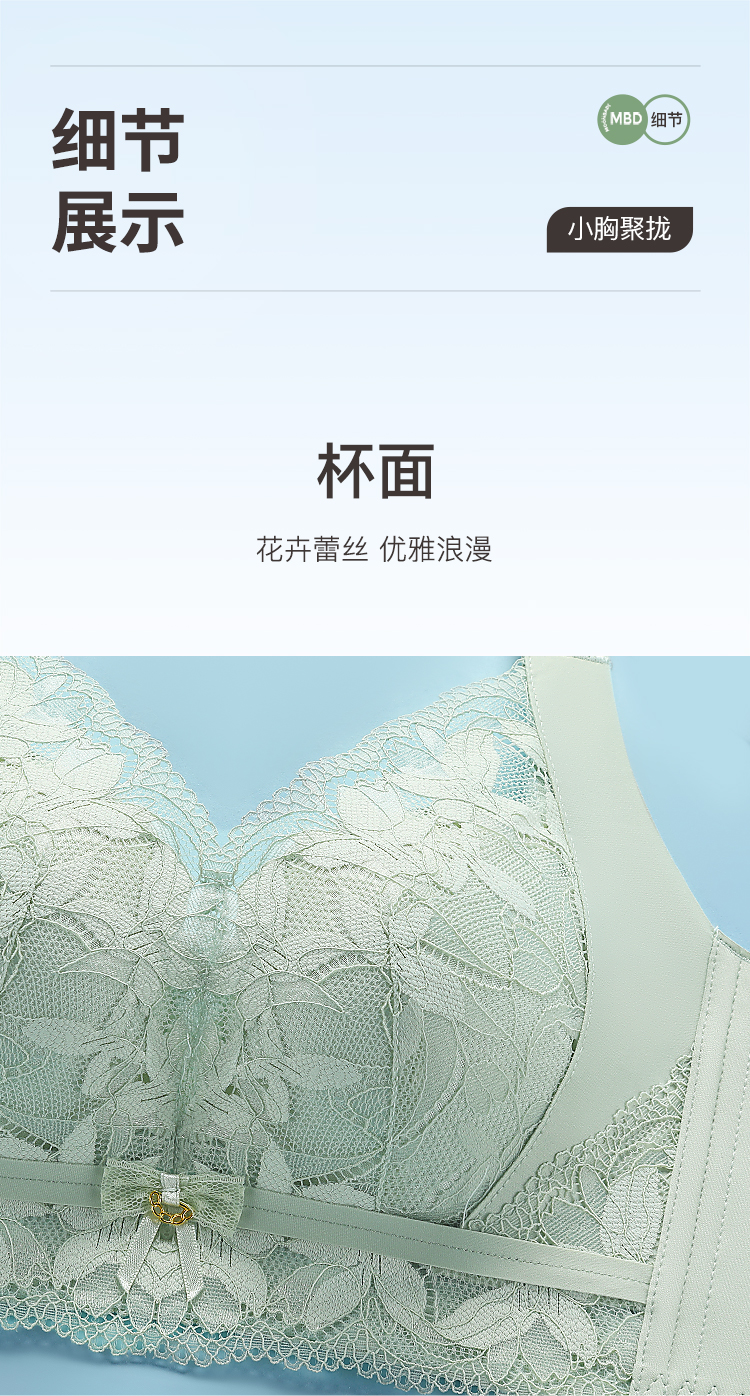 梦芭蒂双重聚拢小胸显大时尚蕾丝聚拢内衣双重侧收防下垂收副乳8904风恋紫色
