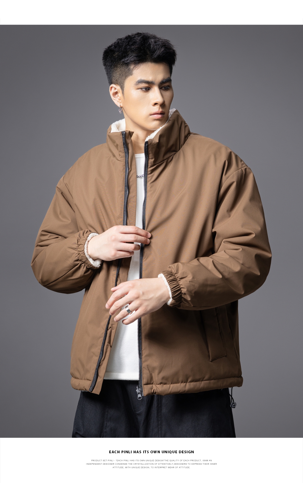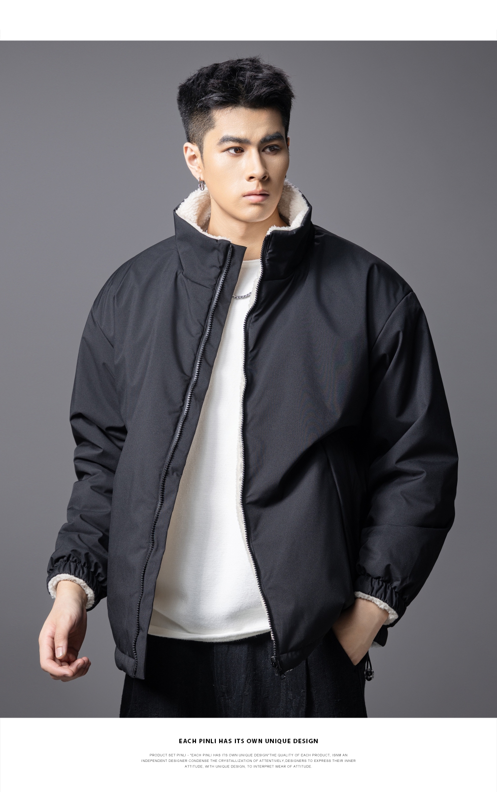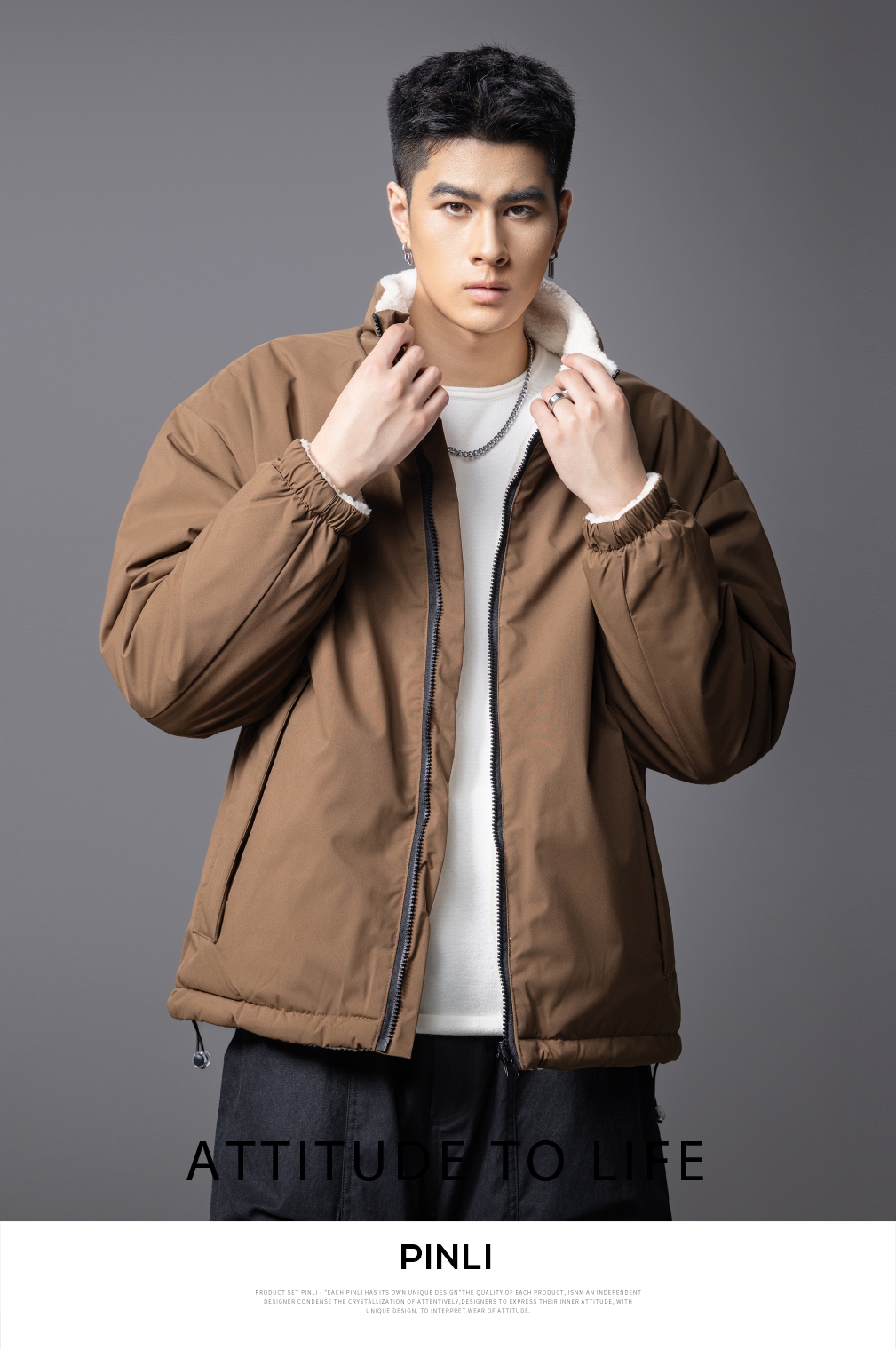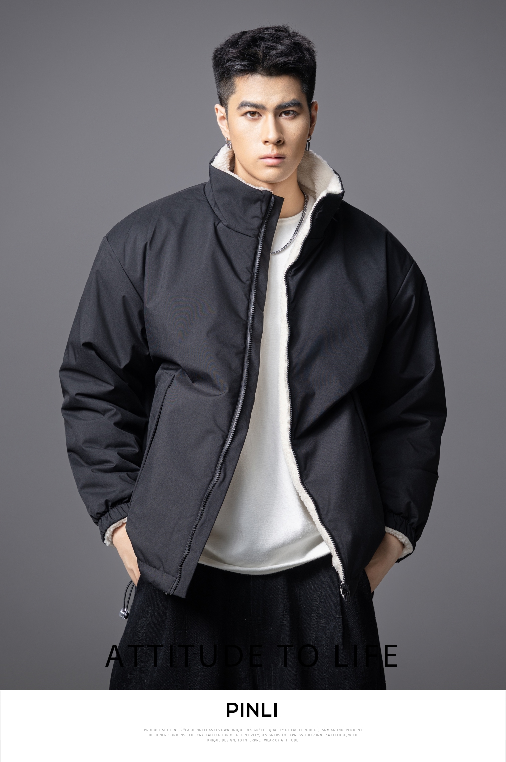 PINLI品立2025秋冬新款双面穿立领棉服外套宽松潮牌加厚休闲棉衣GD253105100
