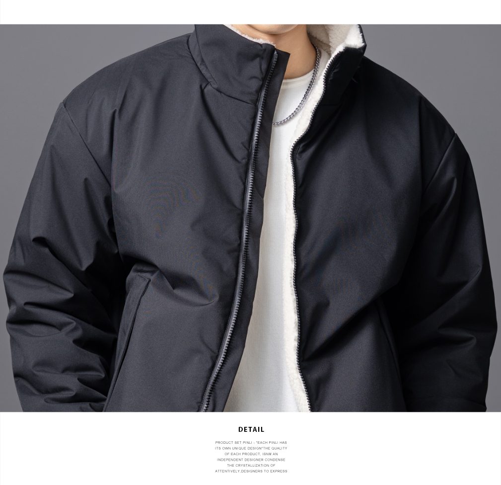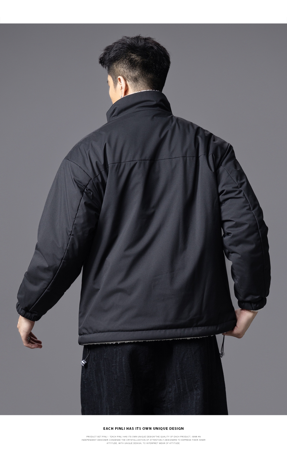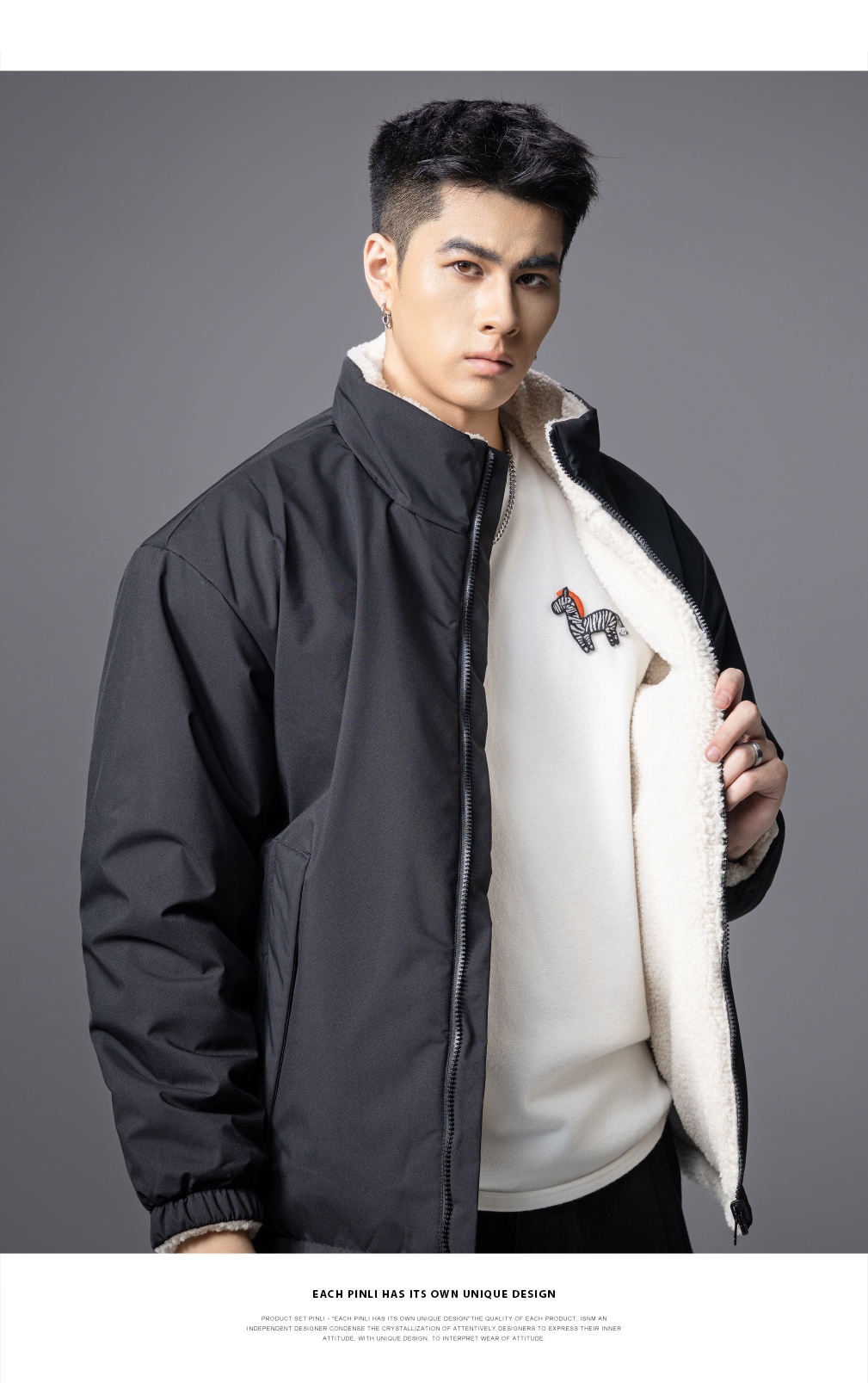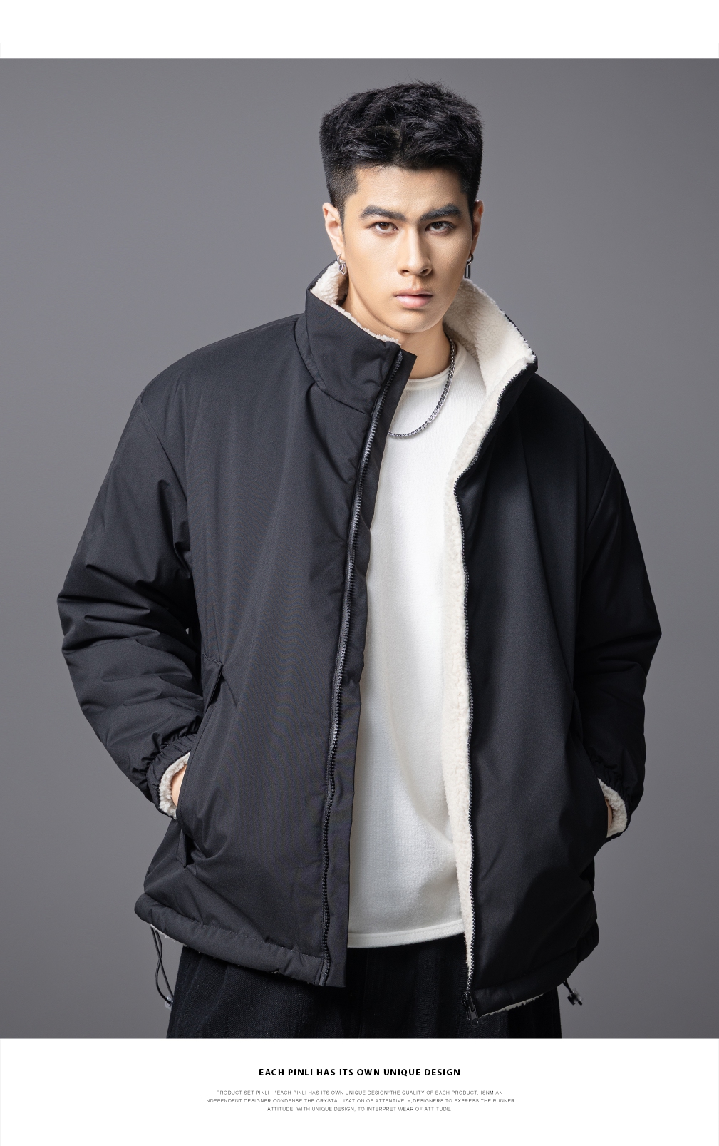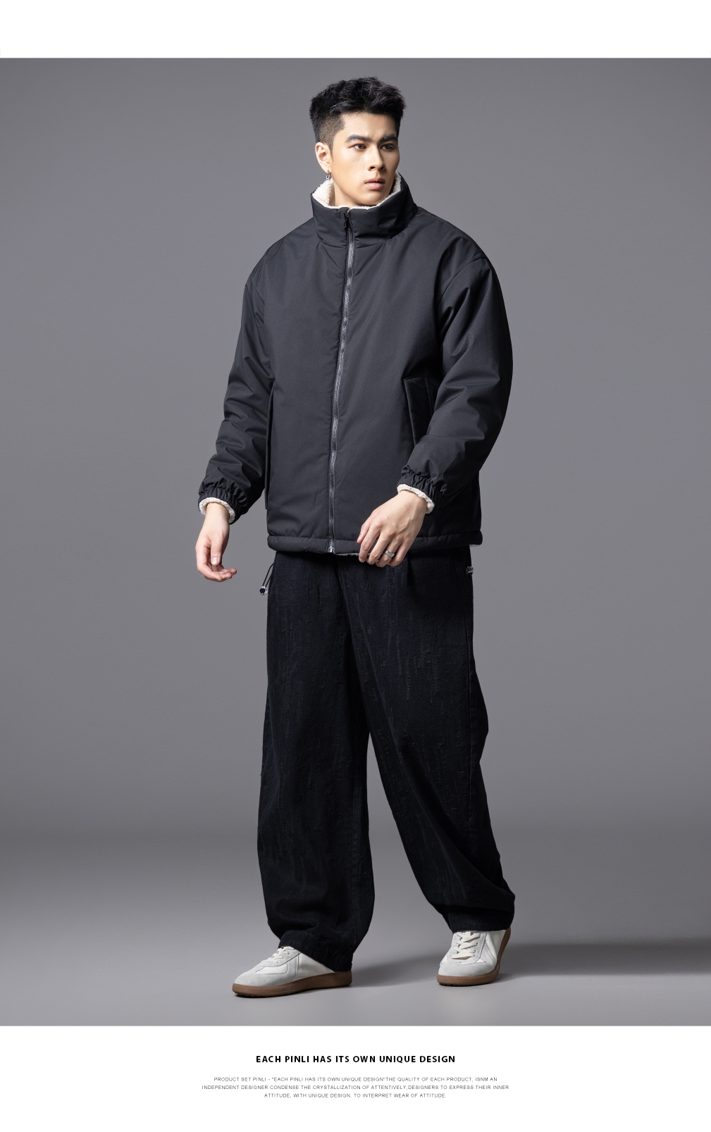 PINLI品立2025秋冬新款双面穿立领棉服外套宽松潮牌加厚休闲棉衣GD253105100