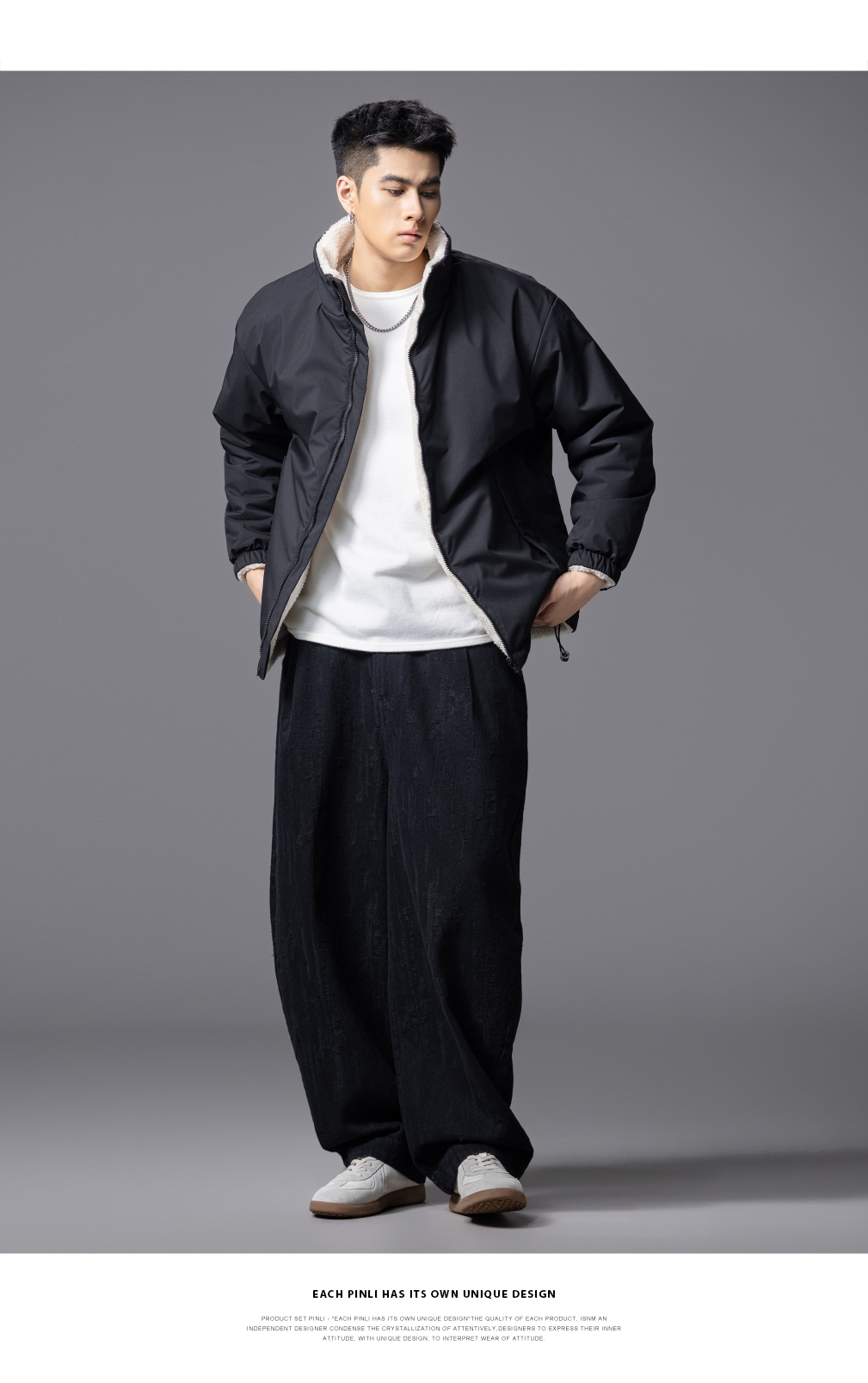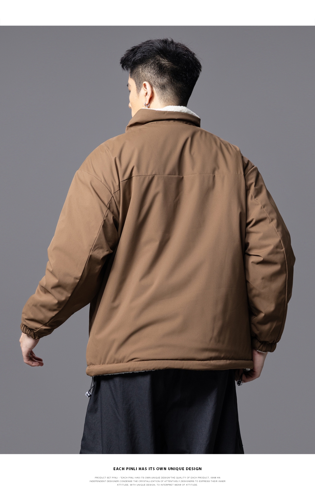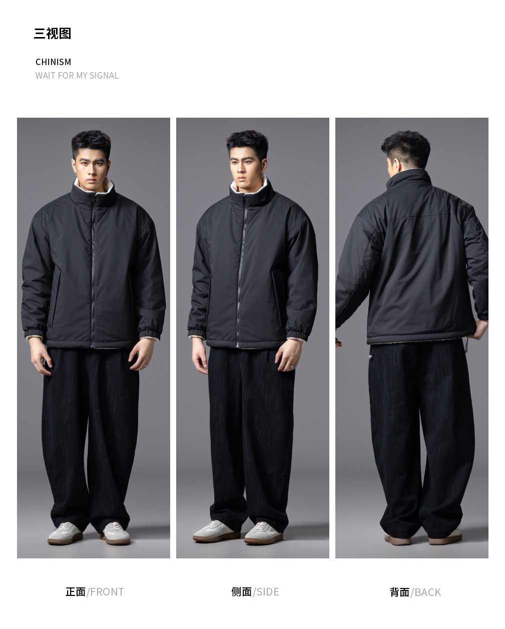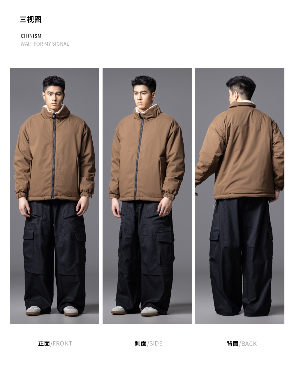 PINLI品立2025秋冬新款双面穿立领棉服外套宽松潮牌加厚休闲棉衣GD253105100