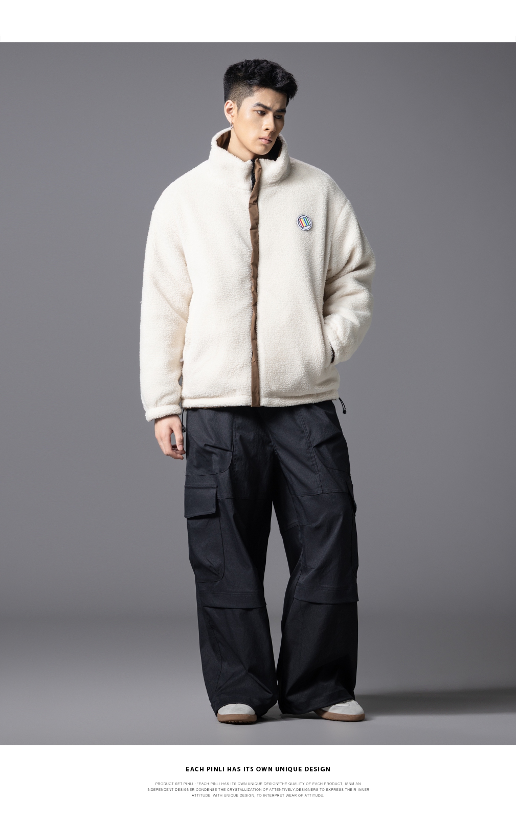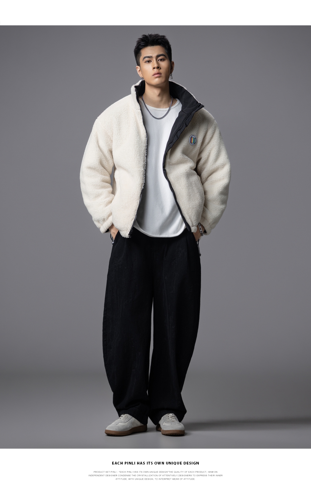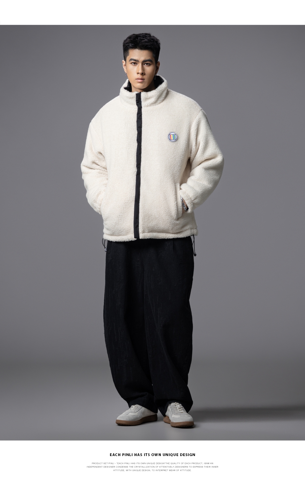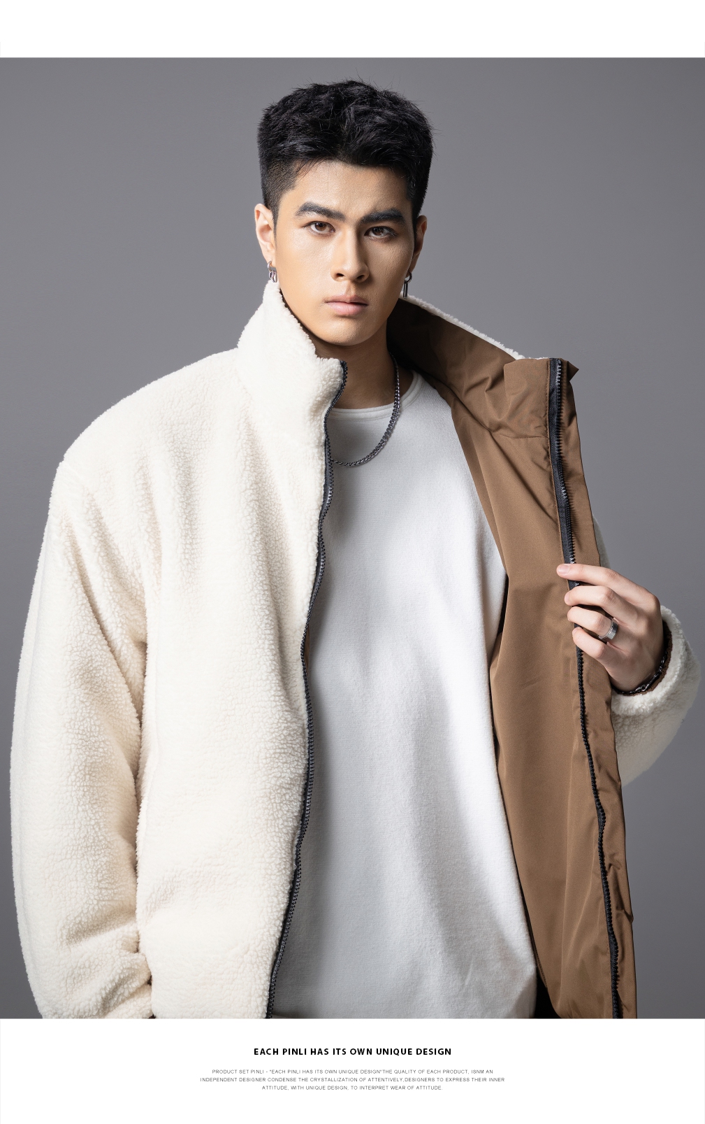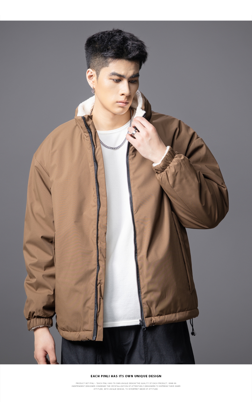 PINLI品立2025秋冬新款双面穿立领棉服外套宽松潮牌加厚休闲棉衣GD253105100