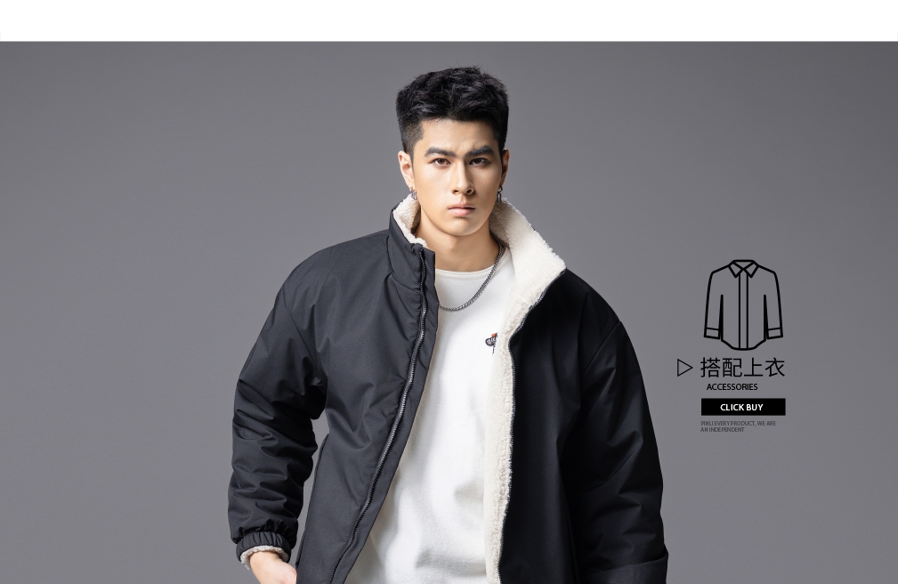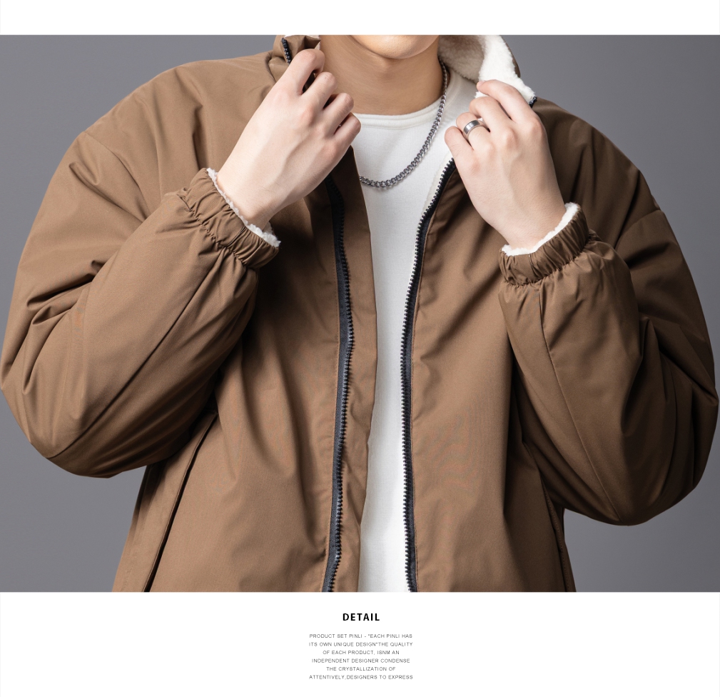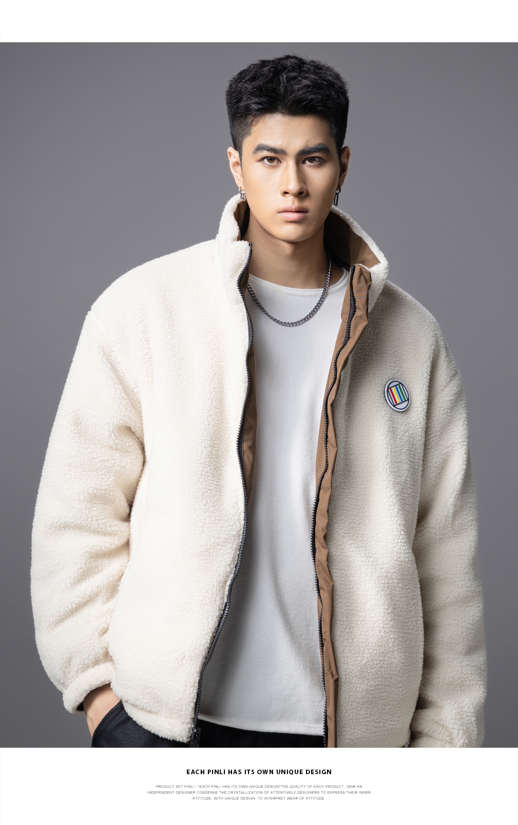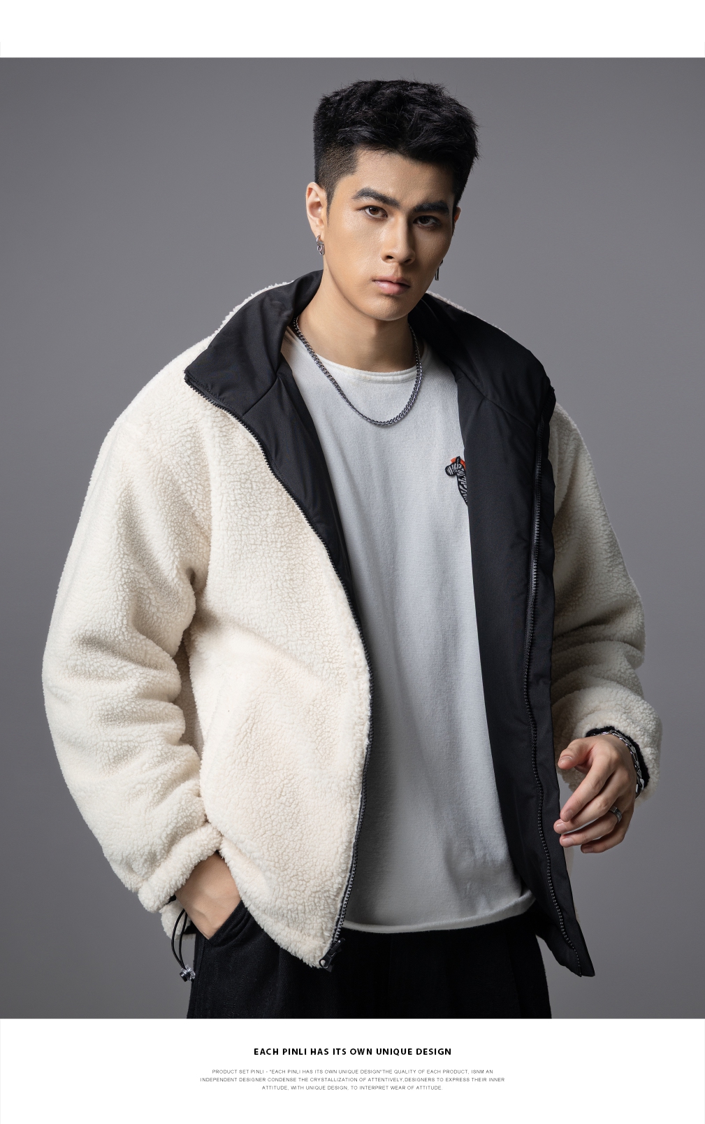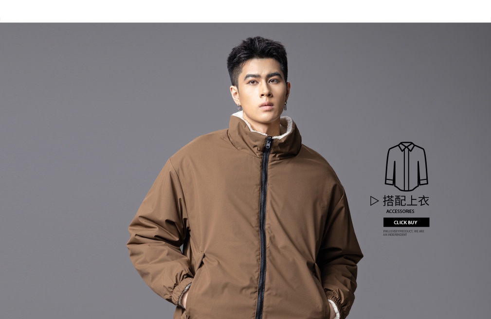 PINLI品立2025秋冬新款双面穿立领棉服外套宽松潮牌加厚休闲棉衣GD253105100