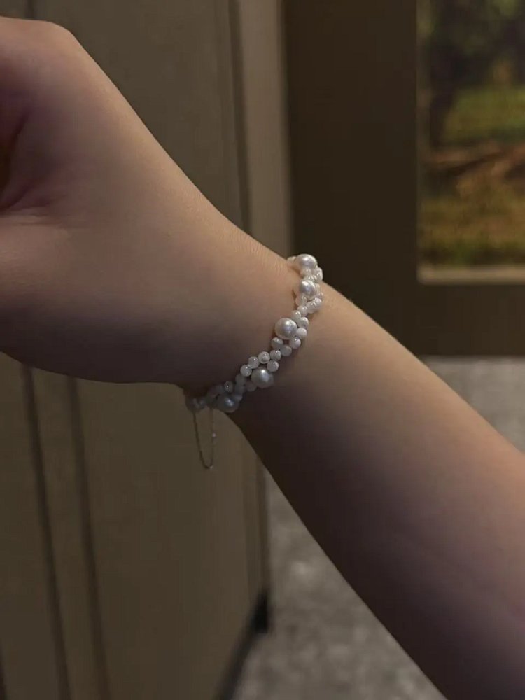 开启腕间绮梦 在珠宝的璀璨星河中,总有那么一款,能瞬间击中你的心。「咪萌」编织款手链,便是这样的存在。 在银白与珠玉的国度里, 咪萌手链,似梦的精灵轻舞。 珍珠圆润,如月光凝露, 编织的线条,是时光温柔笔触。 商品实拍图 于喧嚣尘世中,「咪萌」编织款手链愿做你腕间的一抹温柔亮色, 陪伴你走过岁岁年年,见证每一个美好瞬间。