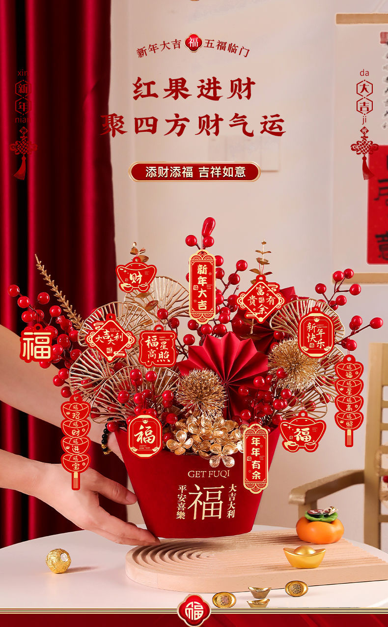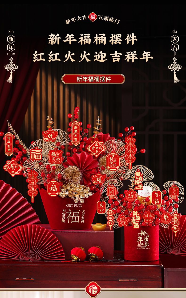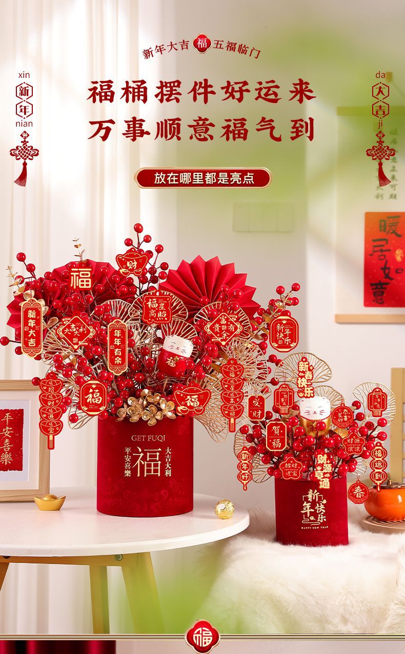 【福桶到 福气到 红红火火迎新年】新年装饰福桶摆件乔迁之喜新居布置礼物2024龙年元旦过年喜庆用品