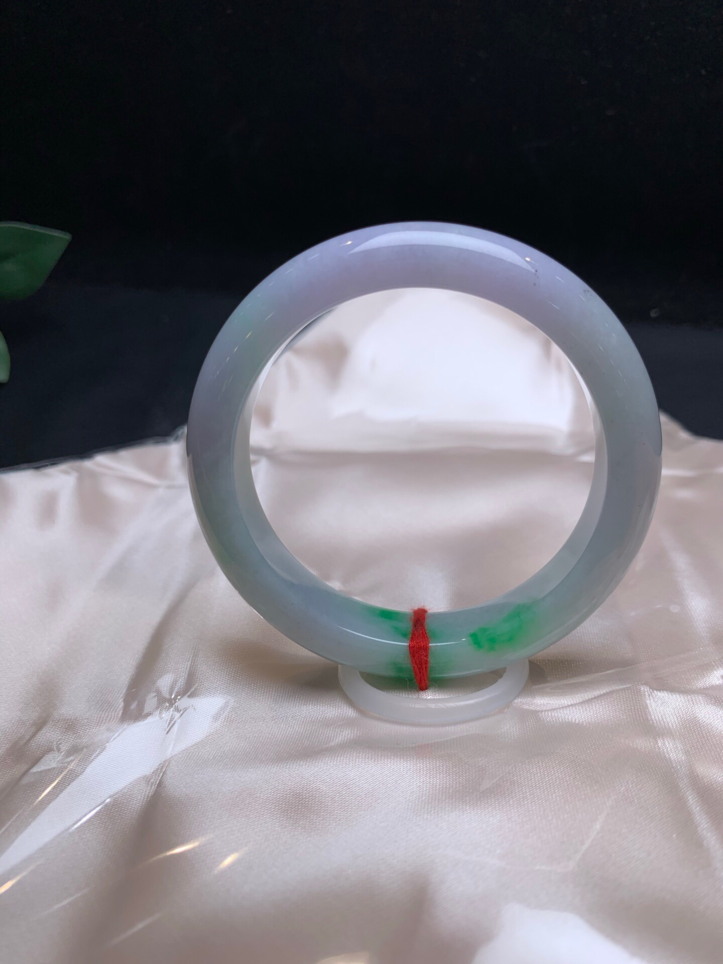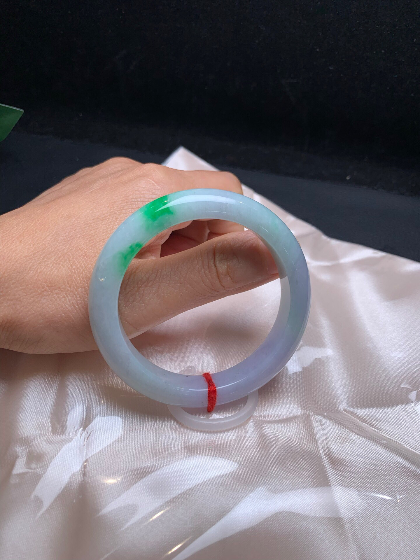 620582,53.5 春彩手镯,11.5-8mm,淡紫底飘一抹辣绿,清新秀气 ,干净完美,超值价💰28600 #优石客珠宝#香玉荟萃