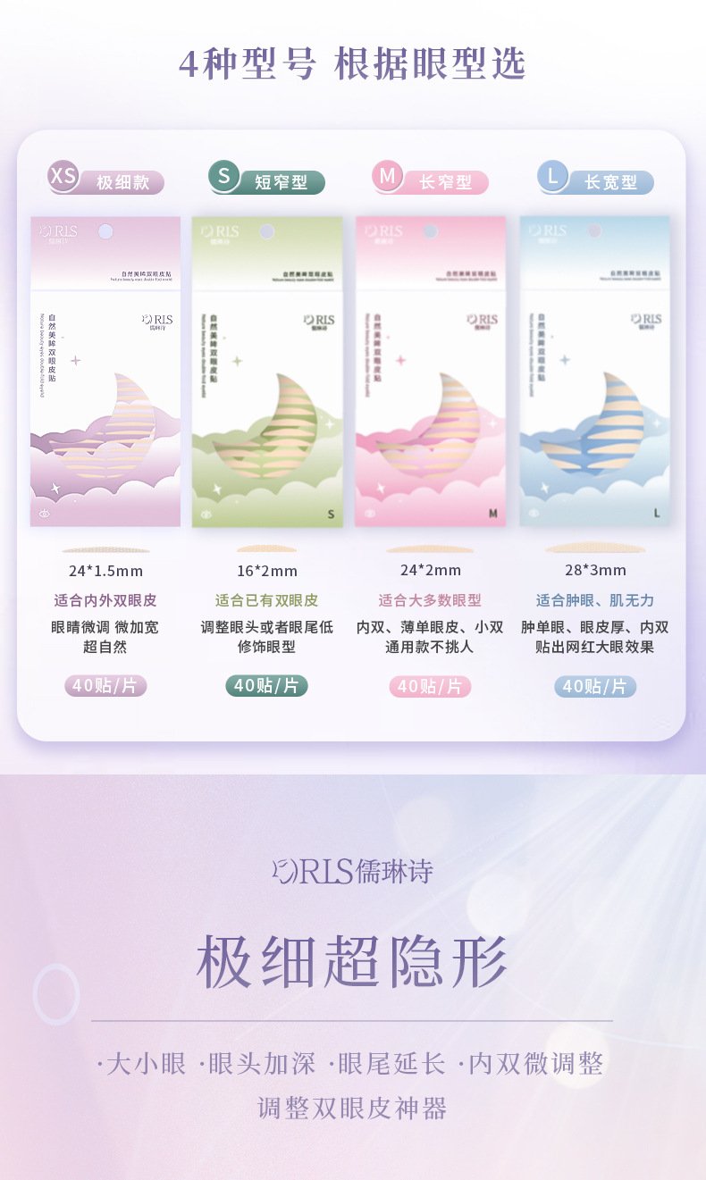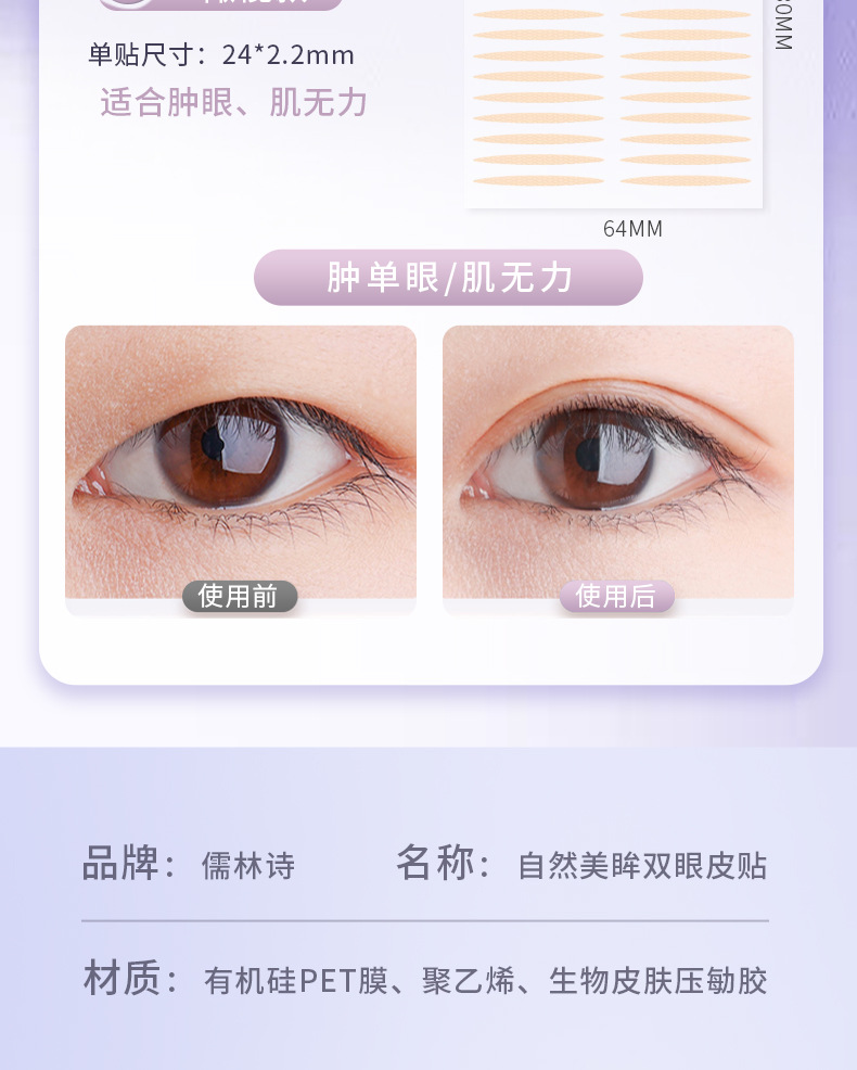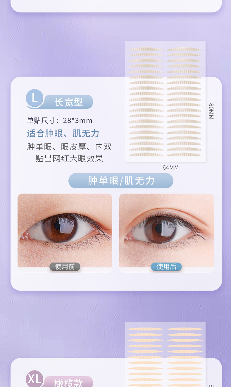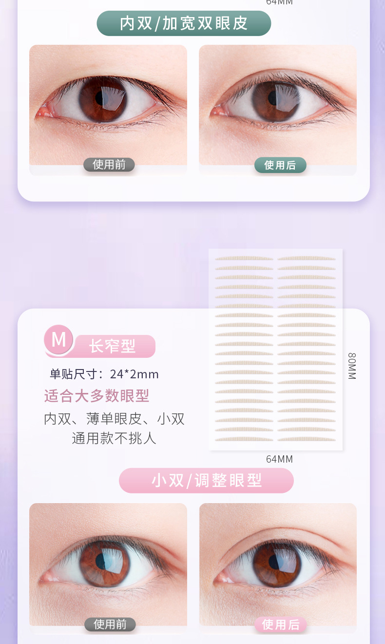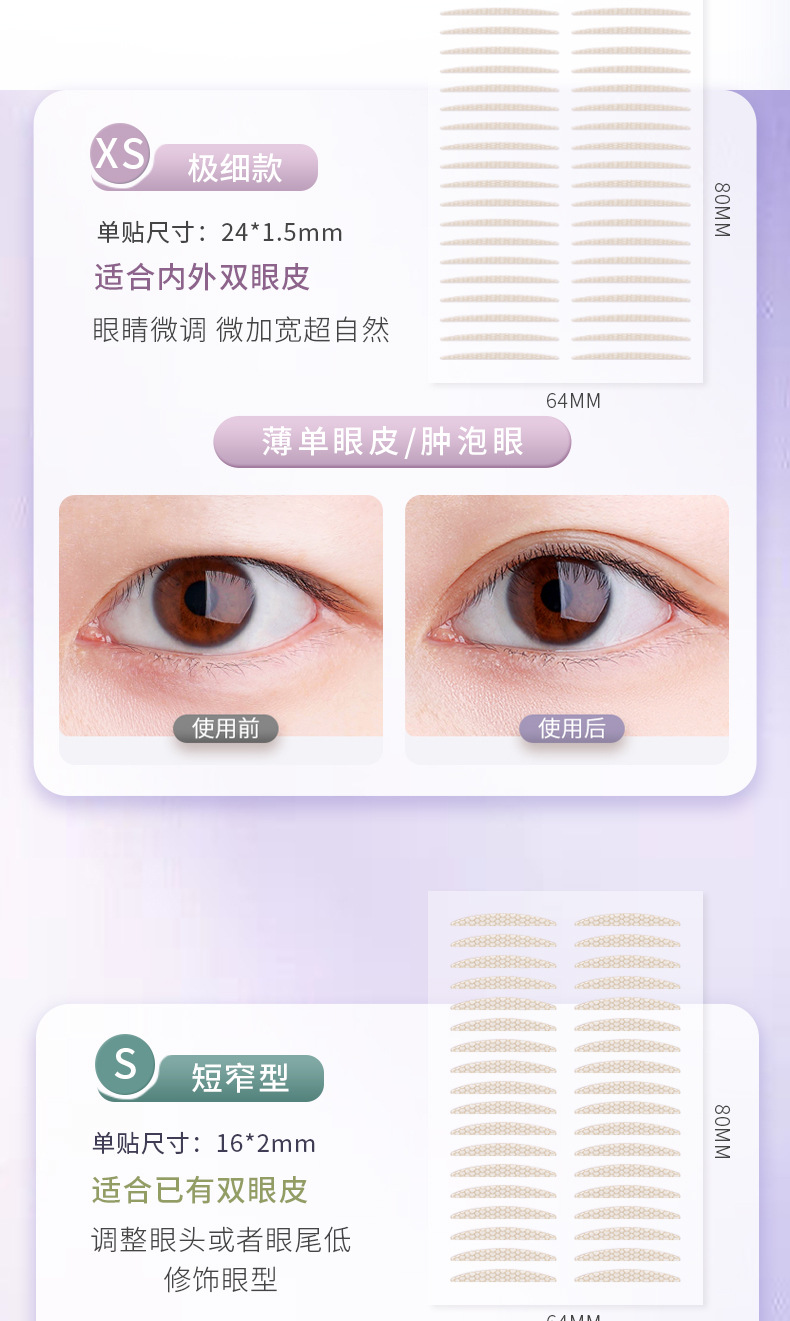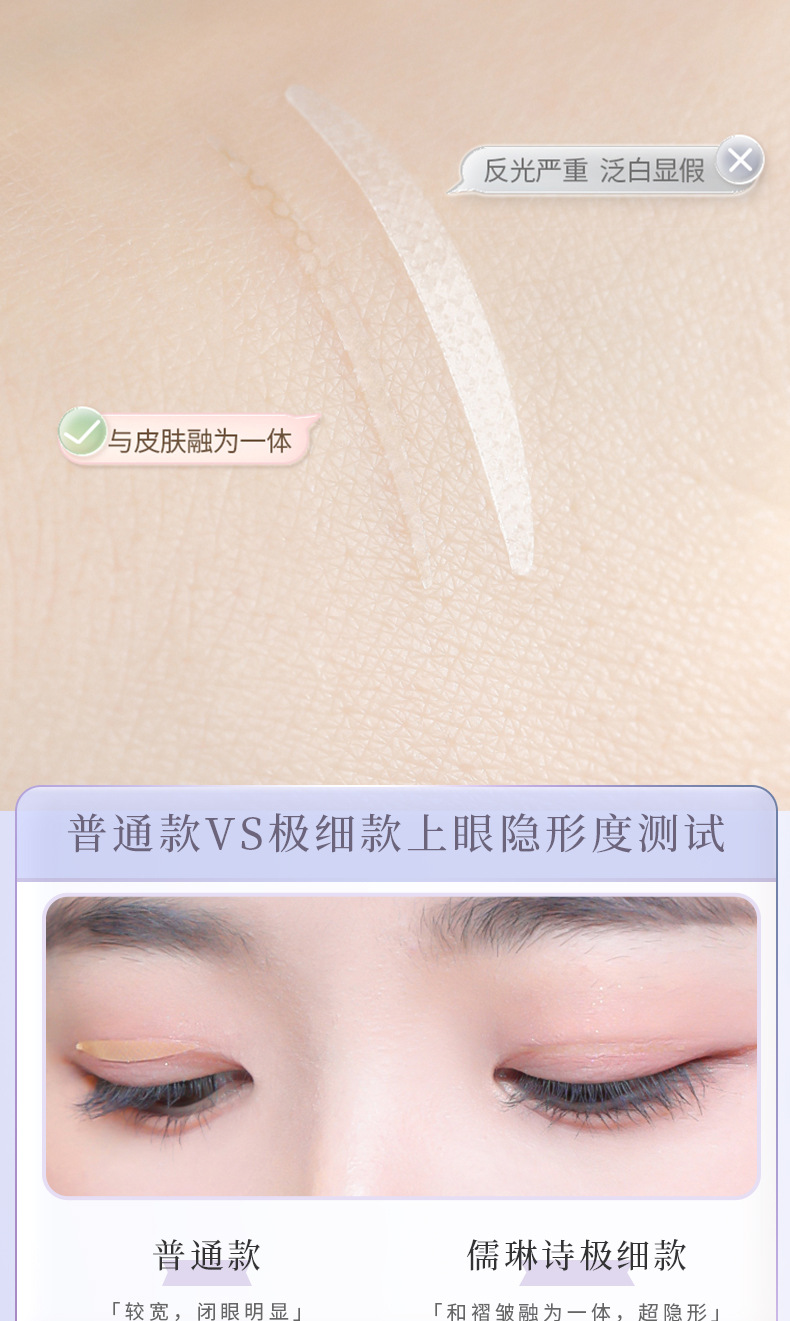 【无痕隐形❗️自然美眸双眼皮贴】仿肌肤纹理设计,有机硅PET膜,轻薄服帖,与皮肤融为一体,胶更粘牢持久,防水防汗自然无痕肿眼泡蕾丝美目双眼贴女QQ