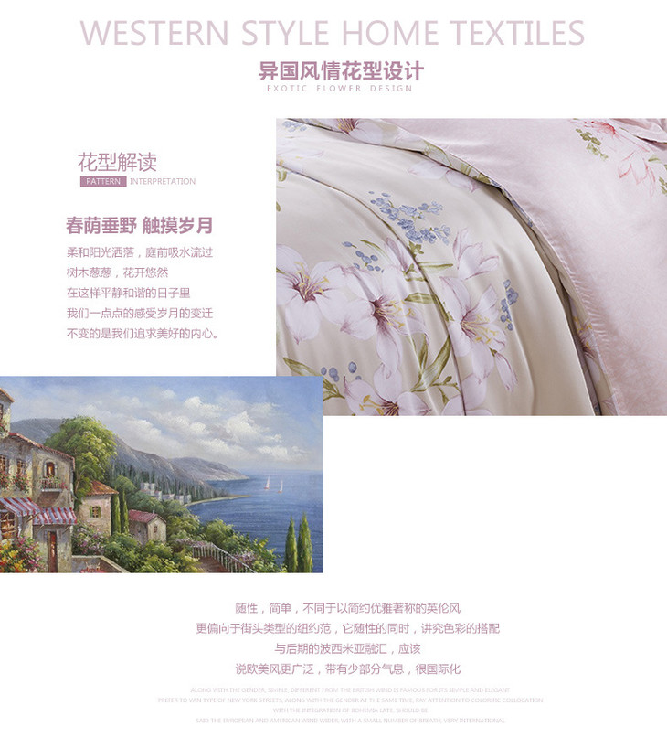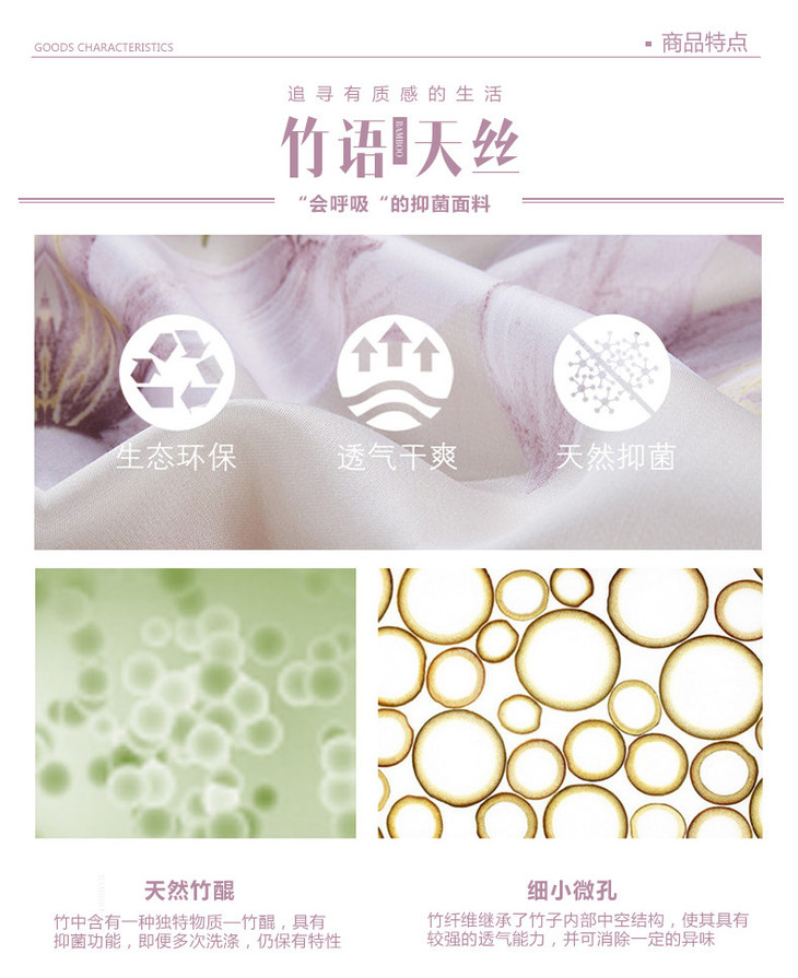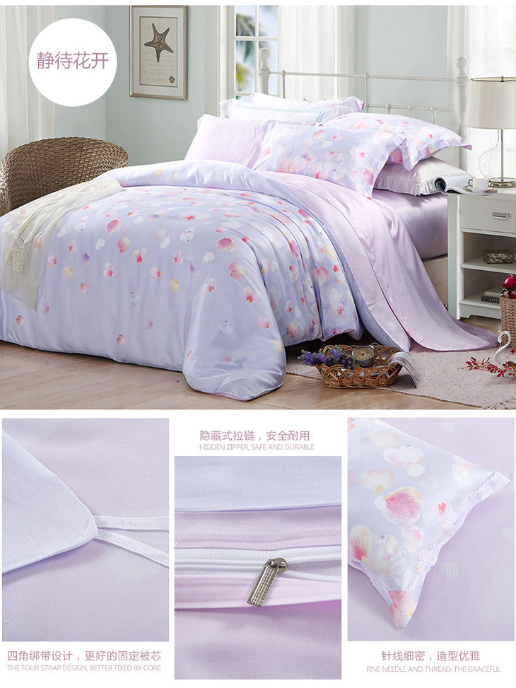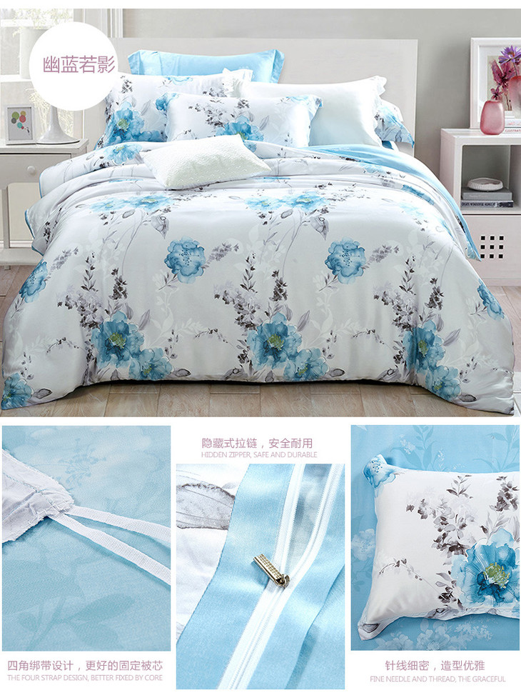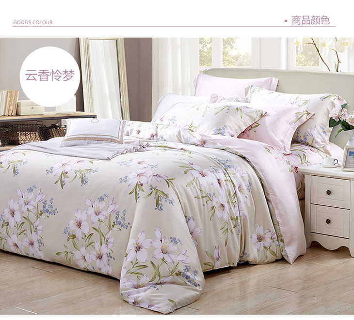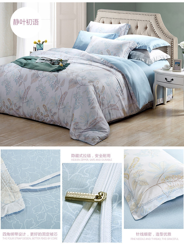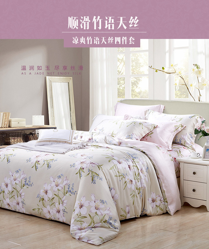 。【家纺】柳桥五星级酒店竹语天丝四件套双面床上春夏季裸睡田园风