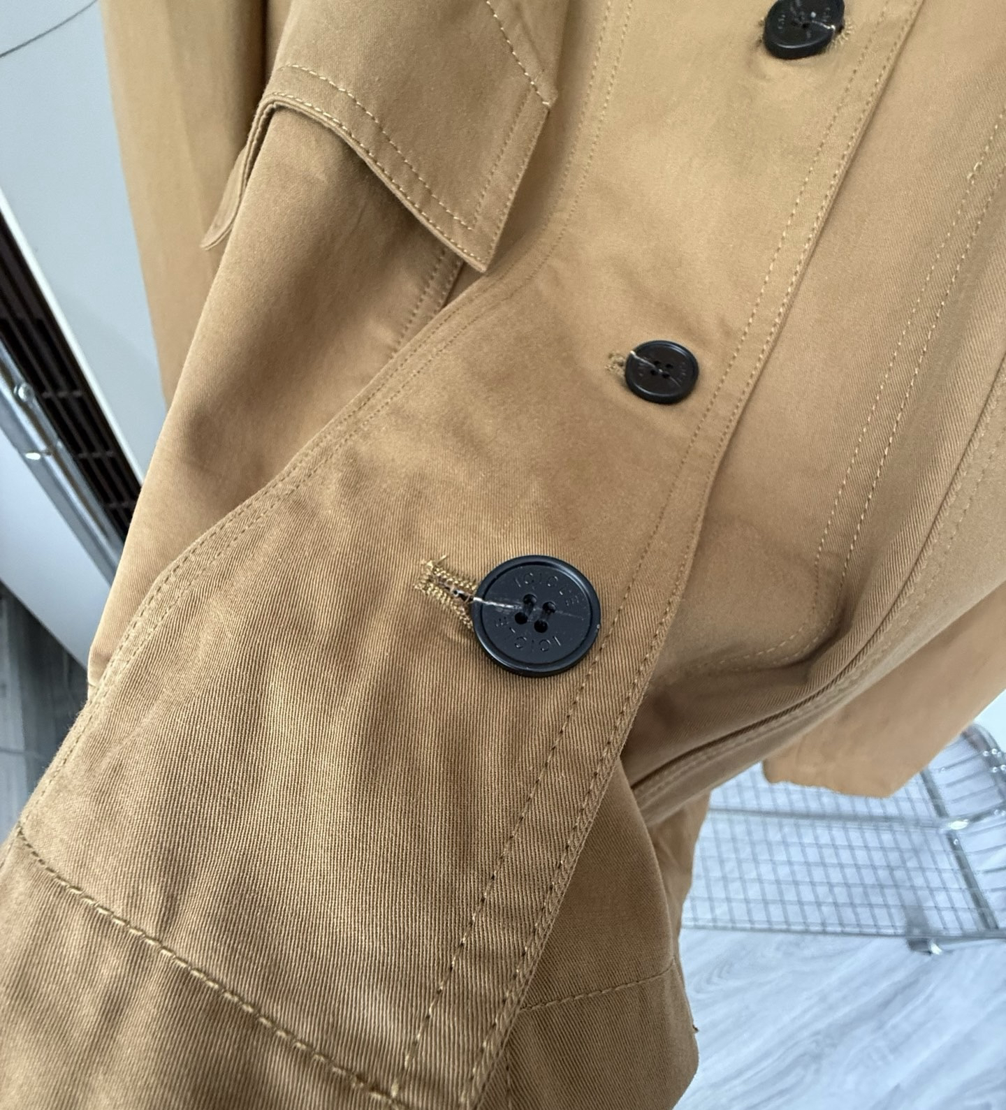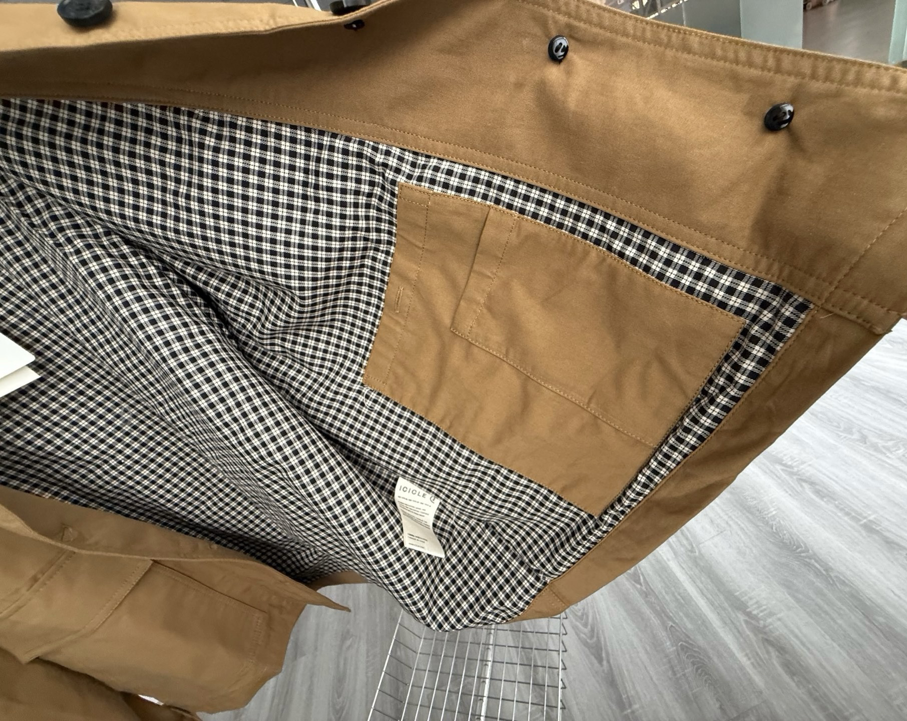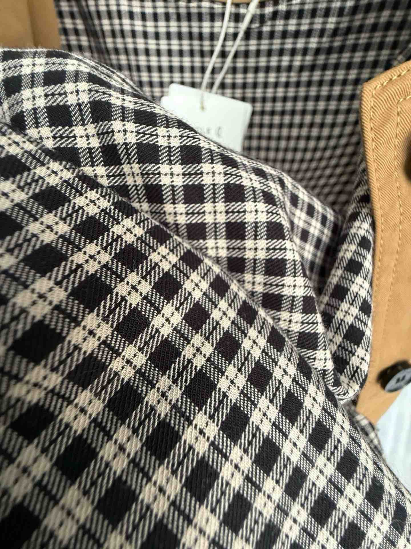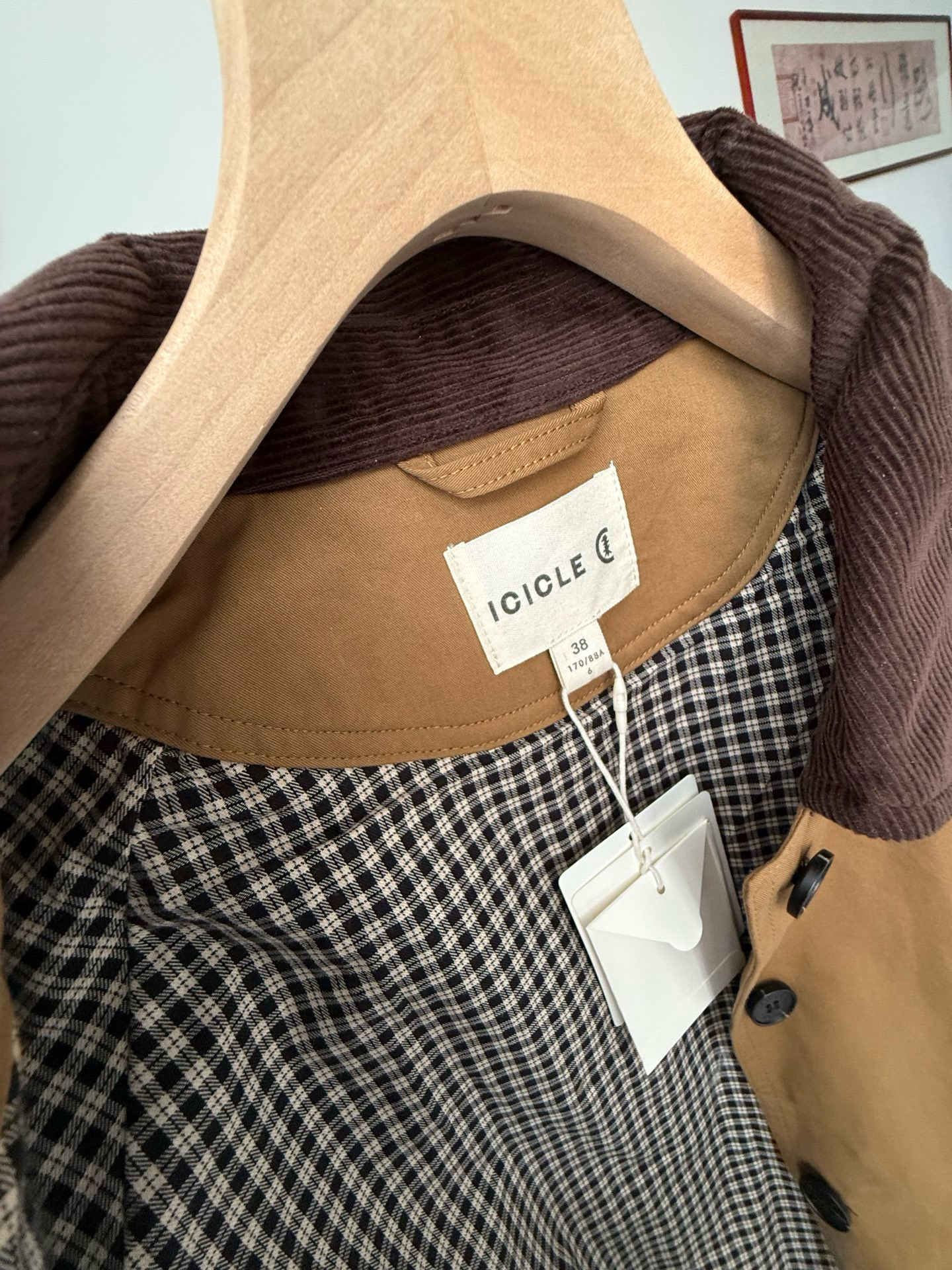 领部是灯芯绒面料,为外套增添了独特的质感和视觉亮点,内搭是磨毛纯棉黑米白格纹面料,保留了猎装原有的元素面料细节,整件衣服精打细磨,简直了~