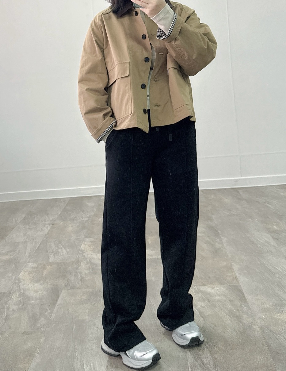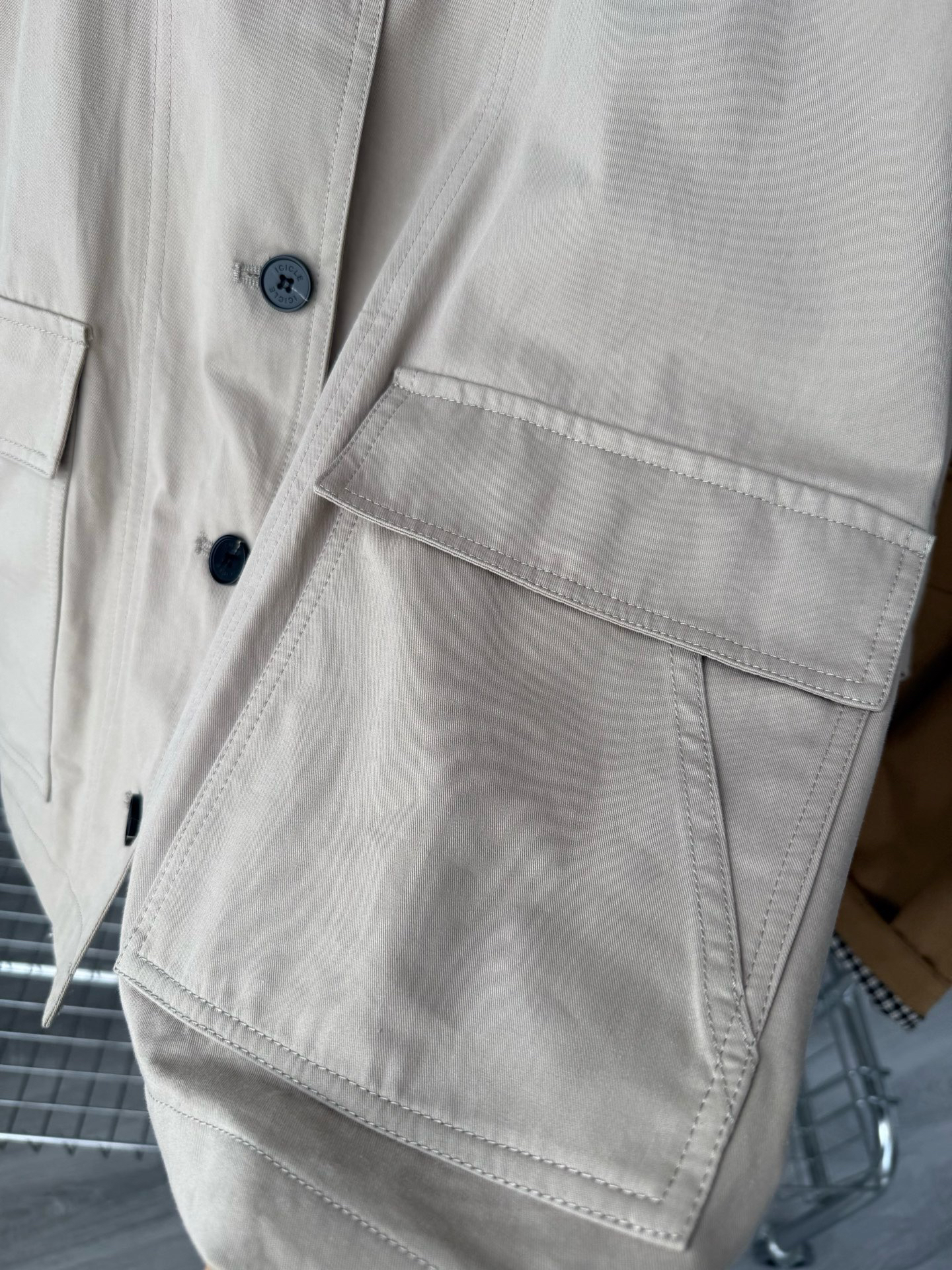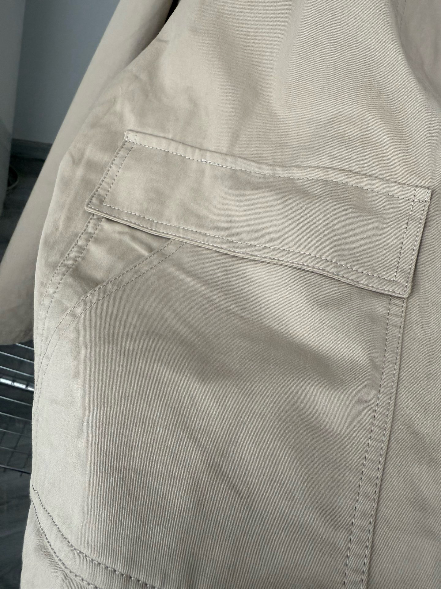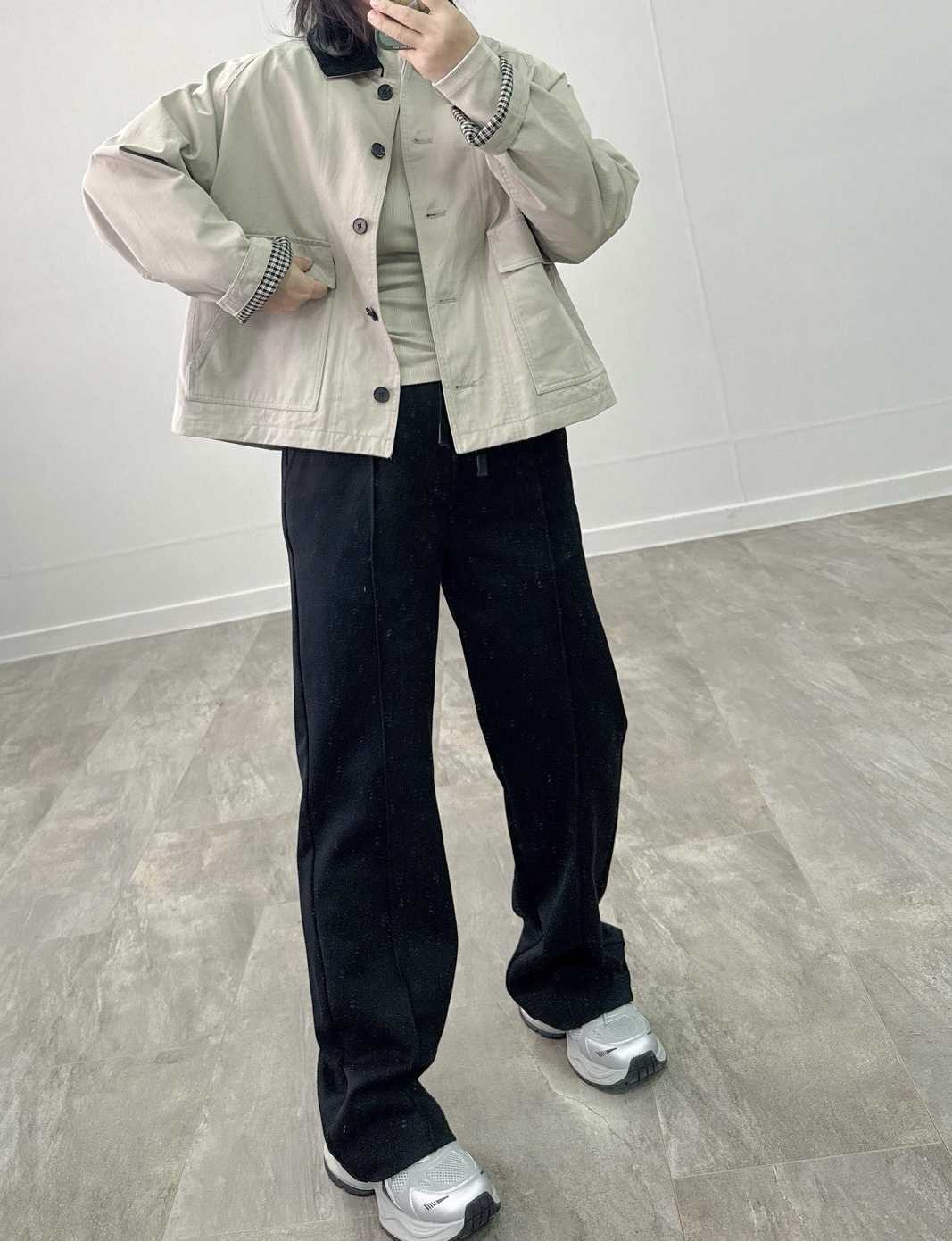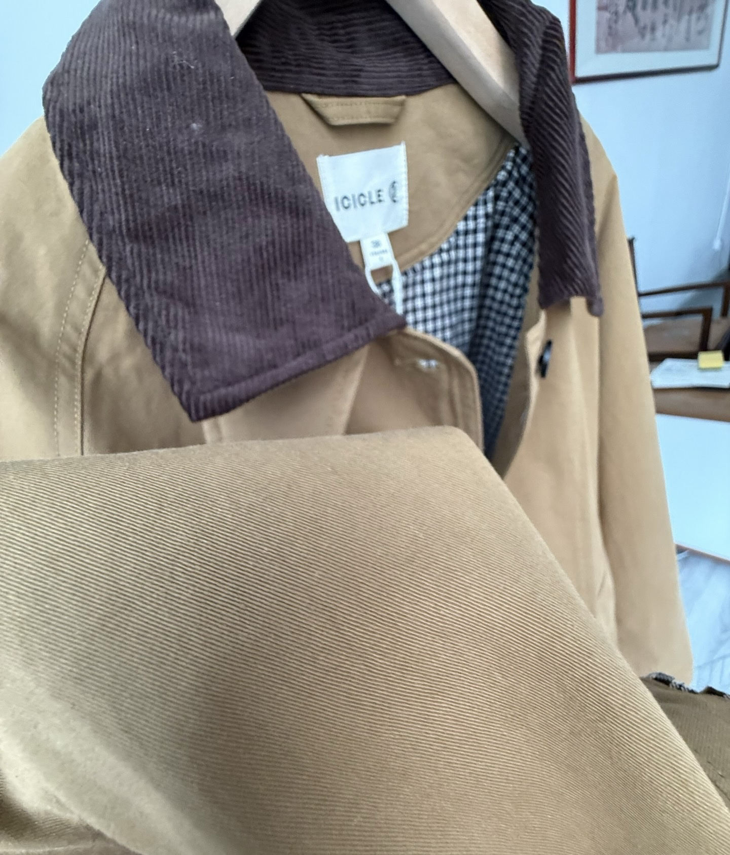 领部是灯芯绒面料,为外套增添了独特的质感和视觉亮点,内搭是磨毛纯棉黑米白格纹面料,保留了猎装原有的元素面料细节,整件衣服精打细磨,简直了~
