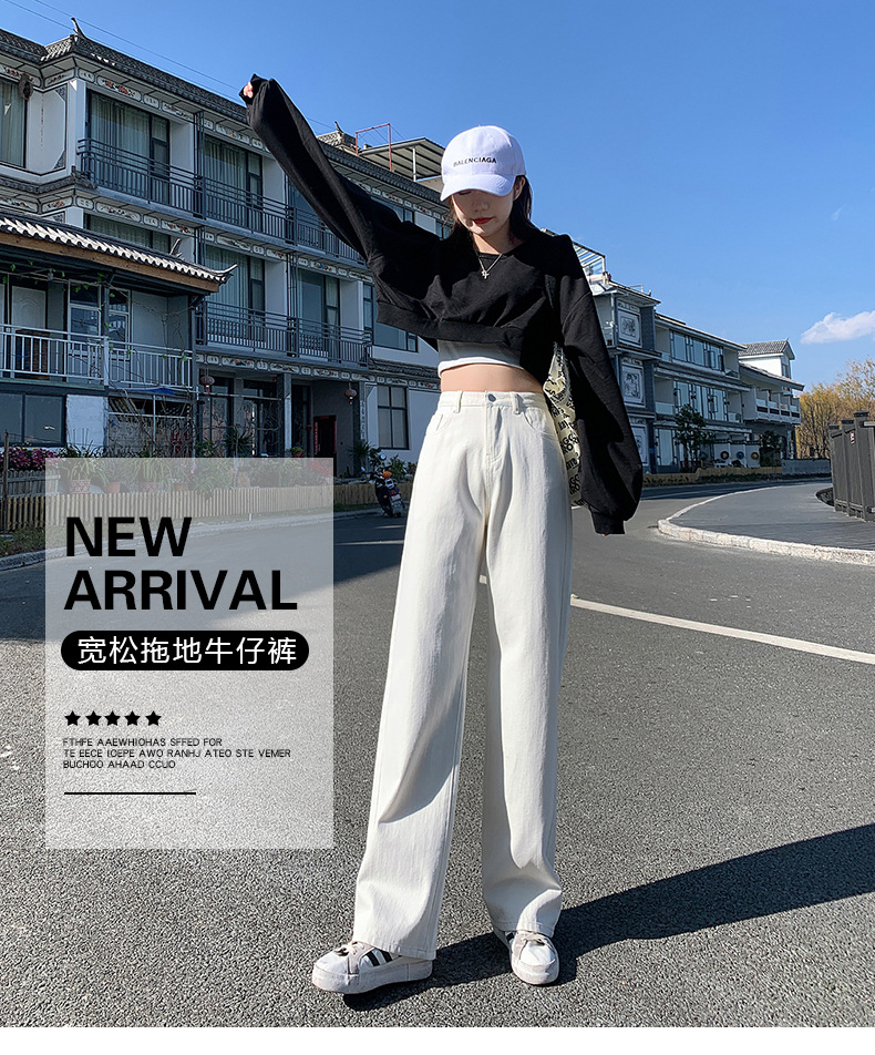 【服饰鞋包】夏季天丝牛仔裤女爆款高腰垂感宽松显瘦百搭白色直筒阔腿拖地裤子