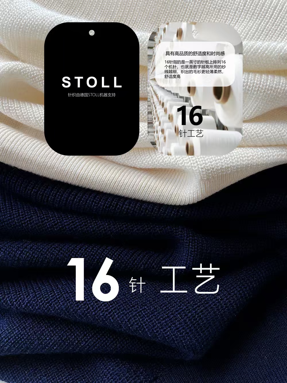 横机16针工艺,耗时耗力,不易起球不易变形!吸湿、透气、排汗、蓄热、恒温,都很出众!