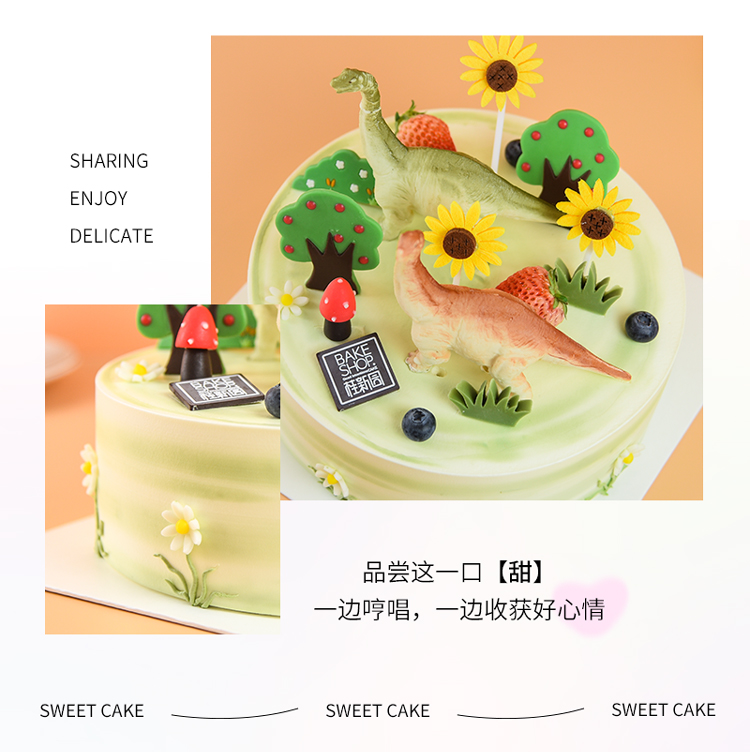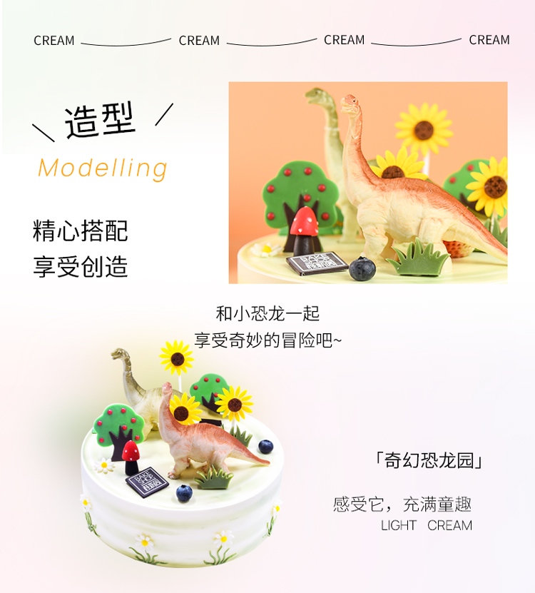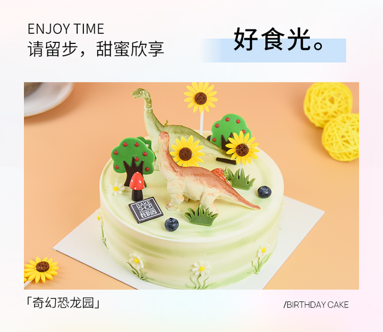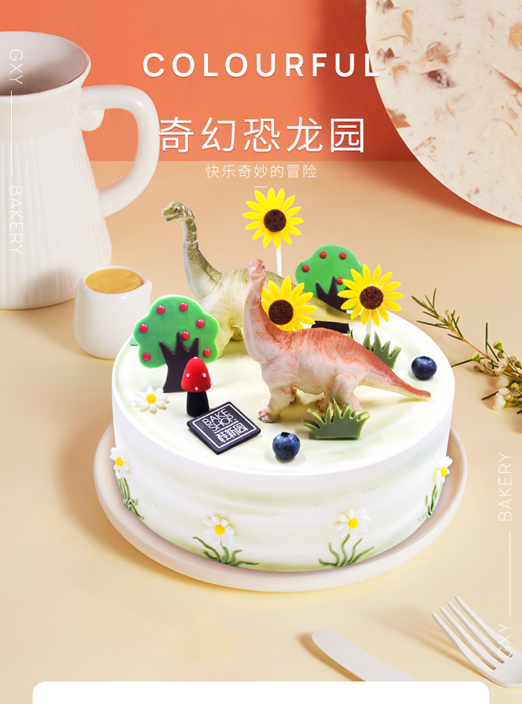 【奇幻恐龙园】 新款趣味生日蛋糕—纯乳脂与牛奶奶油混合,夹层口味升级,细腻香甜
