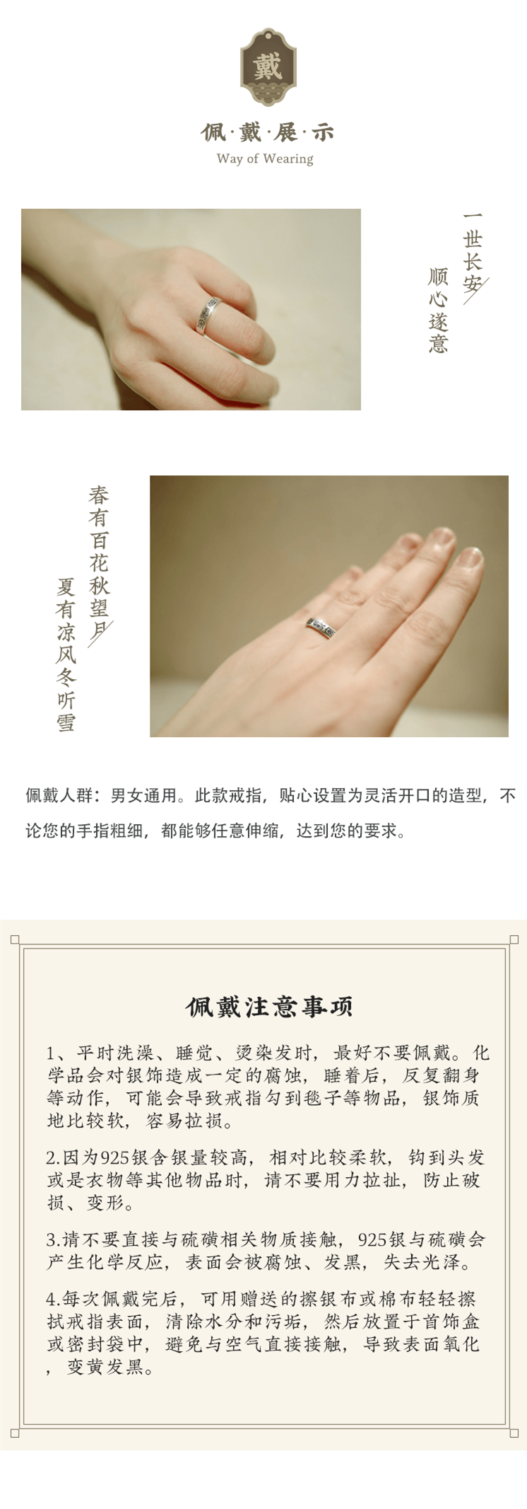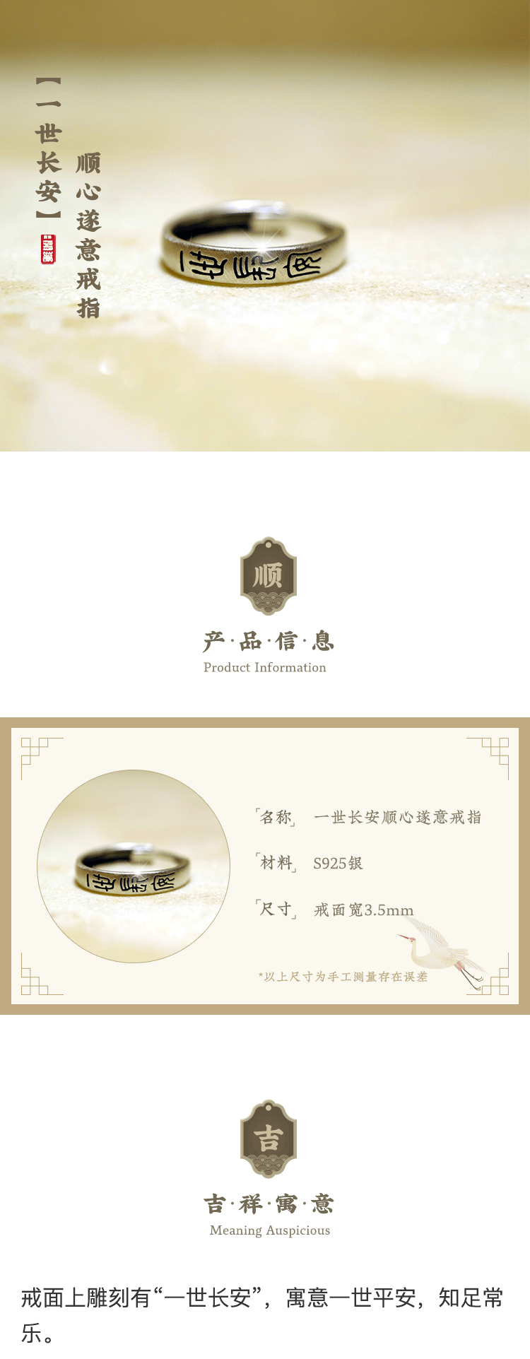 一世长安顺意925银戒指