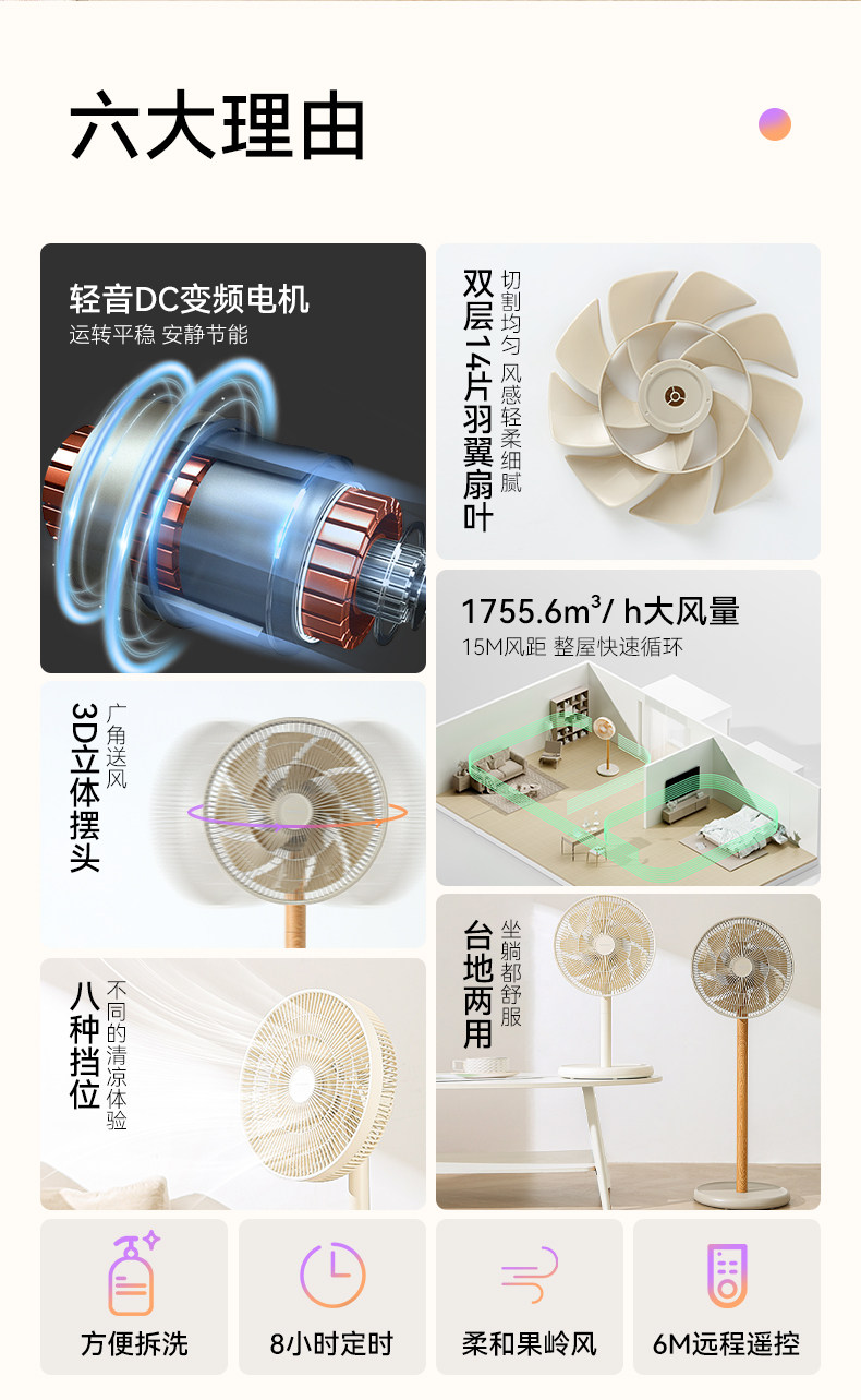 MUSUTAKU空气循环扇家用台立式落地扇两用大风力遥控摇头智能电扇