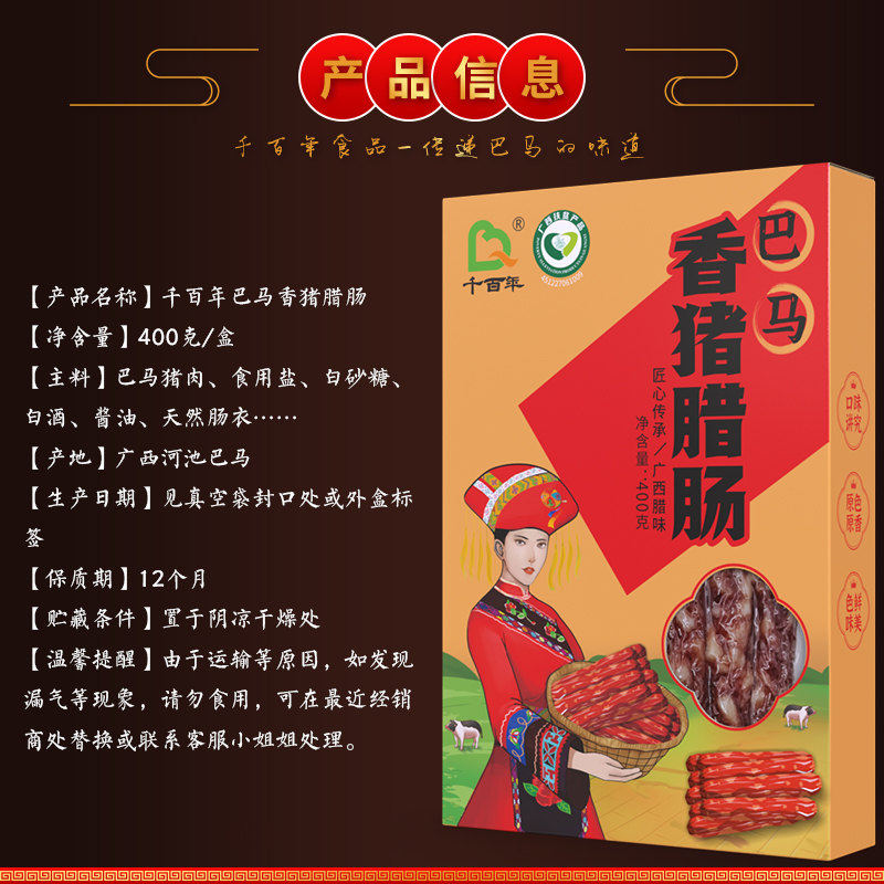 千百年巴马腊肠400g/盒
