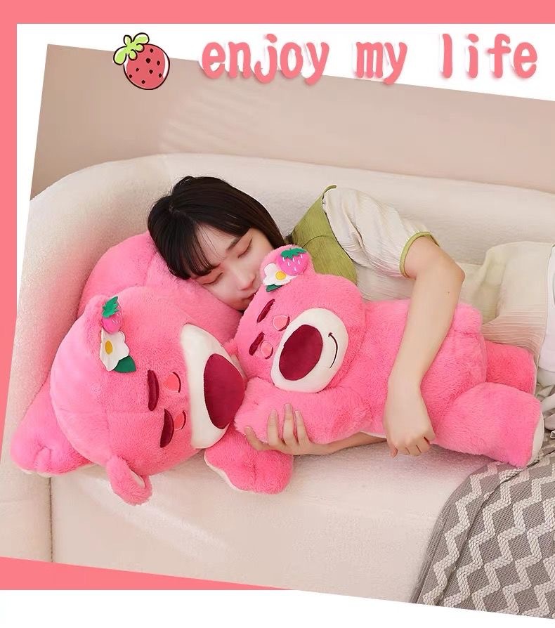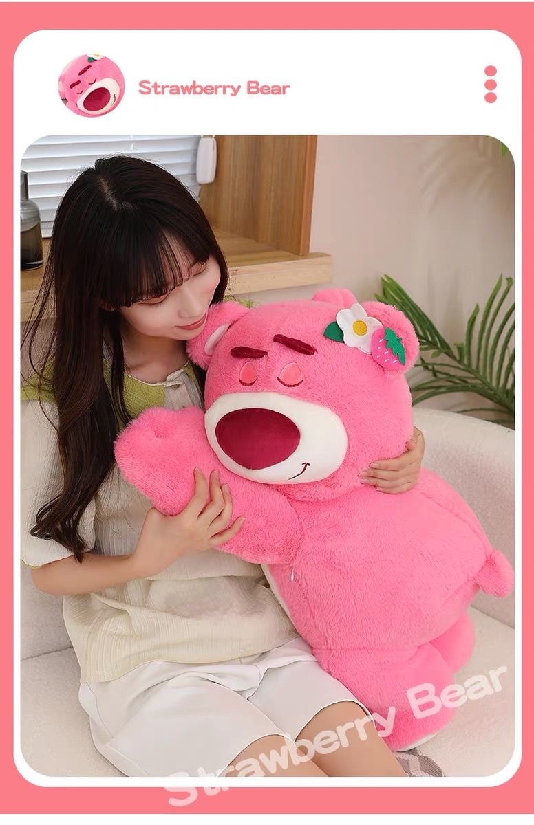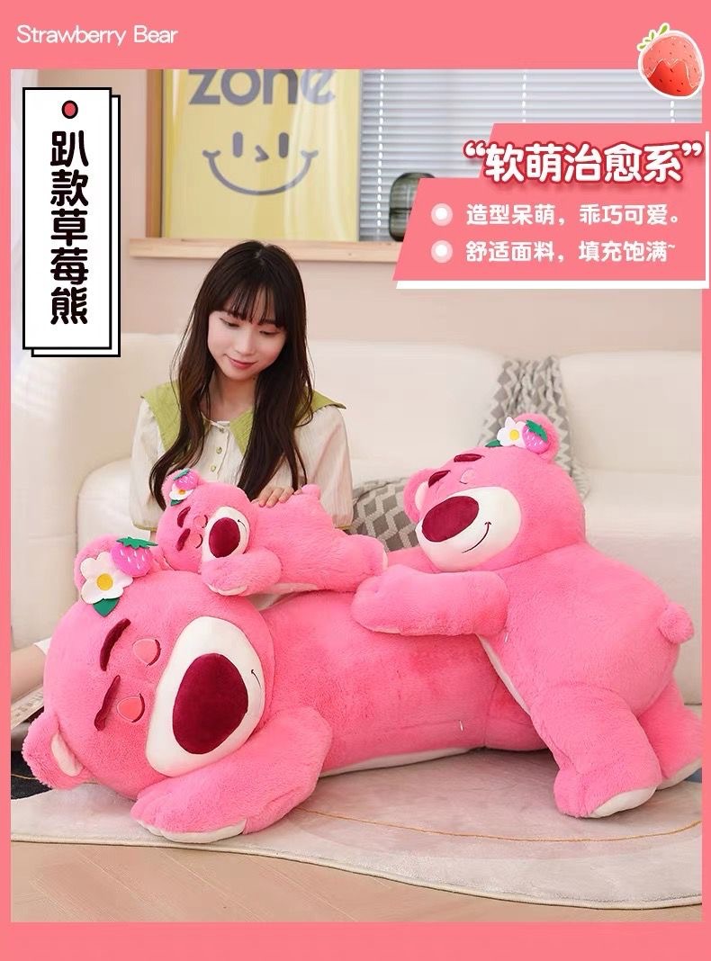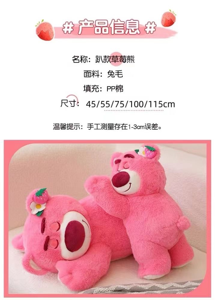 FXQ【软萌治愈系草莓小熊】亲肤舒适,触感柔滑❗️礼物优选鲜花配饰毛绒玩具粉红色趴趴熊新年礼盒年货礼盒