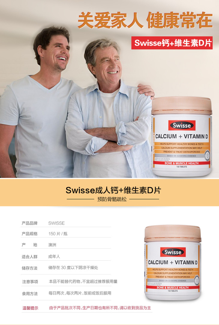(永久下架)澳洲Swisse瑞思 成人钙 150粒