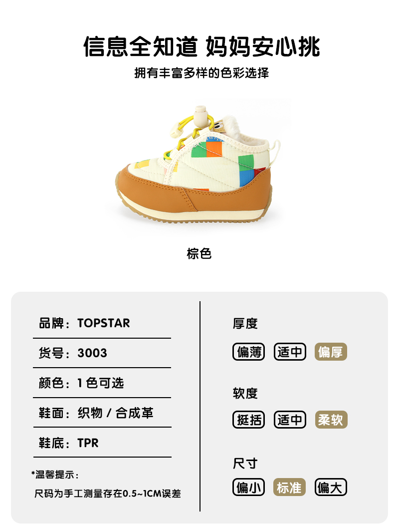 TOPSTAR2024冬季新款软底儿童雪地靴3003