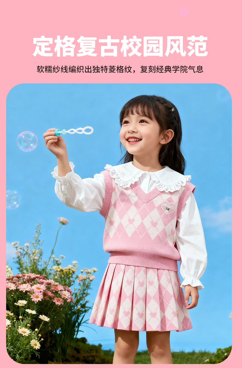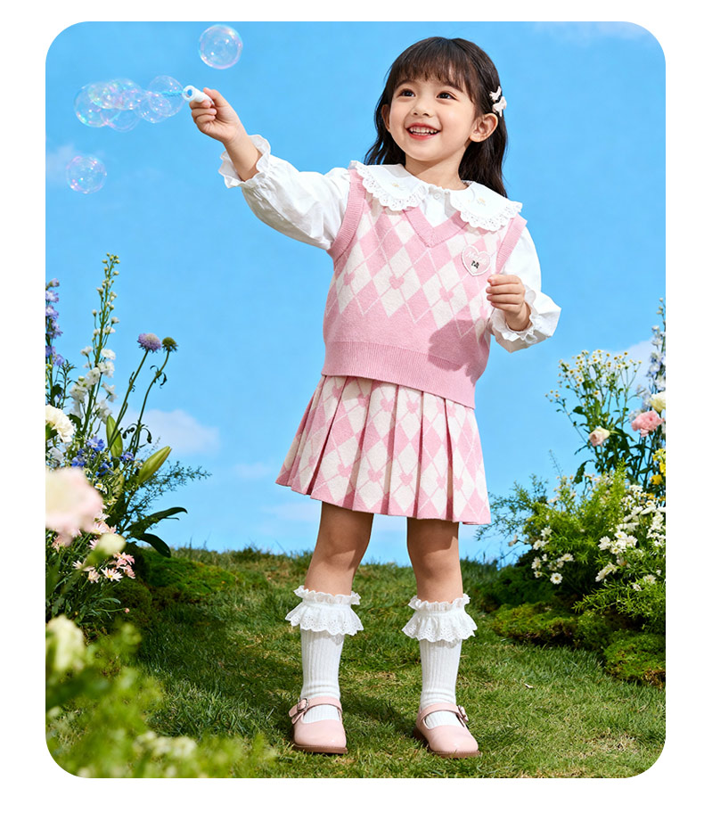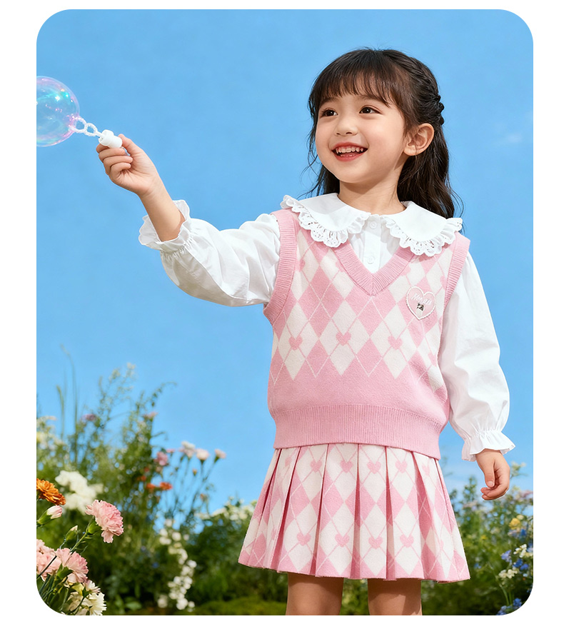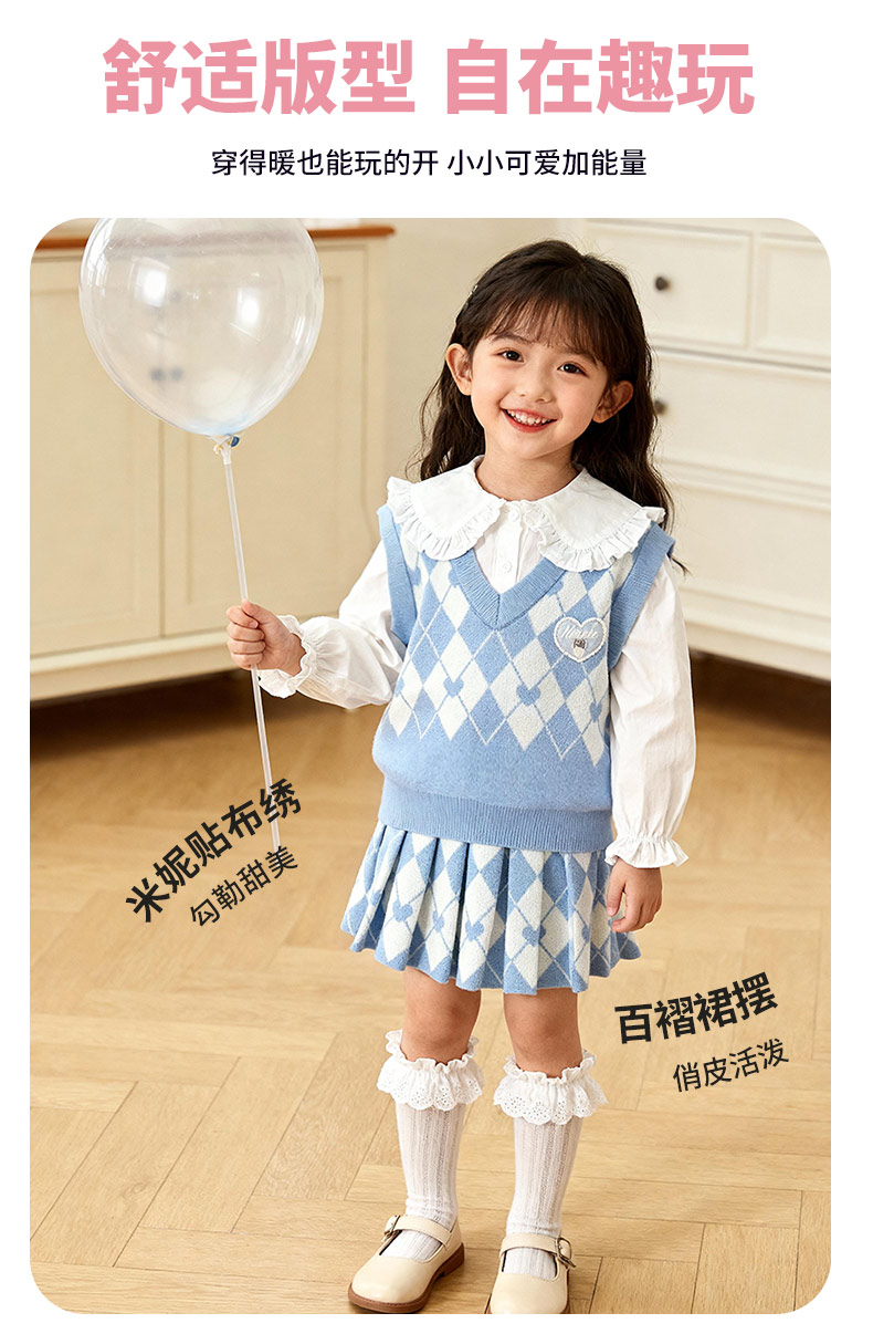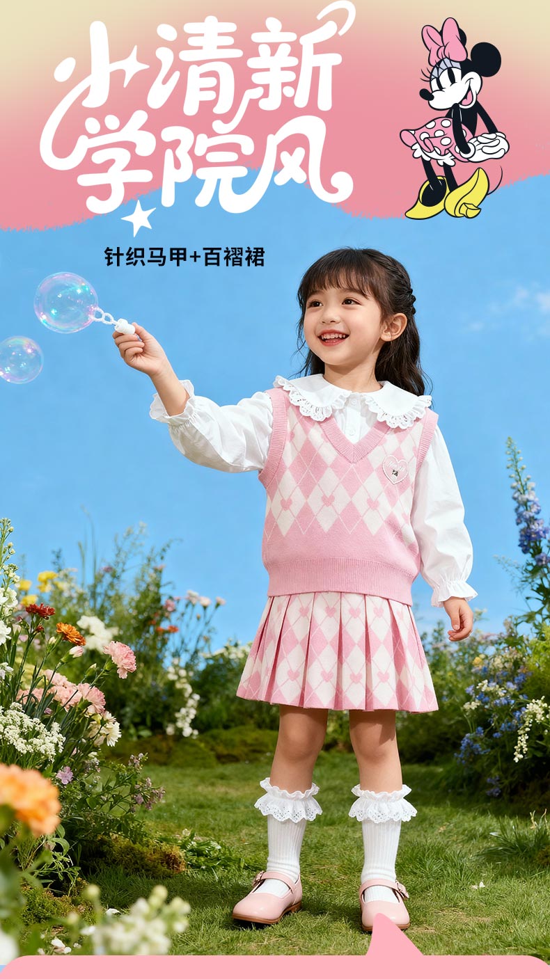 迪士尼女童秋季针织背心套装毛衣套装XD3DT002