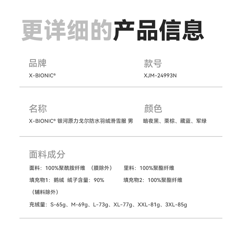 X-BIONIC 银河原力戈尔防水羽绒滑雪服 男 防风防水保暖硬壳滑雪服 XJM-24993N