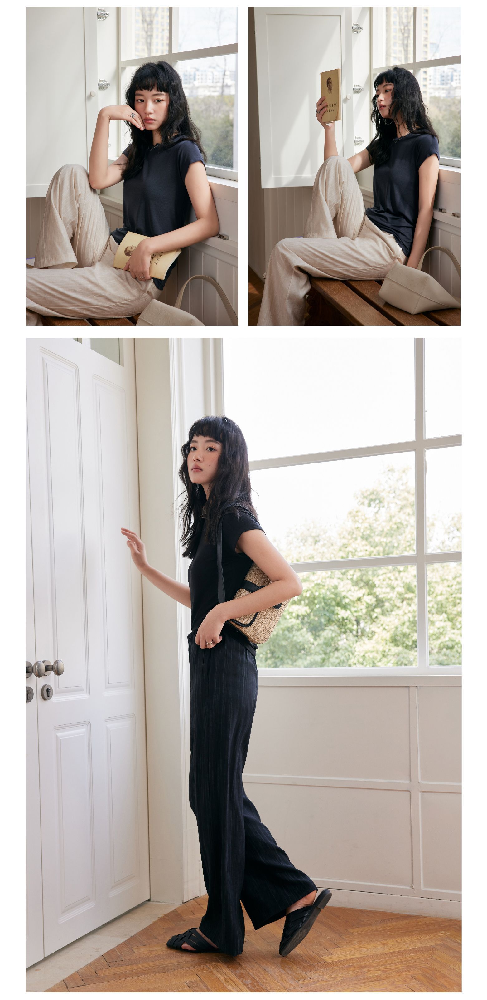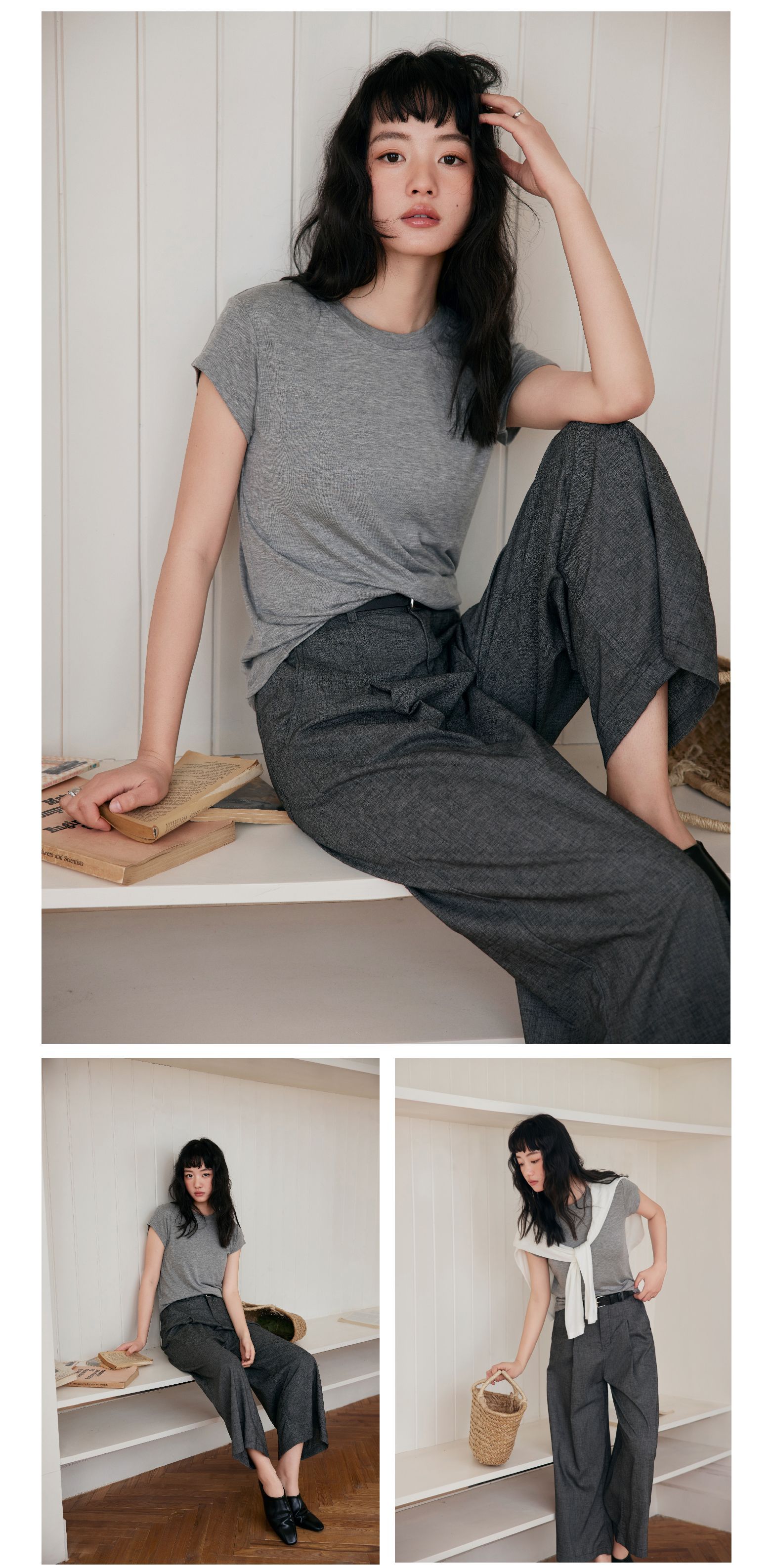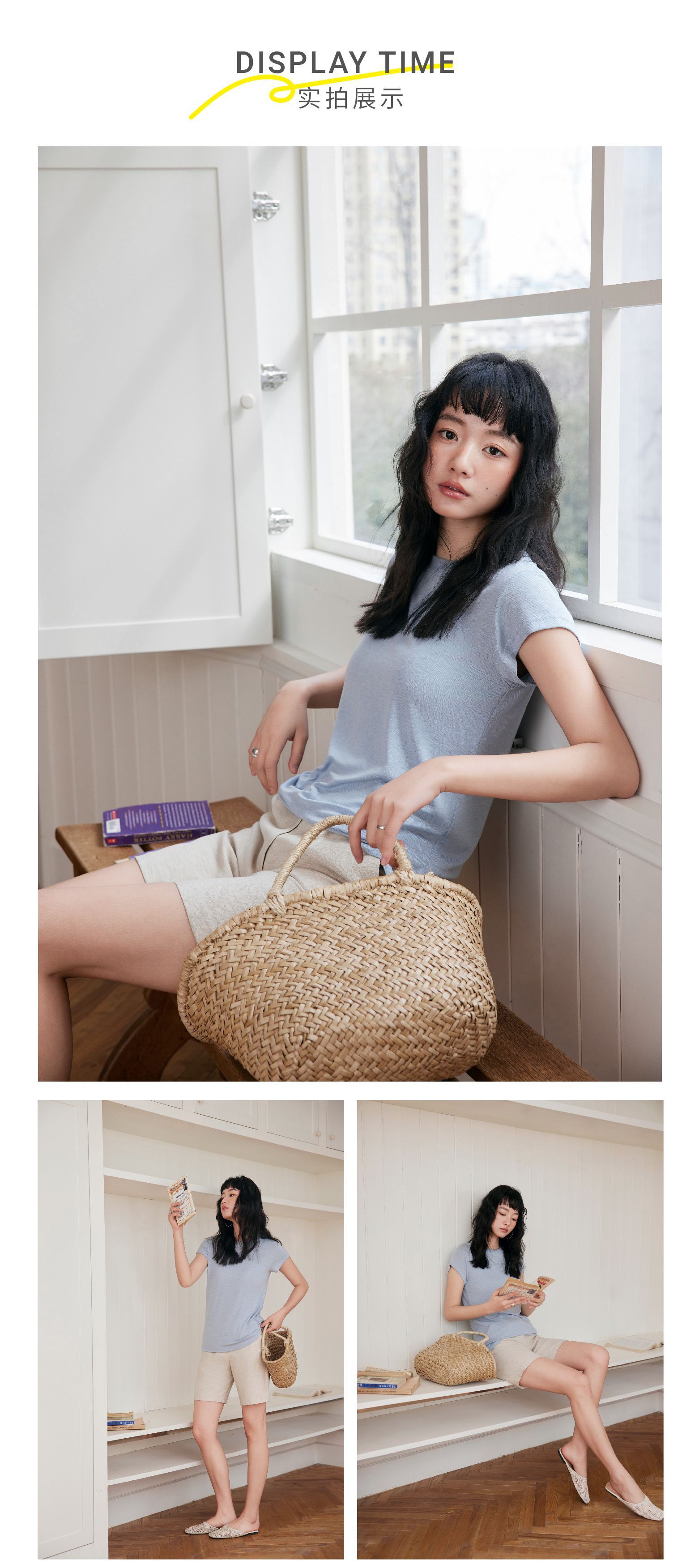 【天丝羊毛醋酸】2025新款天丝羊毛短袖t恤女圆领设计感修身连袖纯色舒适上衣