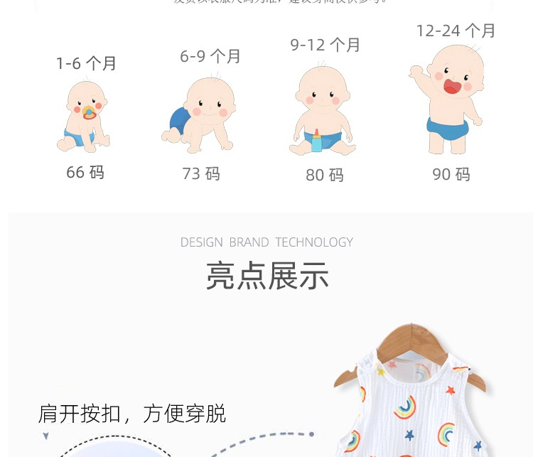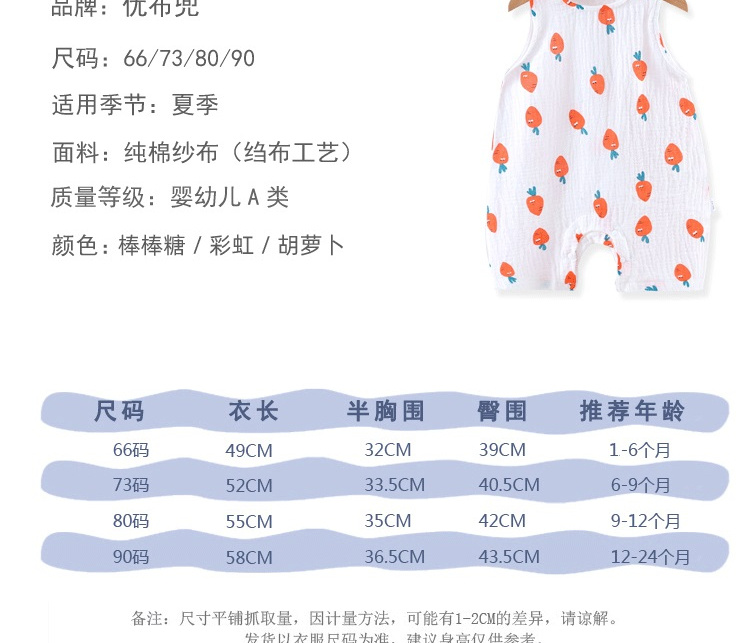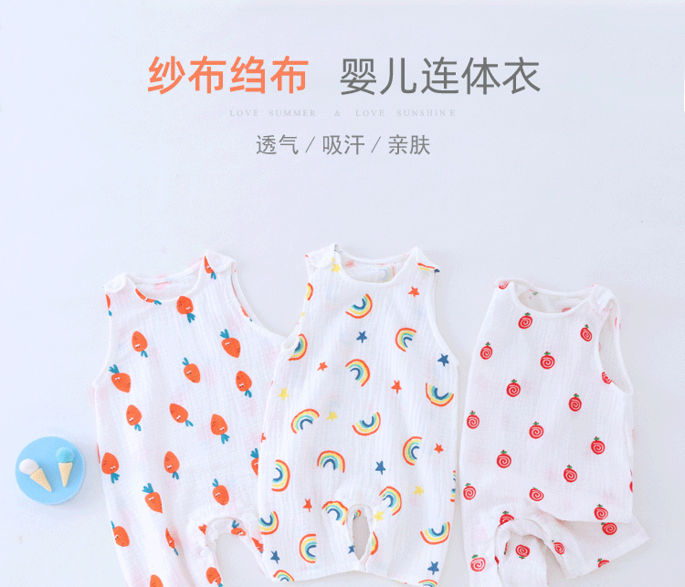 【母婴用品】优布兜 婴儿纯棉无袖连体衣