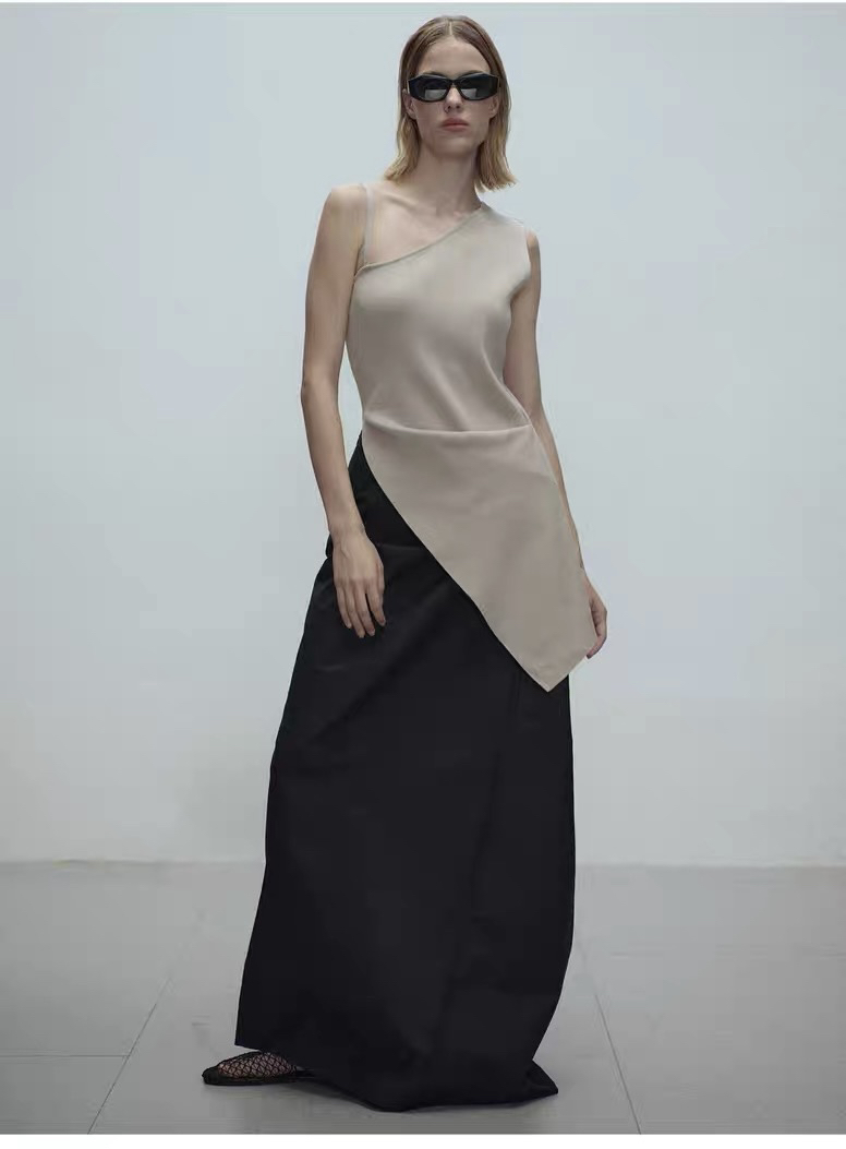 VC|SS25078 Kaz one shoulder knit top [上衣 白 / 卡其 ]
