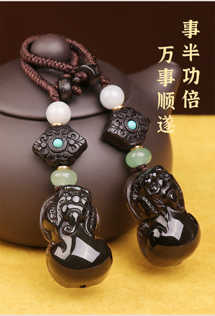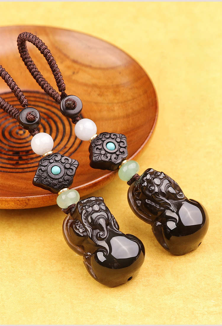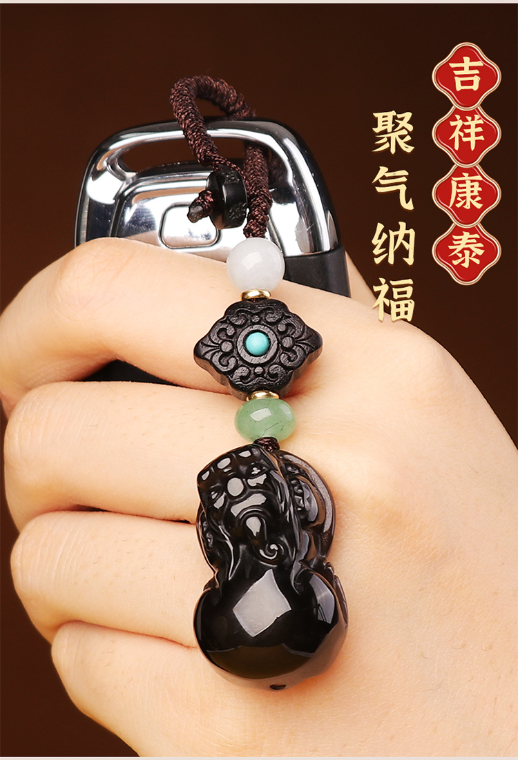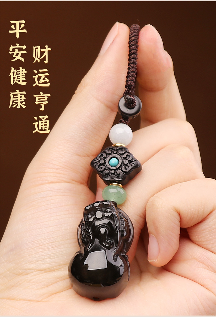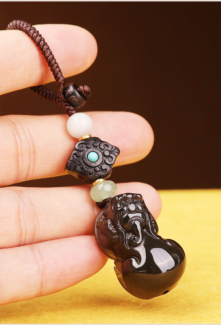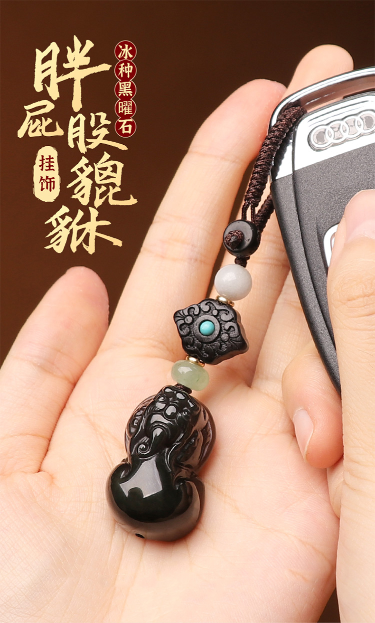 【冰种黑曜石胖屁股貔貅挂饰】
