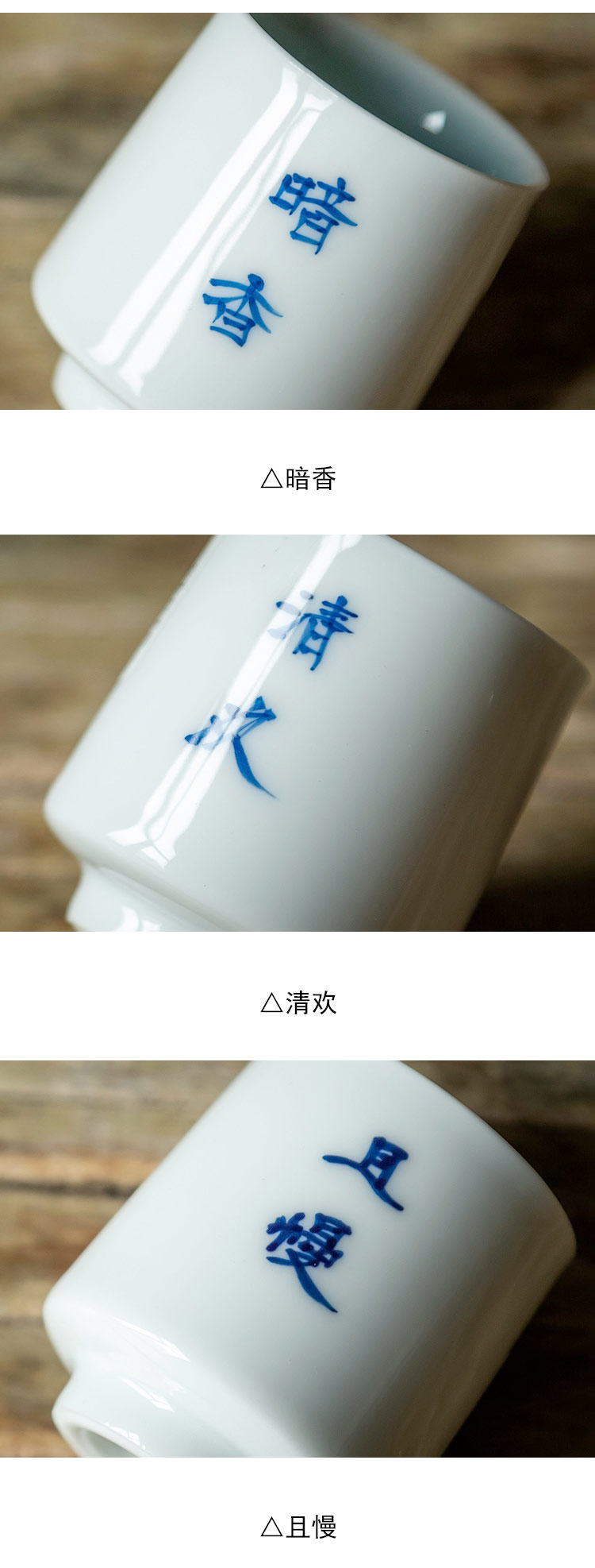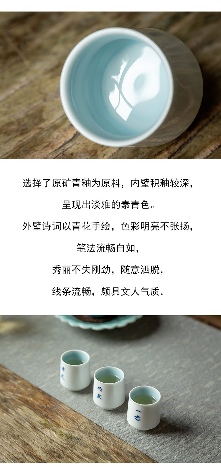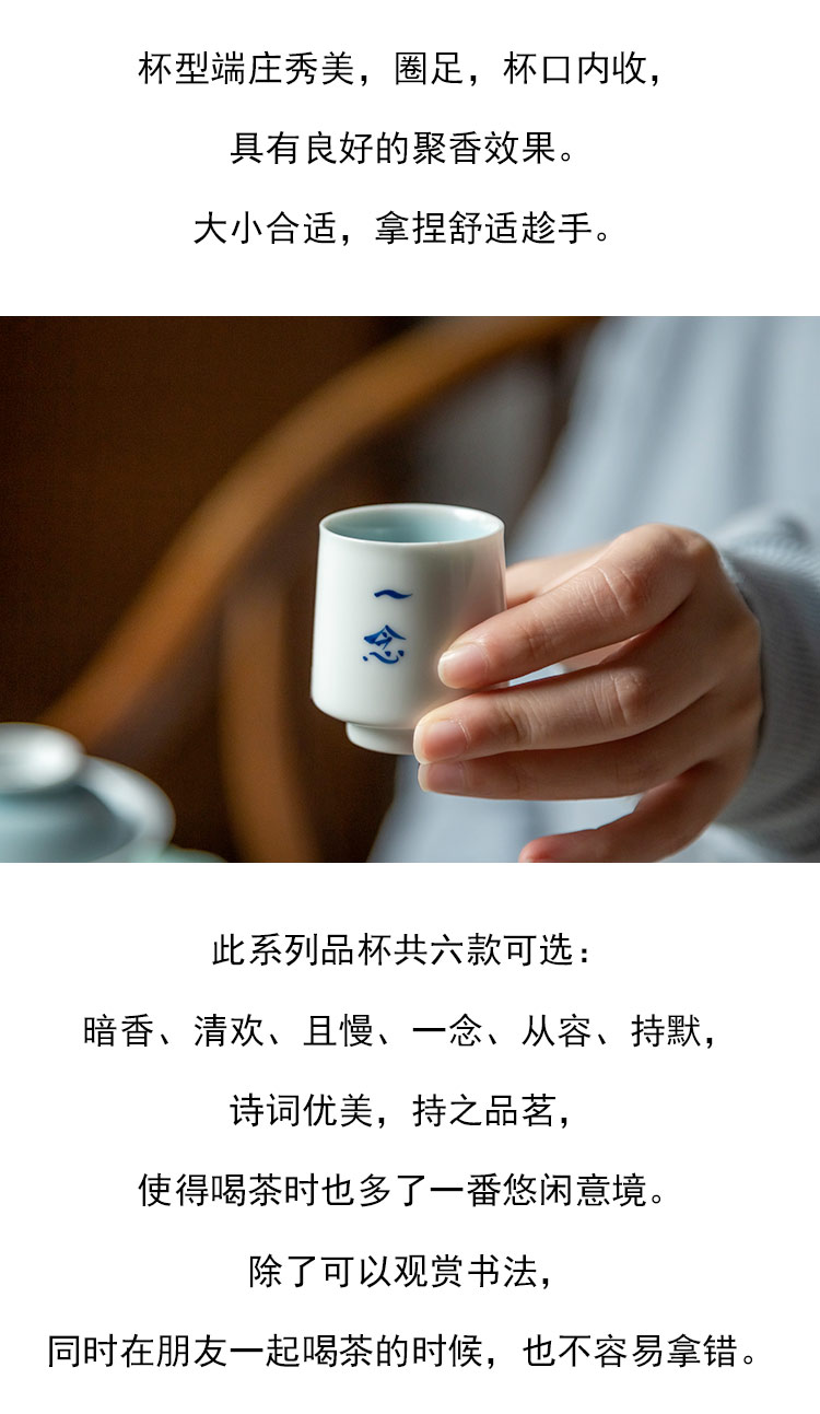 茶香记 颜色釉手绘诗词品杯20ml青白莹润素雅端庄茶杯六款可选