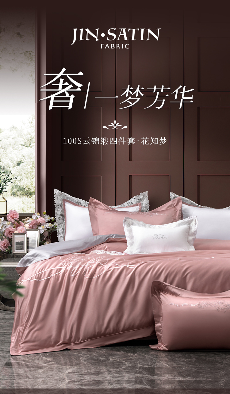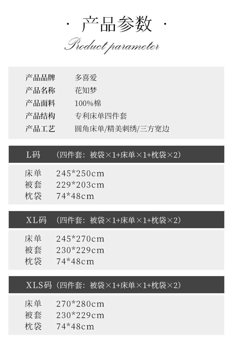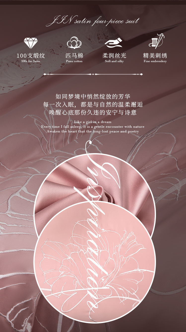 多喜爱 100S云锦缎四件套·花知梦 【100支缎纹匹马棉】【精美刺绣 】【礼盒包装】【宽边工艺】【专利床单】 柔润丝光 A类标准