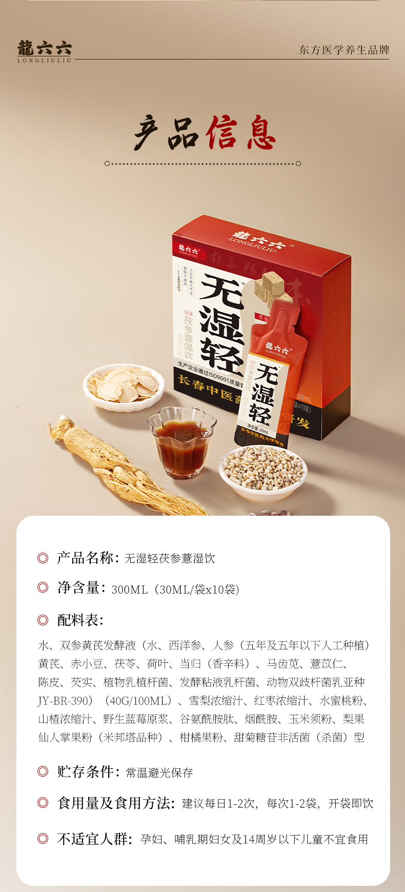 【品名】龍六六茯参薏湿饮 【规格】30ml*10袋/盒 【保质期】18个月 【储存方法】请置于阴凉干燥处,避免阳光直射 【产地】江苏盐城 【发货地】安徽,河南 【发货快递】中通,圆通,韵达 【不发货区域】新疆,西藏,港澳台地区不发 【发货时效】48小时,节假日顺延 |