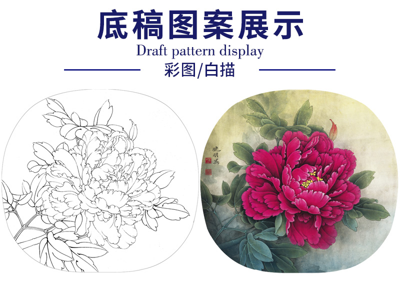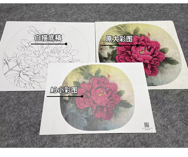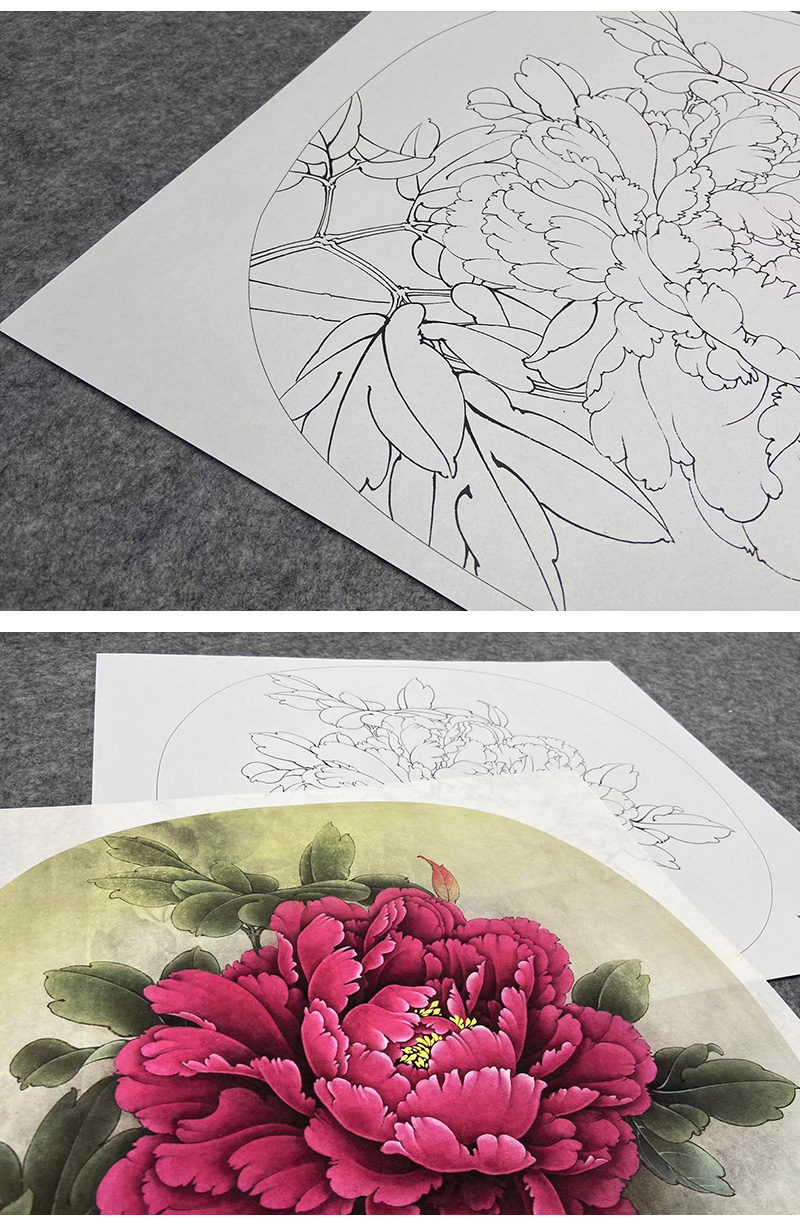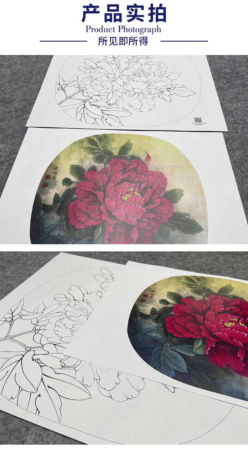 【大彩图】李晓明工笔画白描底稿小品《洛阳红》牡丹临摹勾线花鸟线稿K019