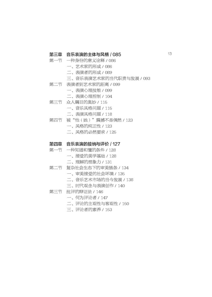 该书提出了音乐表演研究的本质论、发展论、表现论、主体论、接受论、人才论的系统理论框架,结合历史与现实的音乐表演美学问题进行了深入论述,并有详细的例证。特别在发展论、表现论、主体论和接受论中不仅对传统表演实践和现象有所评价,对最新的表演形式和趋向也有美学审视,进一步推进了该领域的理论建设和学科发展,对音乐表演理论的教学和表演实践的发展具有重要参考意义。