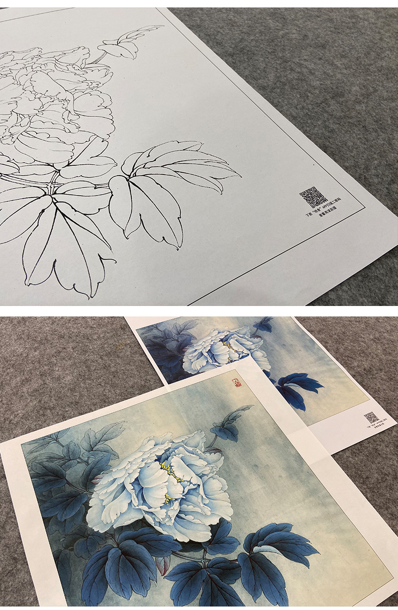 【大彩图】李晓明工笔画白描底稿小品《昆山夜光》牡丹临摹勾线花鸟线稿K038