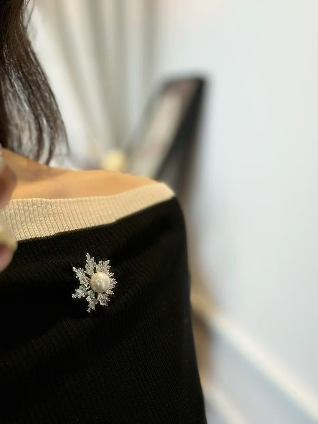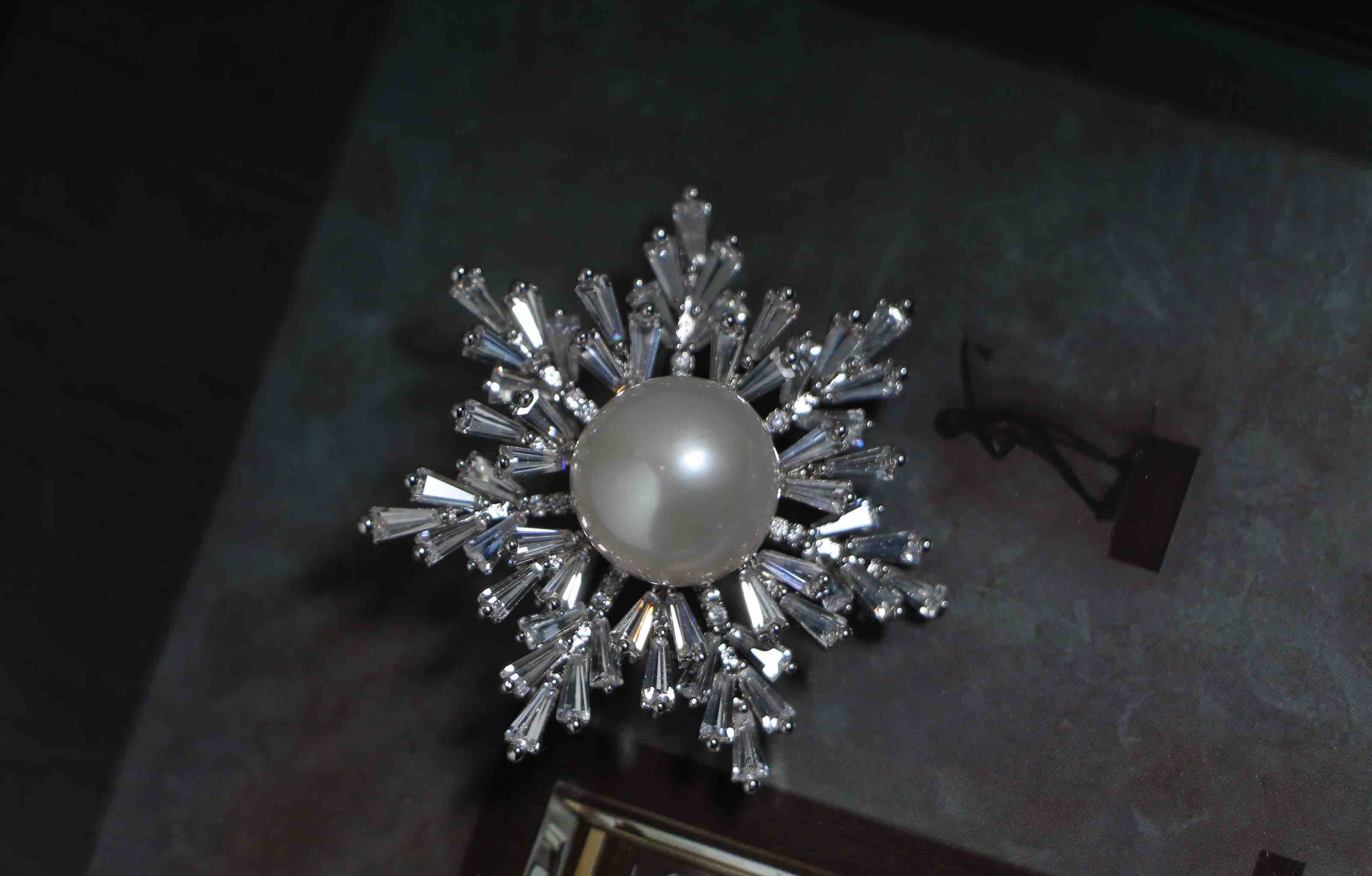 甄珠贝 冬日必备 雪花胸针 12mm大珠珠 精工配件 很闪 正圆基本无暇te极光