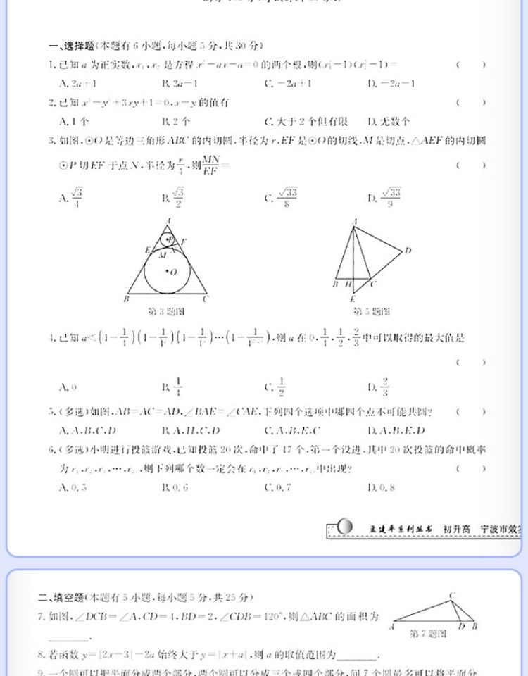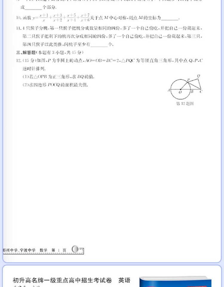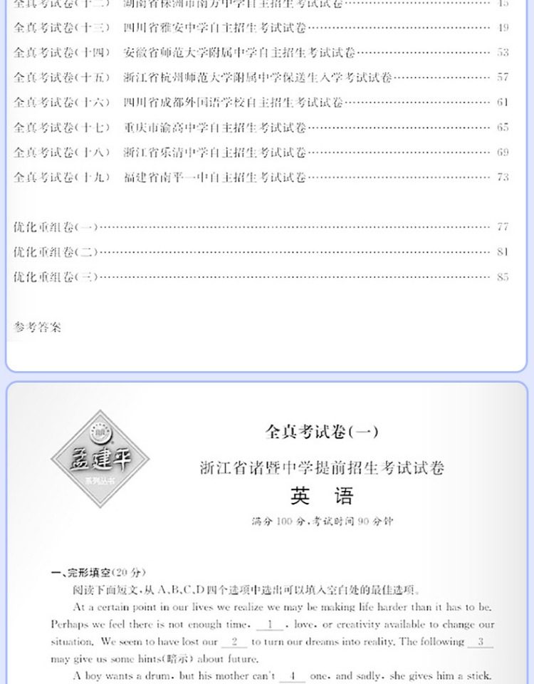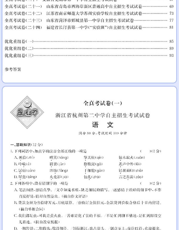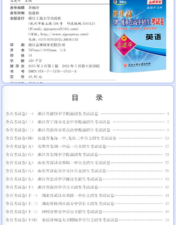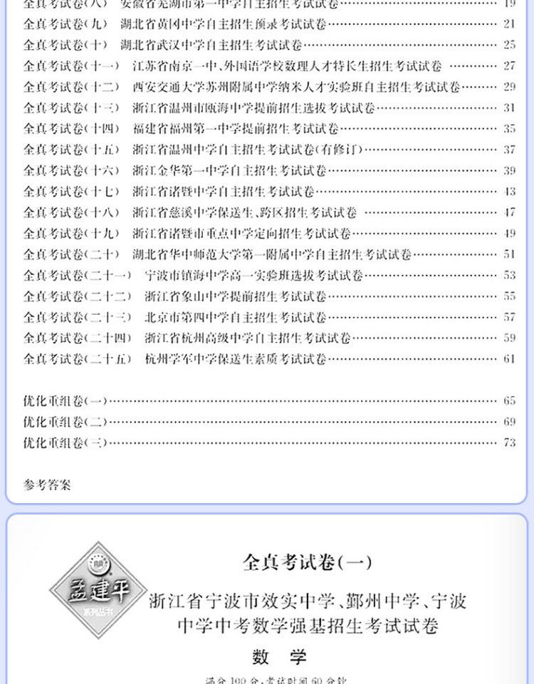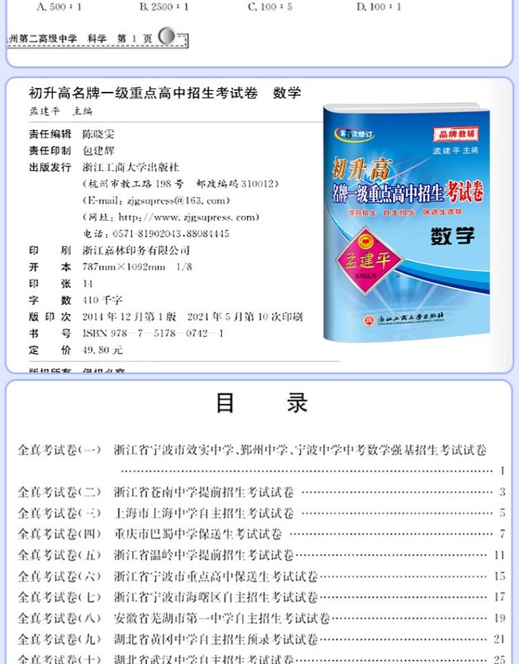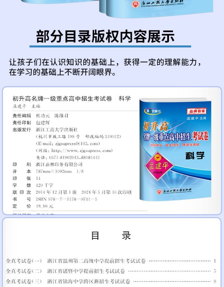 孟建平初升高一级重点高中招生考试卷英语数学科学语文衔接教材训练卷升高一专题训练提前招生自主招保送生选拔杭州高一分班考试卷