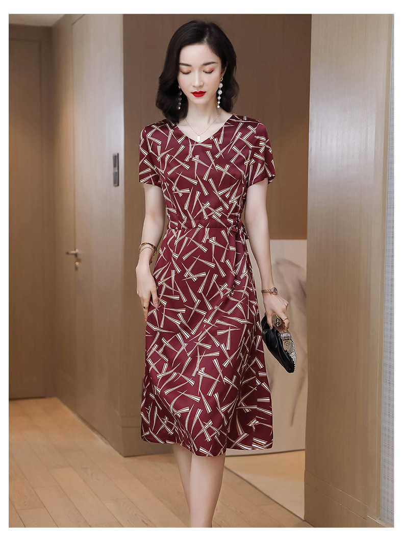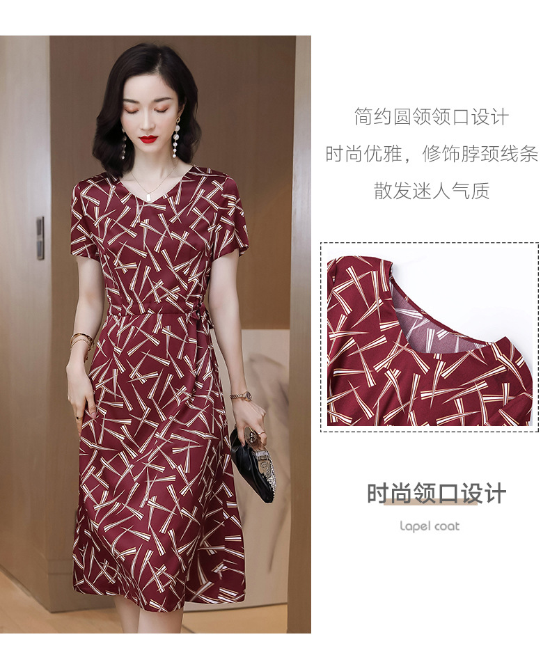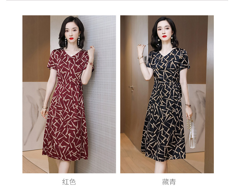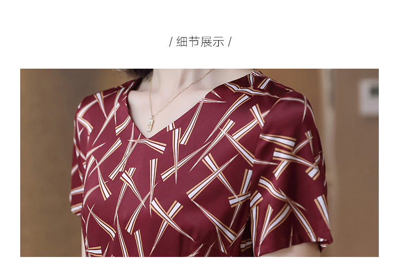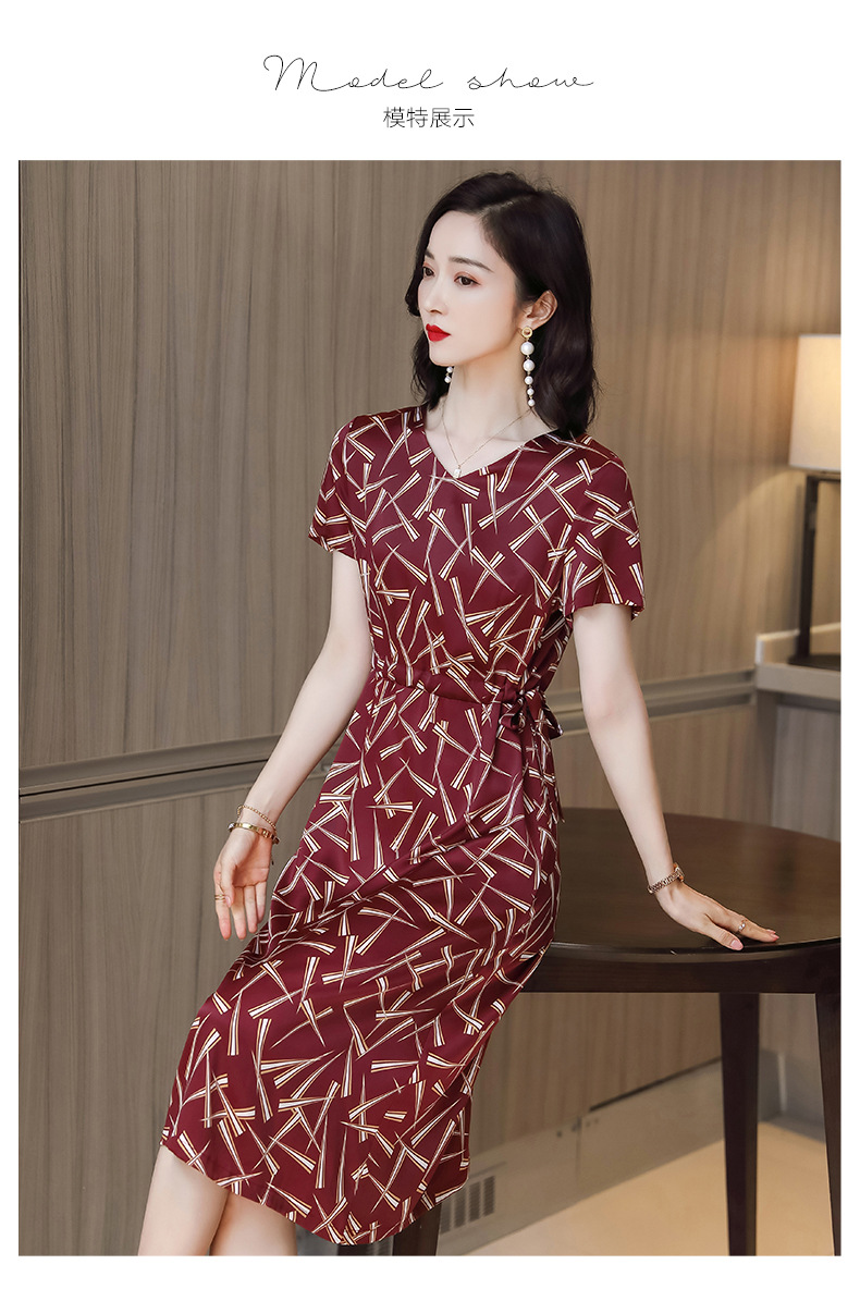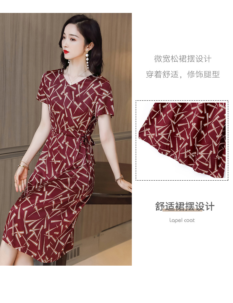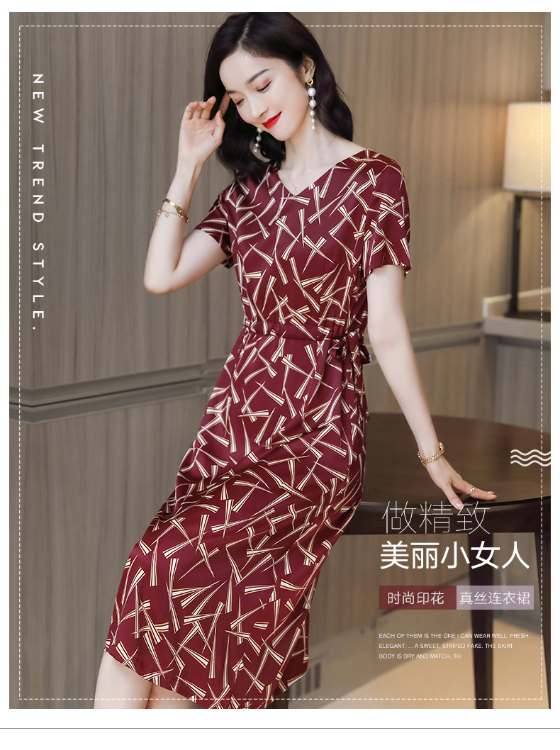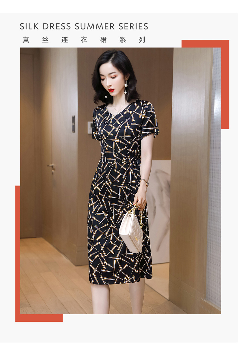 上海旗袍厂ASE-9117夏新真丝连衣裙女v领高腰显瘦桑蚕丝裙立体印花