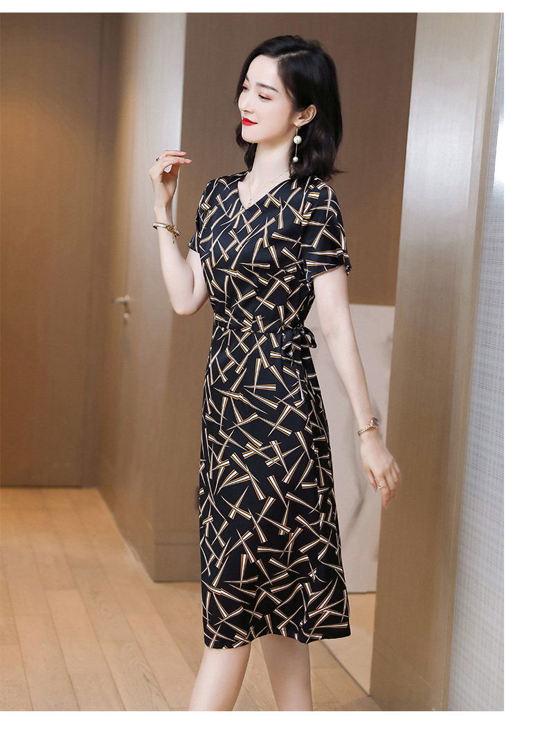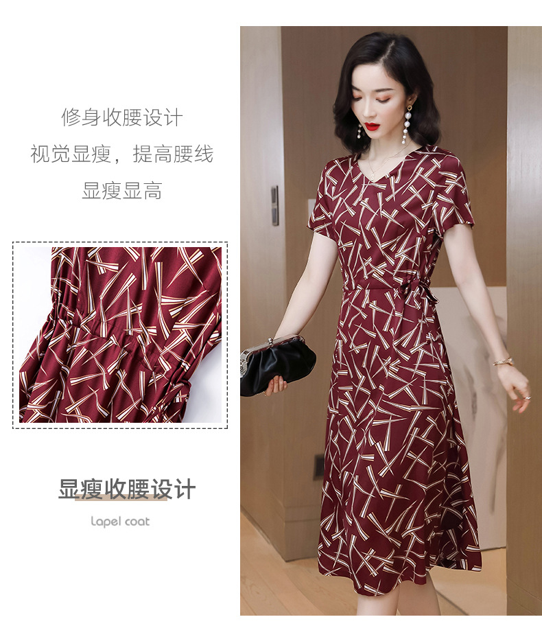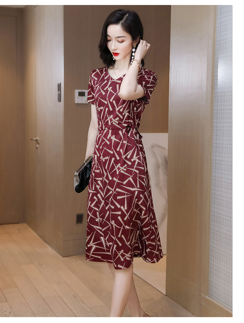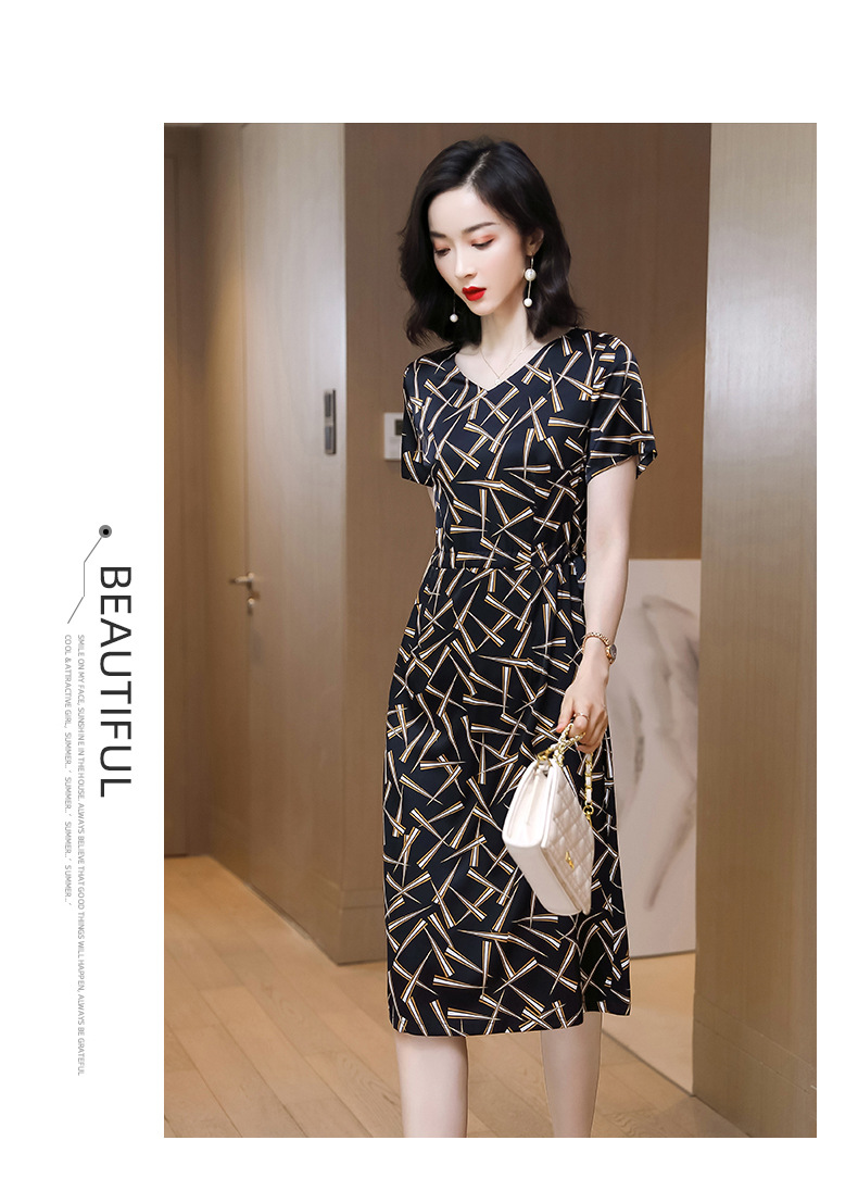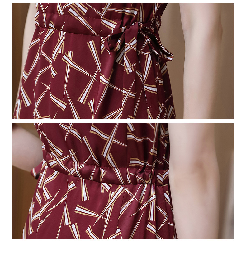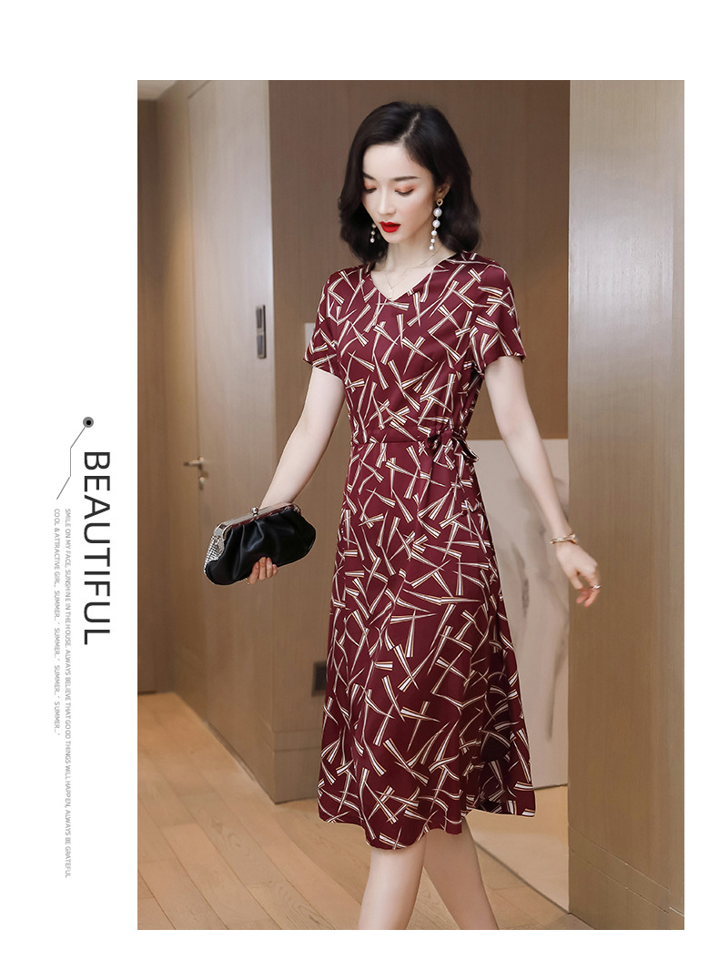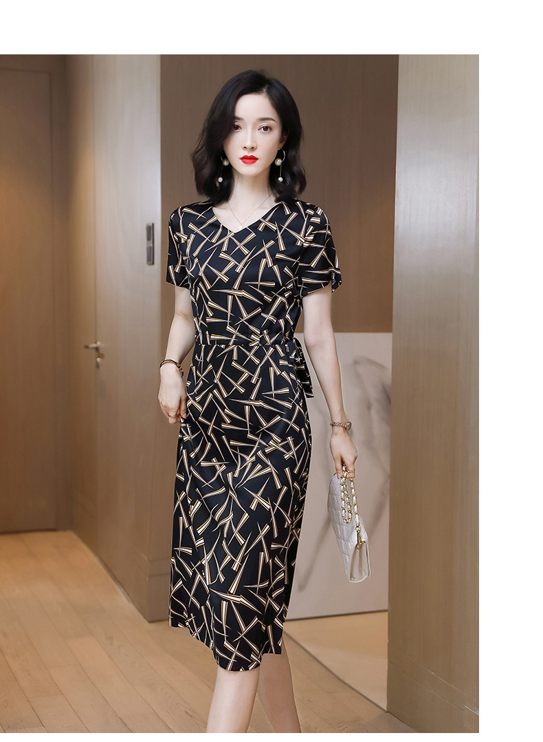 上海旗袍厂ASE-9117夏新真丝连衣裙女v领高腰显瘦桑蚕丝裙立体印花