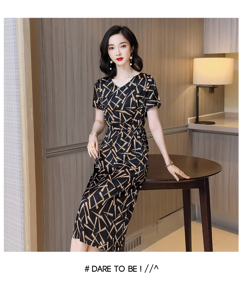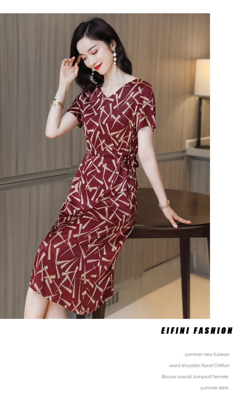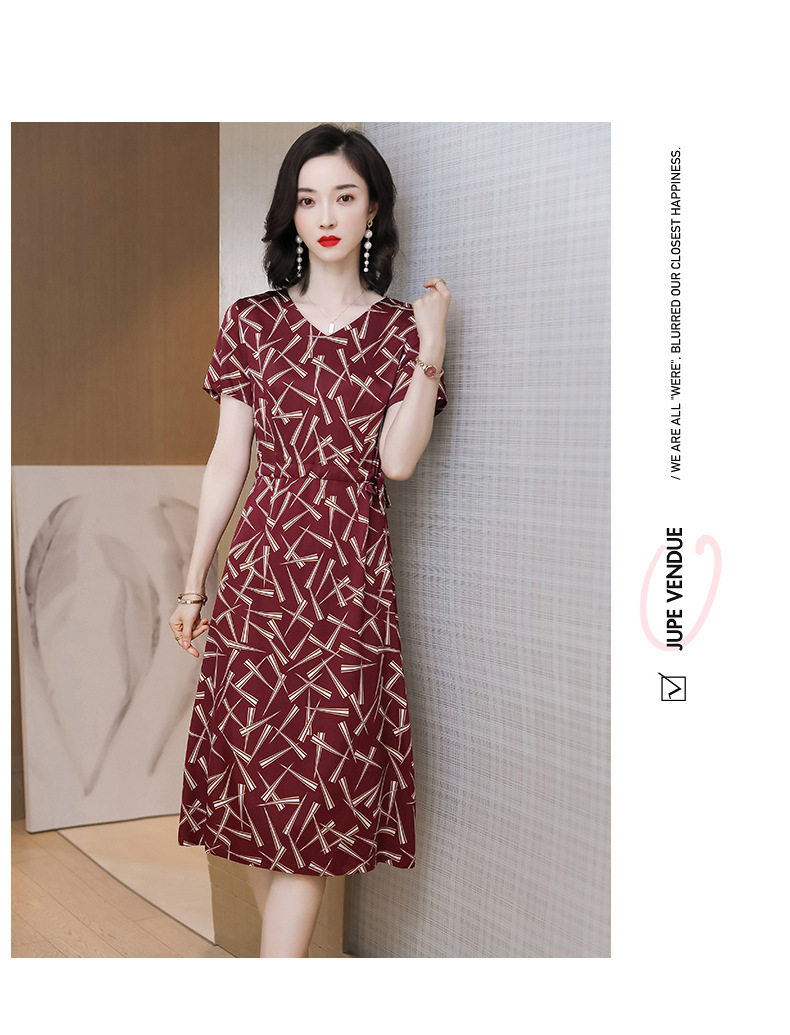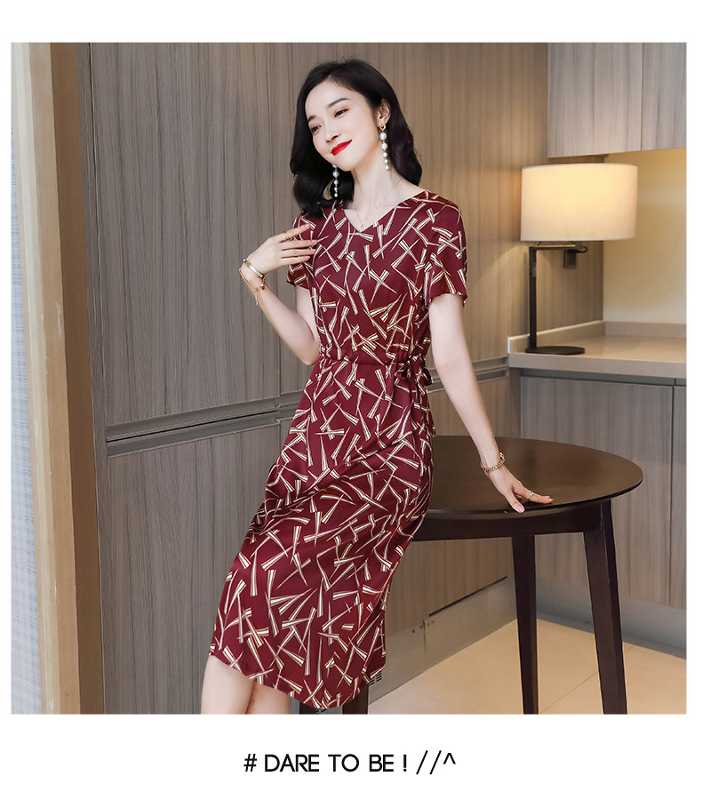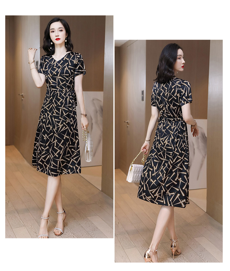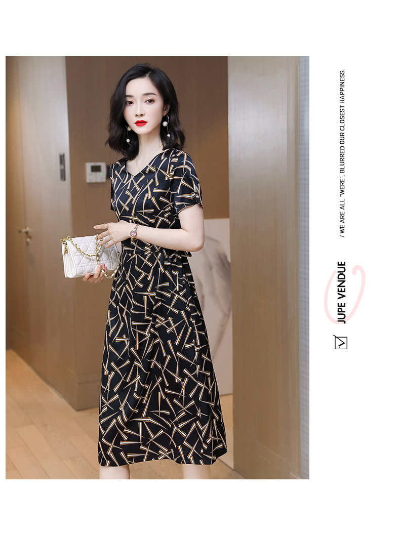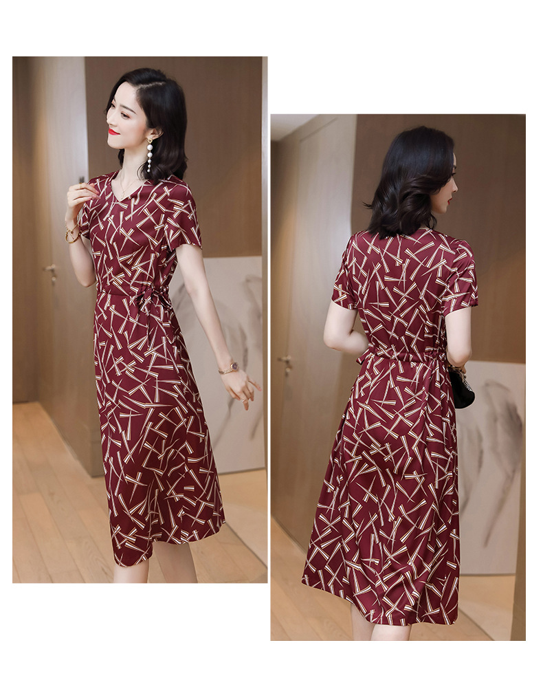 上海旗袍厂ASE-9117夏新真丝连衣裙女v领高腰显瘦桑蚕丝裙立体印花