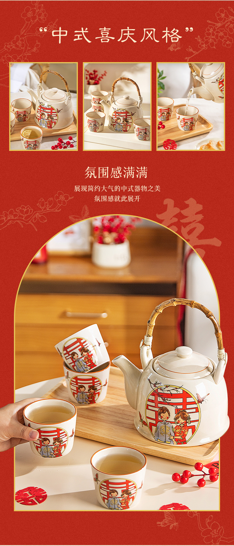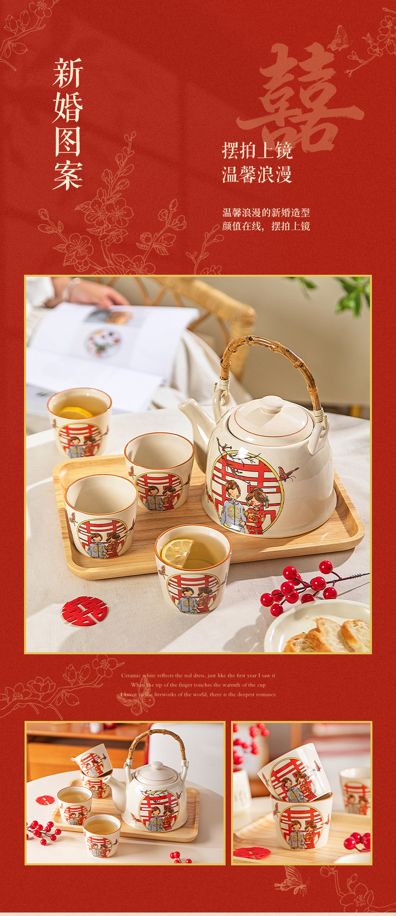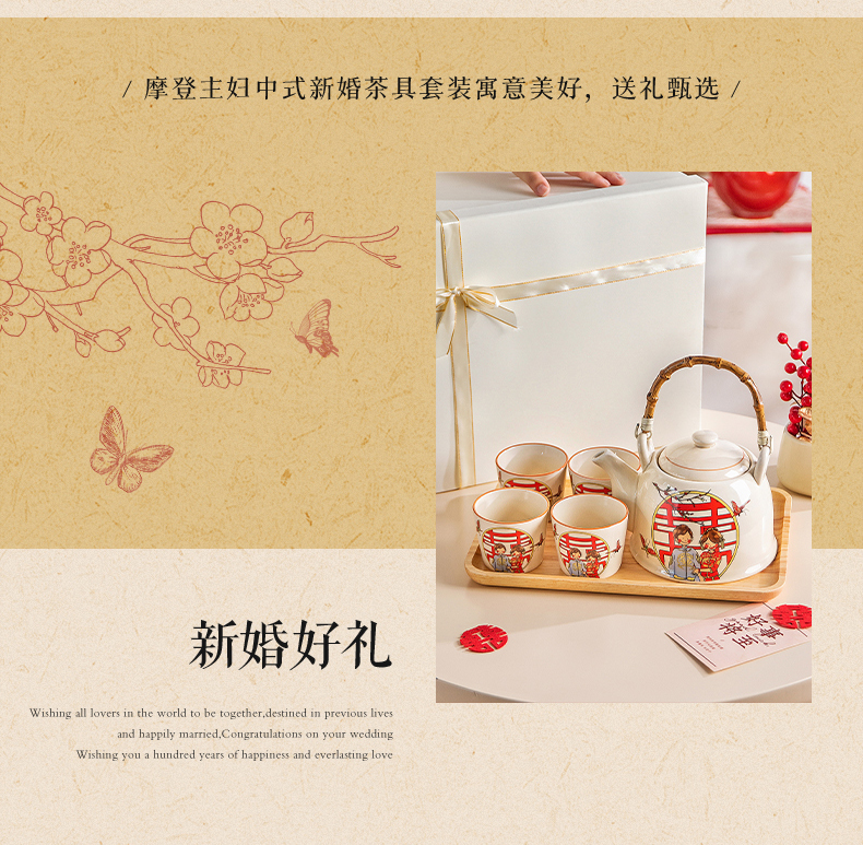摩登主妇泡茶壶茶杯家用水杯乔迁结婚新婚礼物送新娘杯子茶具套装