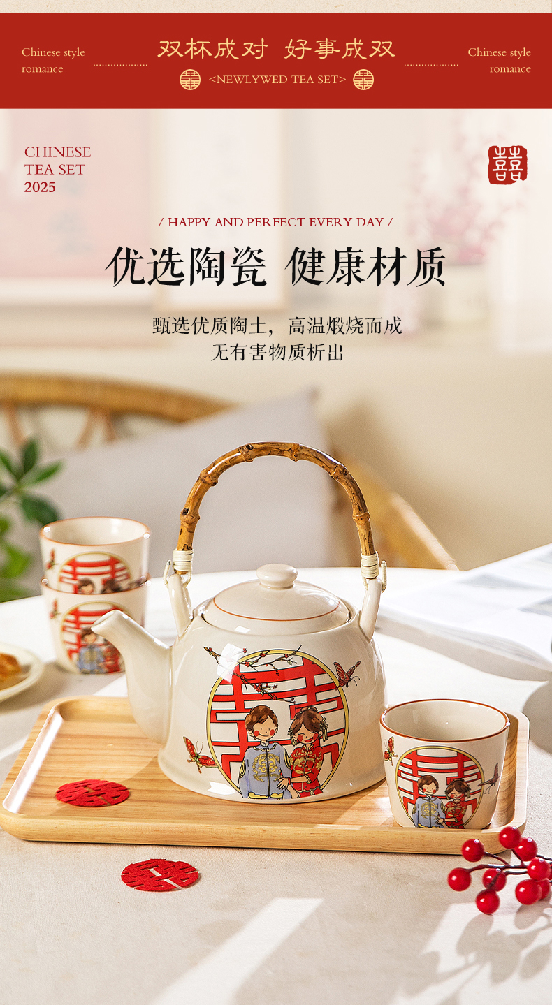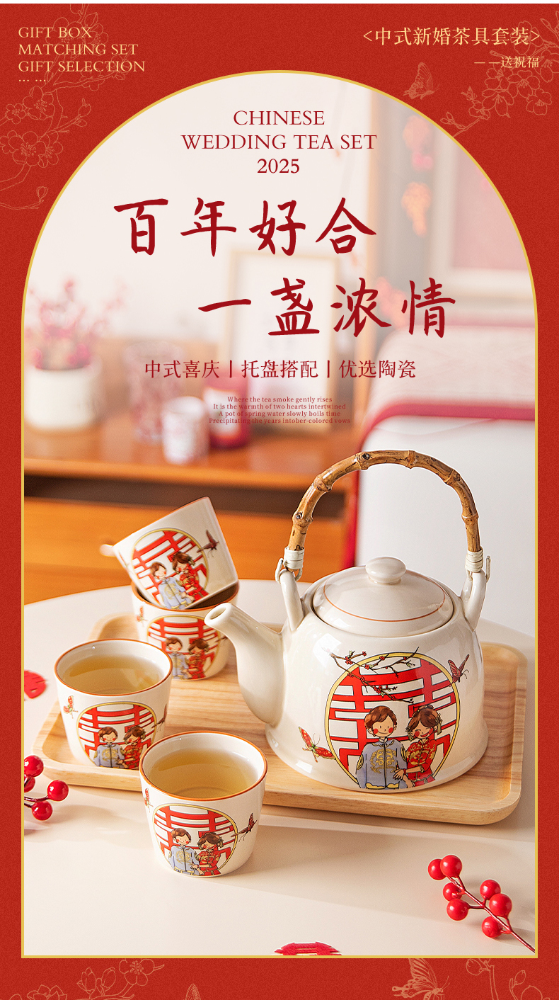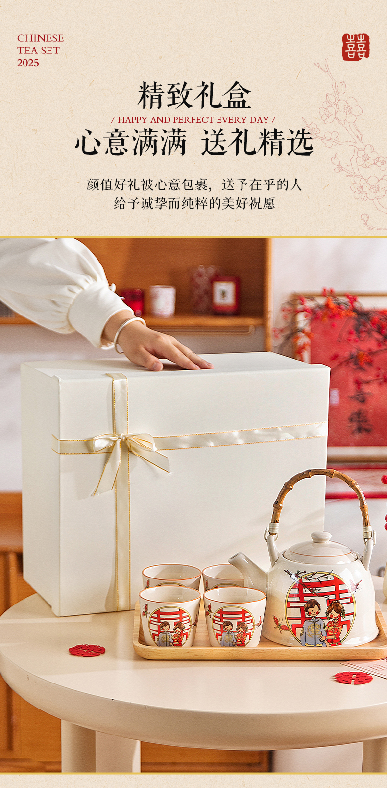 摩登主妇泡茶壶茶杯家用水杯乔迁结婚新婚礼物送新娘杯子茶具套装