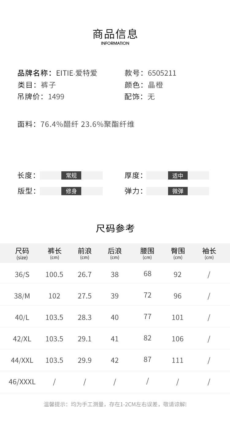 EITIE爱特爱品牌女装春夏款休闲宽松坠感阔腿裤女6505211
