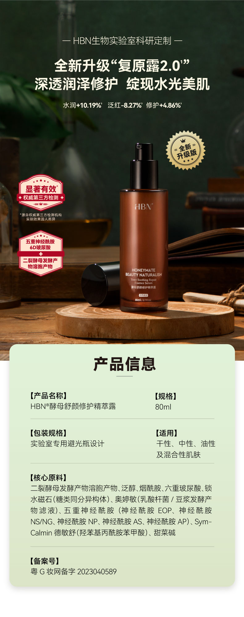 2025【前导精华】HBN·酵母舒颜修护精萃露80ml