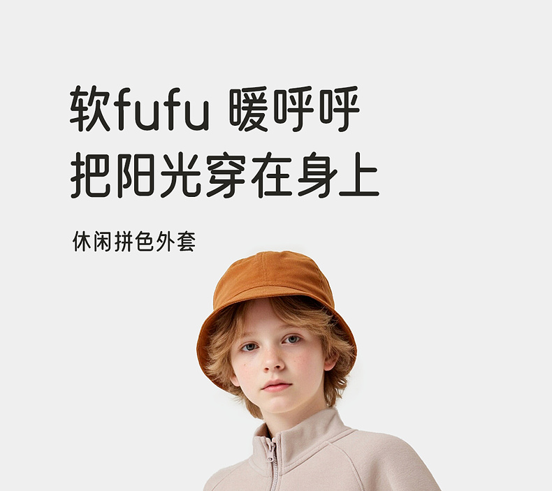 英氏儿童秋冬保暖外套拼色女童时尚外出男童冬装简约百搭运动风