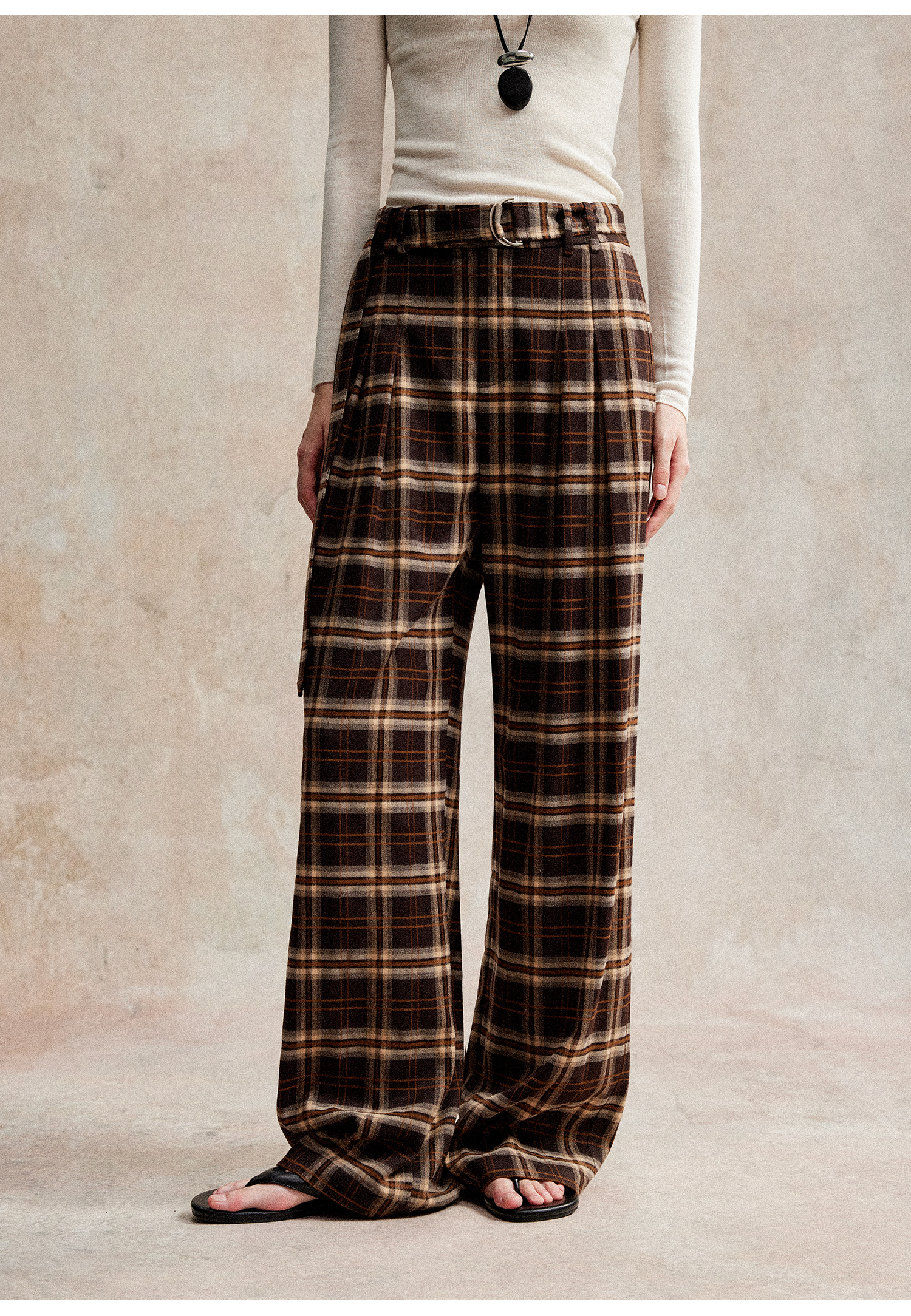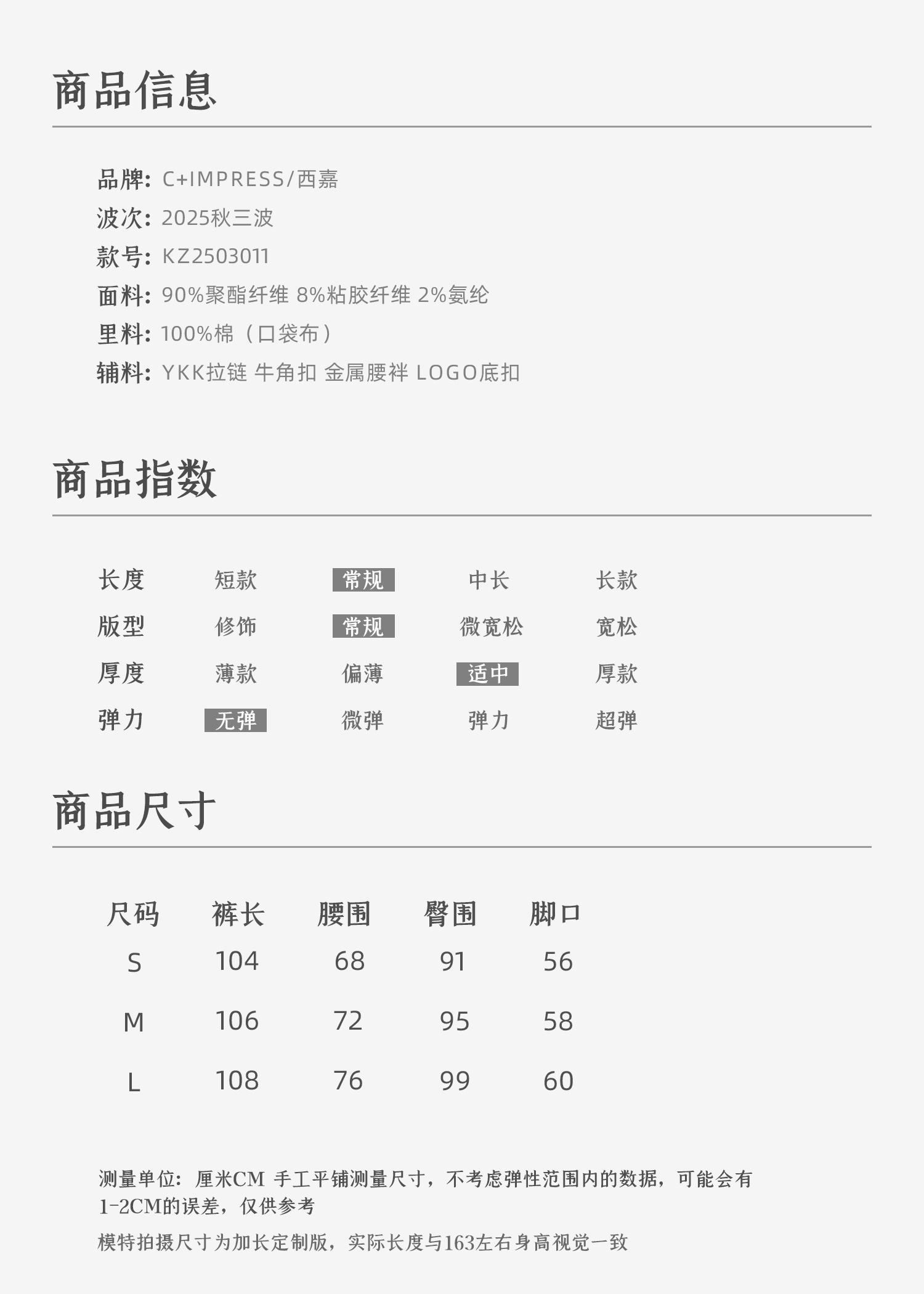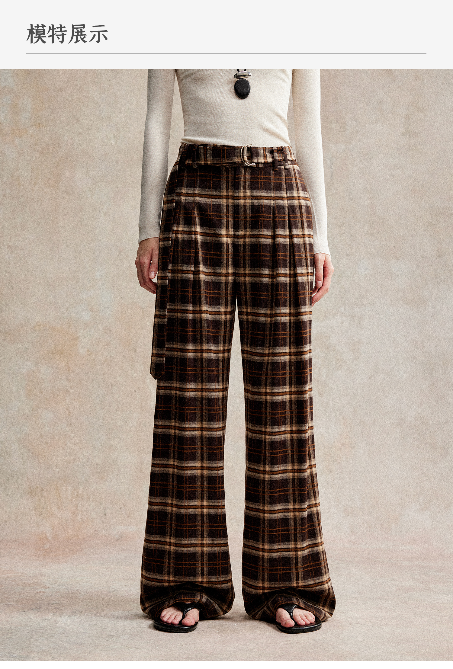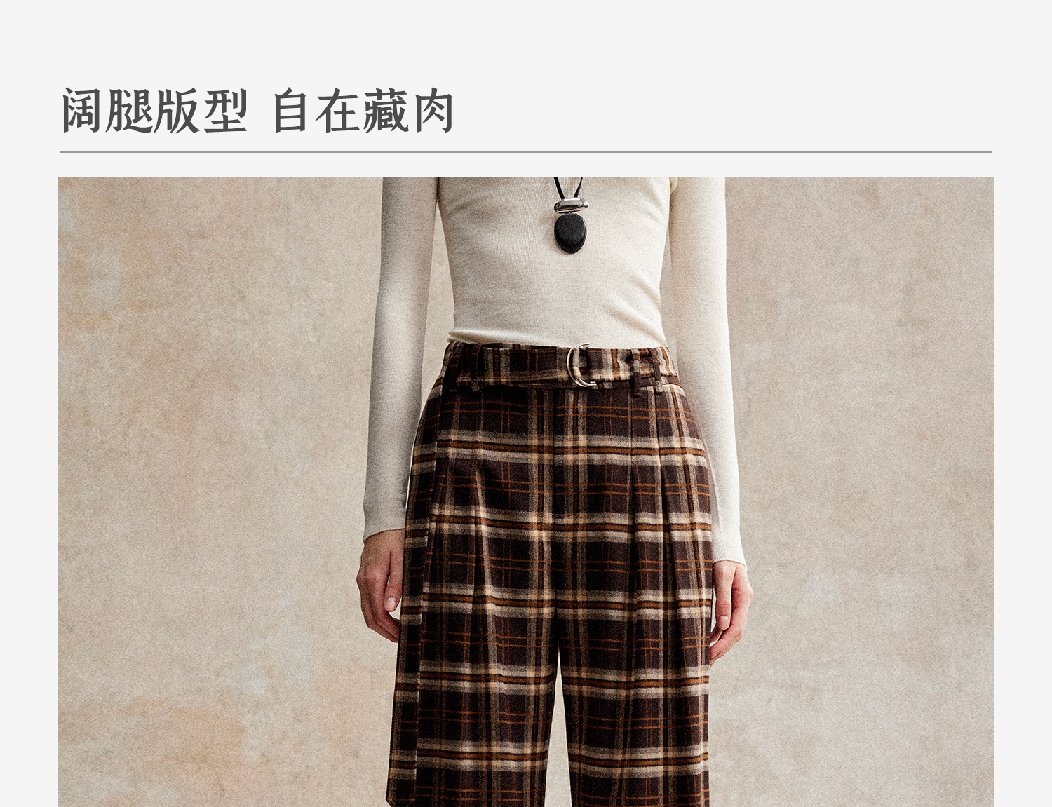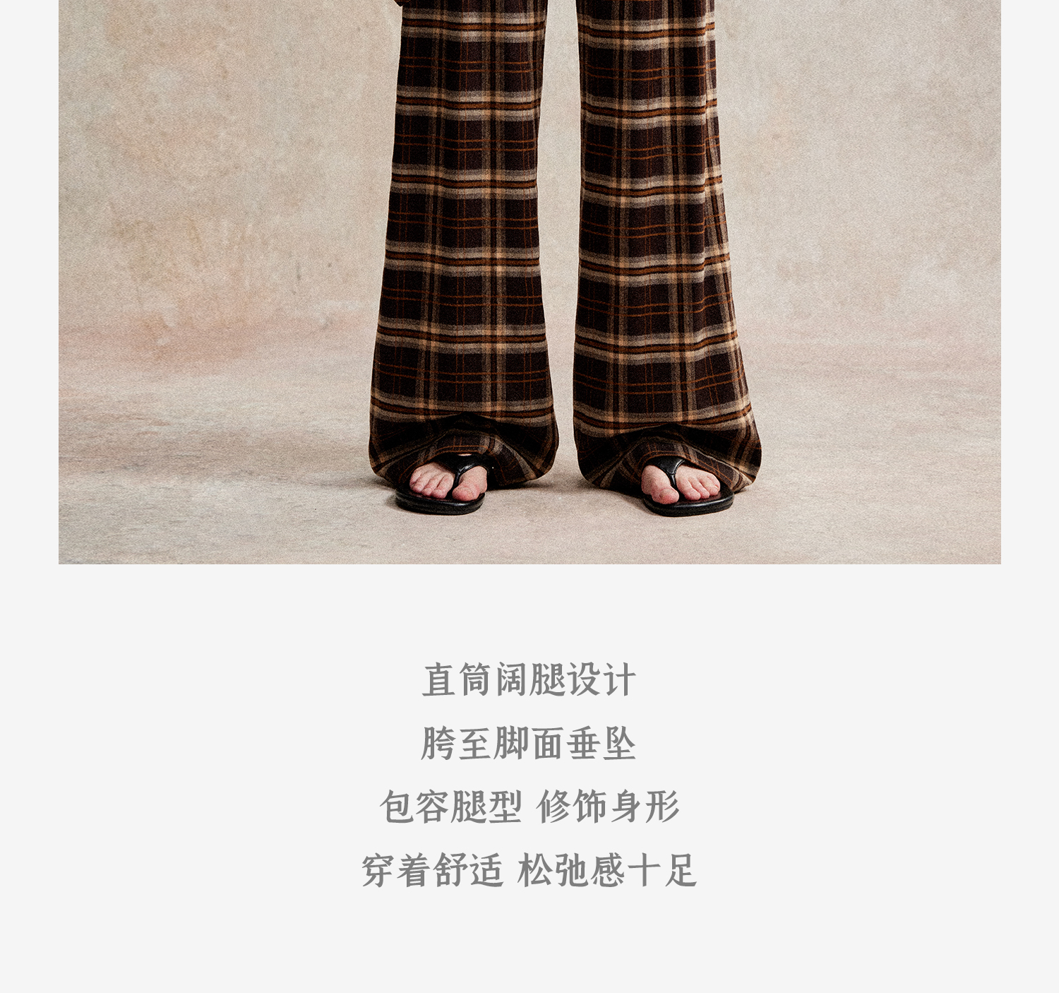 C+IMPRESS/西嘉 时髦格纹磨毛长裤复古老钱英伦学院风直筒休闲裤